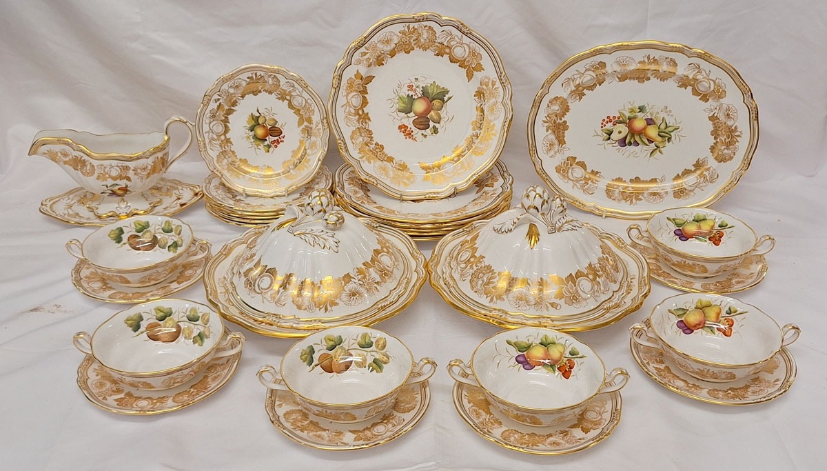 Spode Golden Valley Dinnerwares incl. 2 lidded vegetable dishes, oval serving plate, gravy/sauce boat & stand, 6 double handled soup bowls & saucers, 6 x 27.5cm dinner plates, 6 x 19.5cm plates