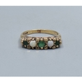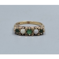 Vintage ladies Emerald and Opal 5 stone ring in 9ct gold set in a classic scroll design size M, 3.4grams