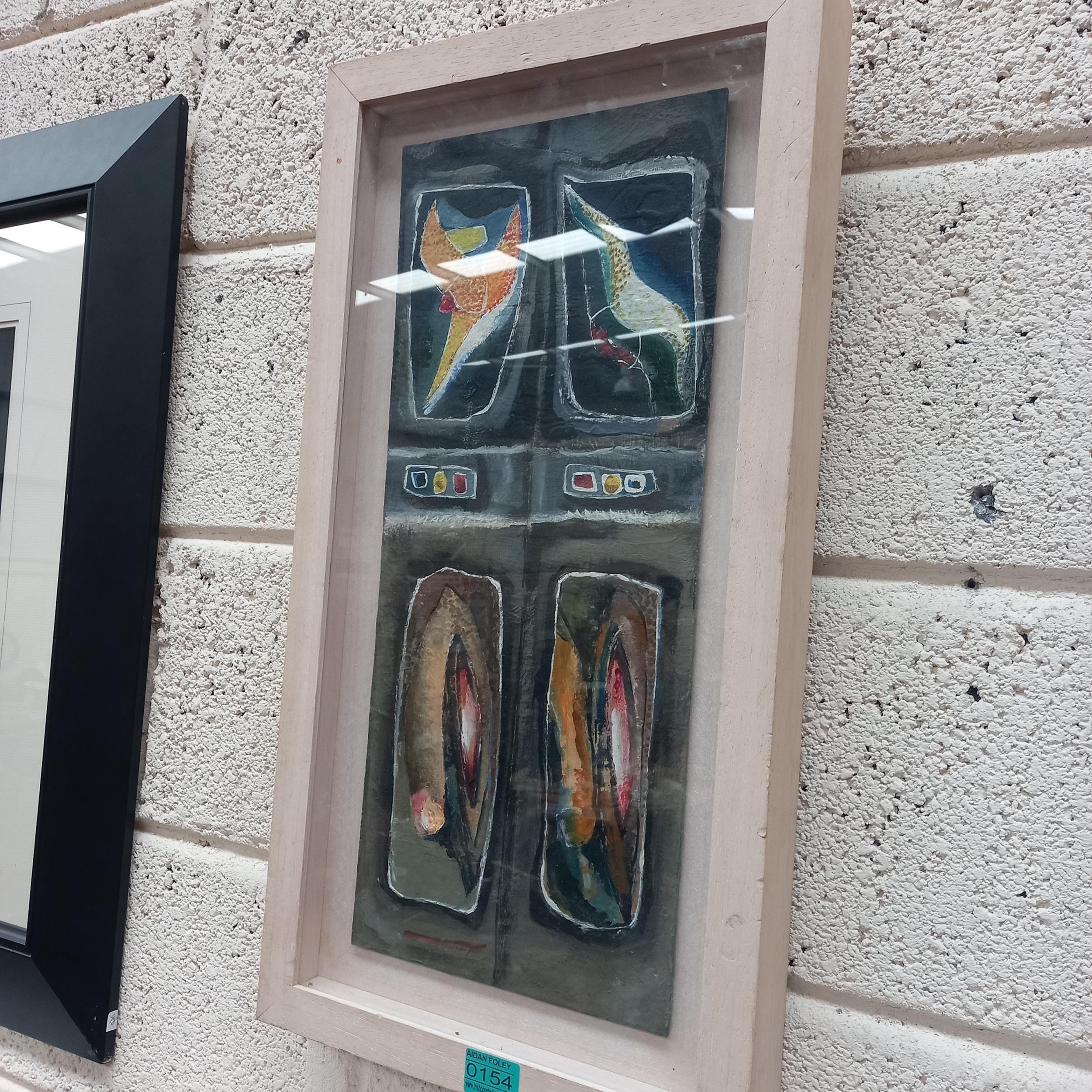 20th Century School "Abstract Forms" Indistinctly Signed, Oil on Board - Frame 61 x 32cm
