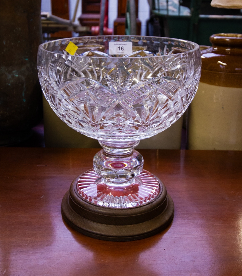 CUT GLASS TROPHY BOWL ON BASE 25H CM