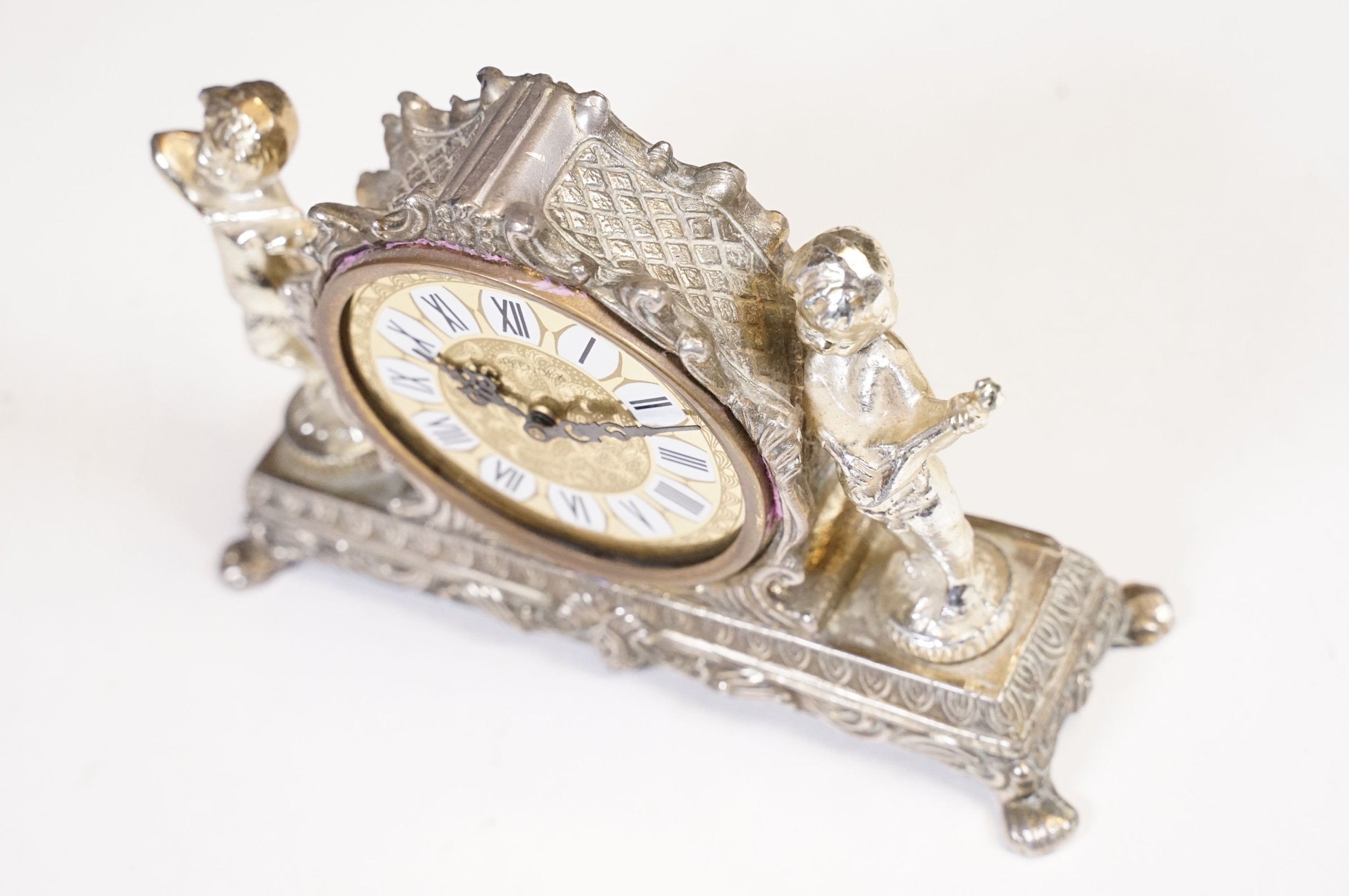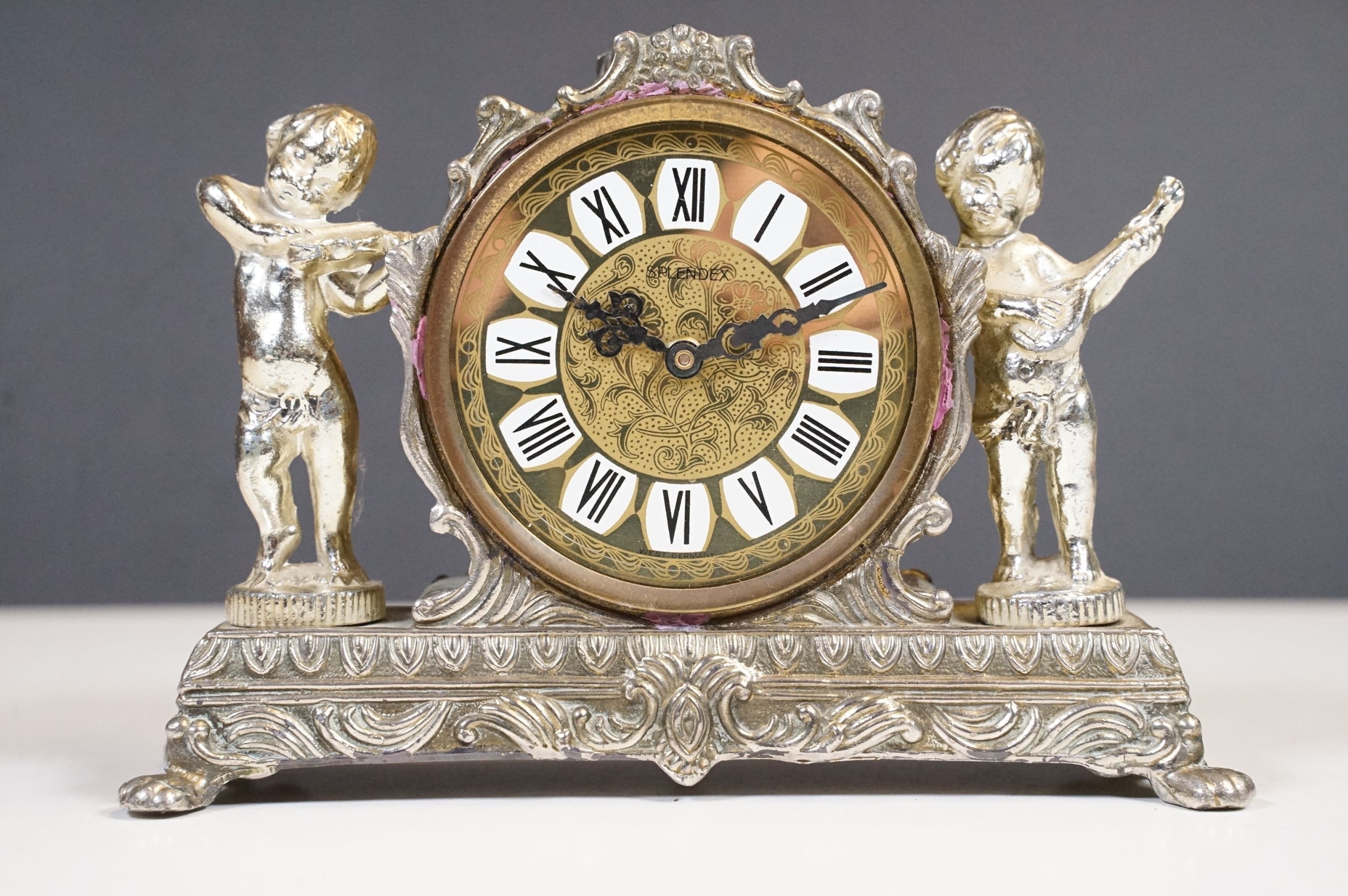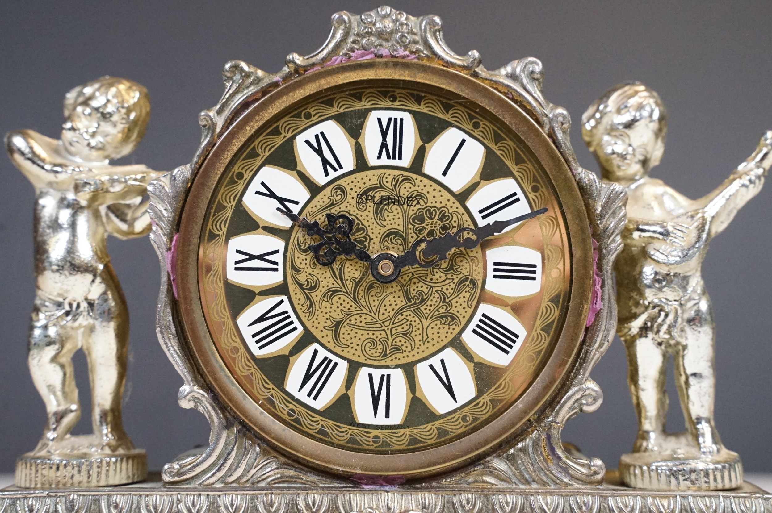 West German Splendex mantle clock adorned with musical cherub decoration