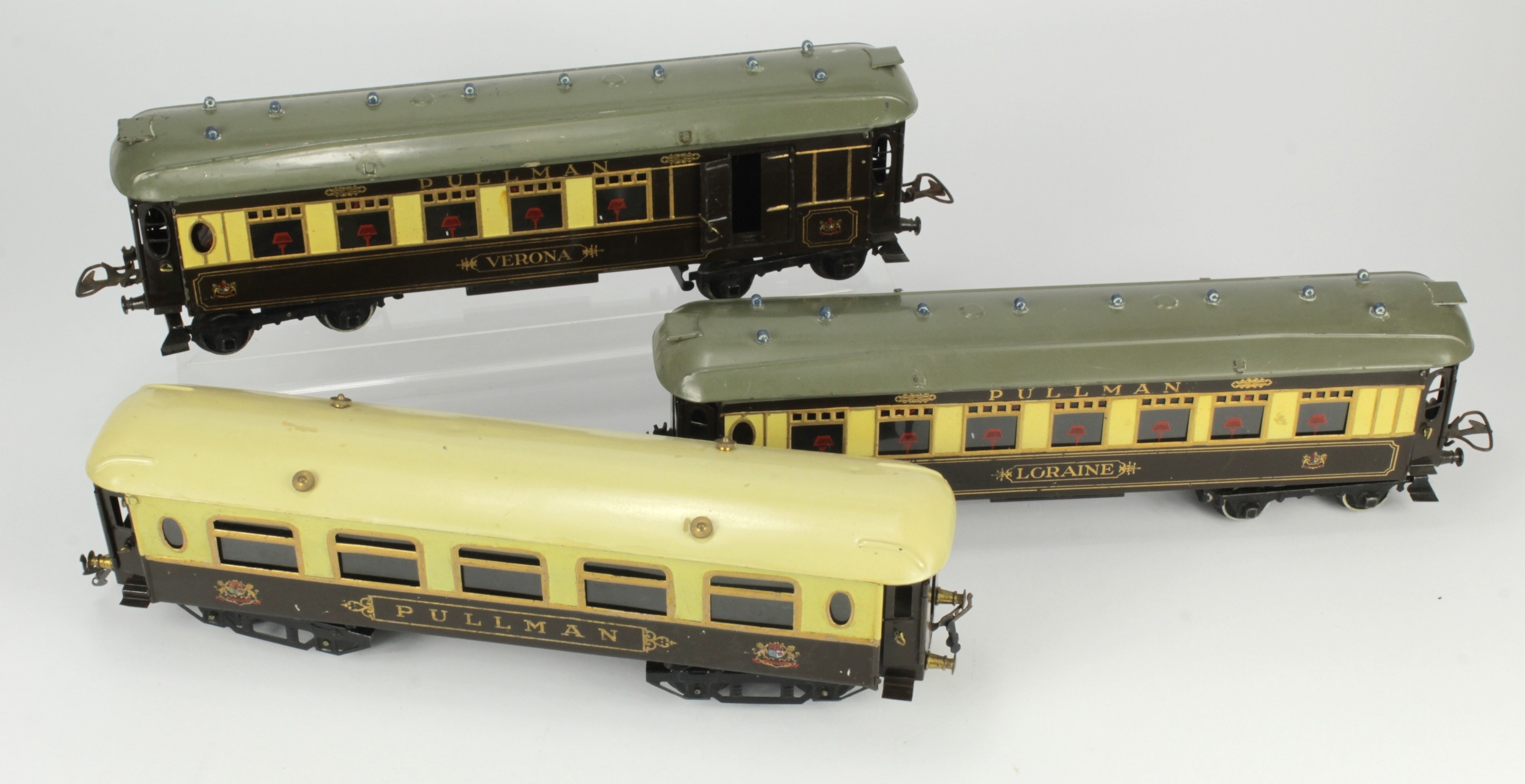 Hornby. Three Hornby O gauge Pullman coaches, including Verona & Loraine