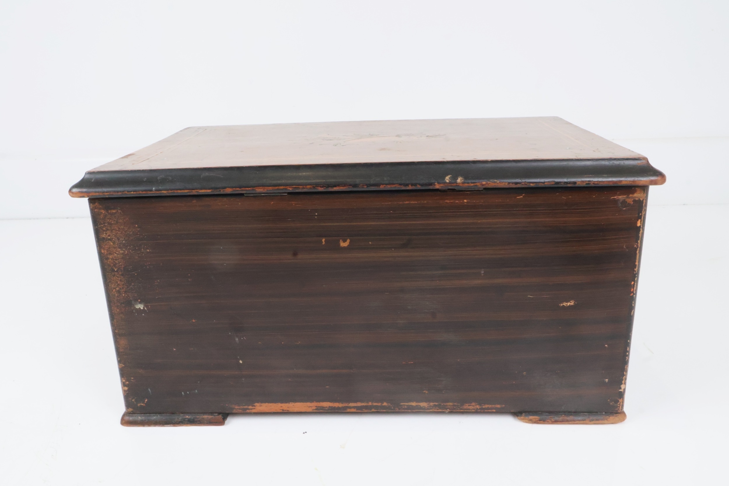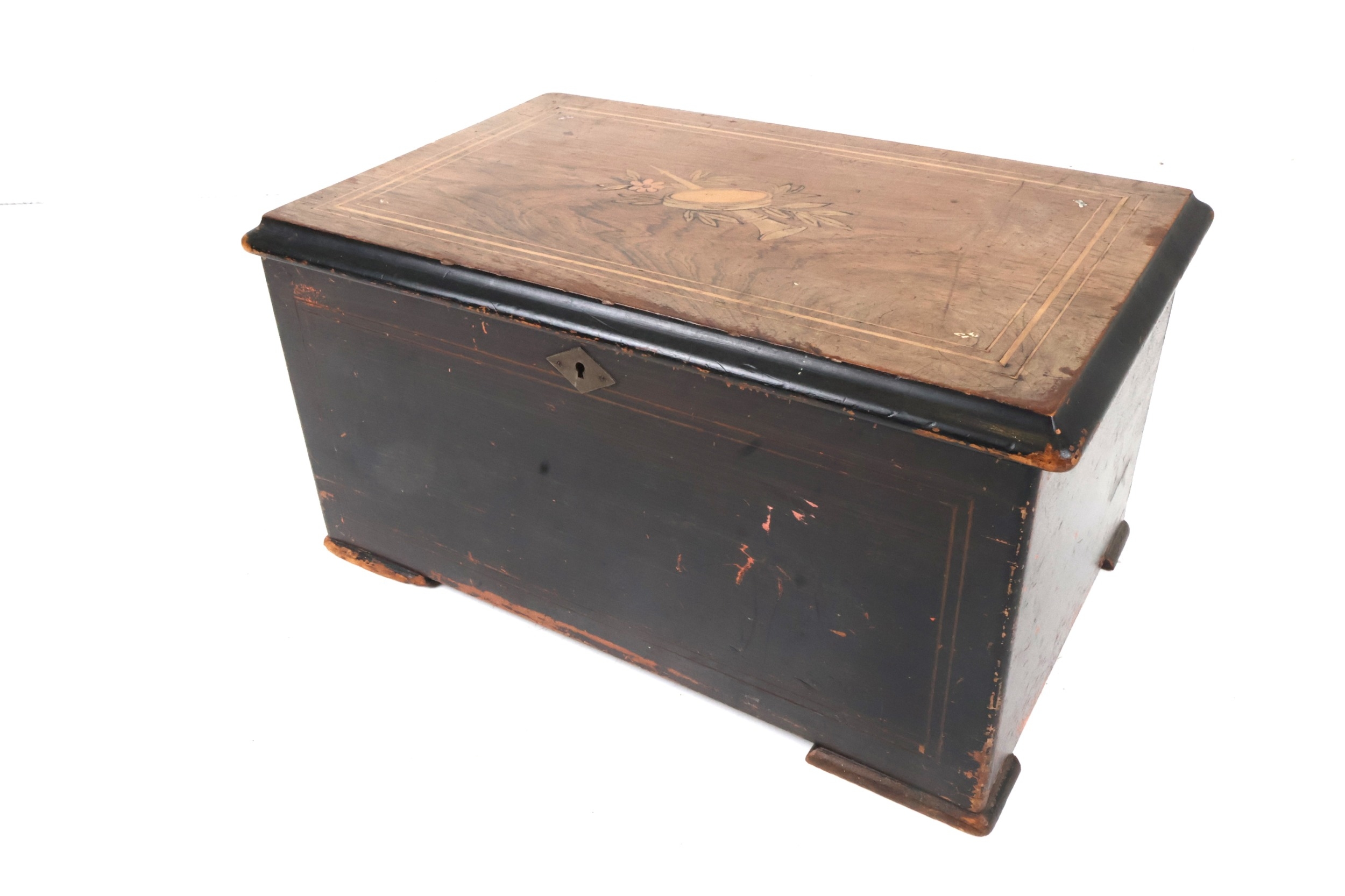 Antique Swiss Inlaid Wood Box with Musical Trophy Marquetry