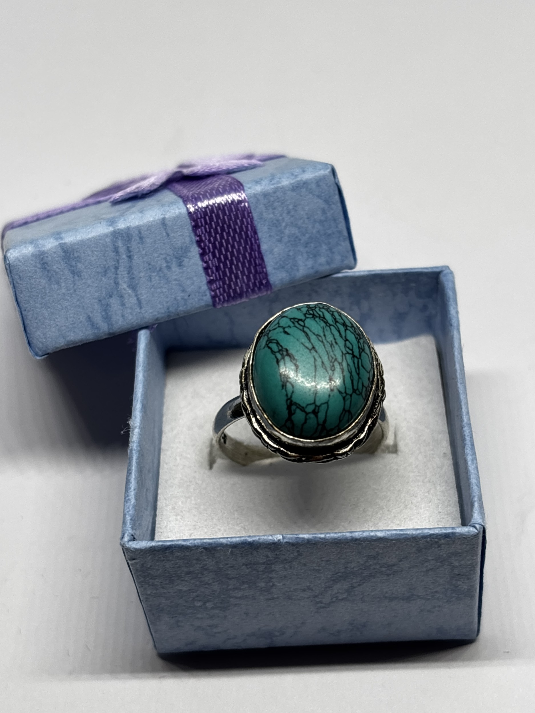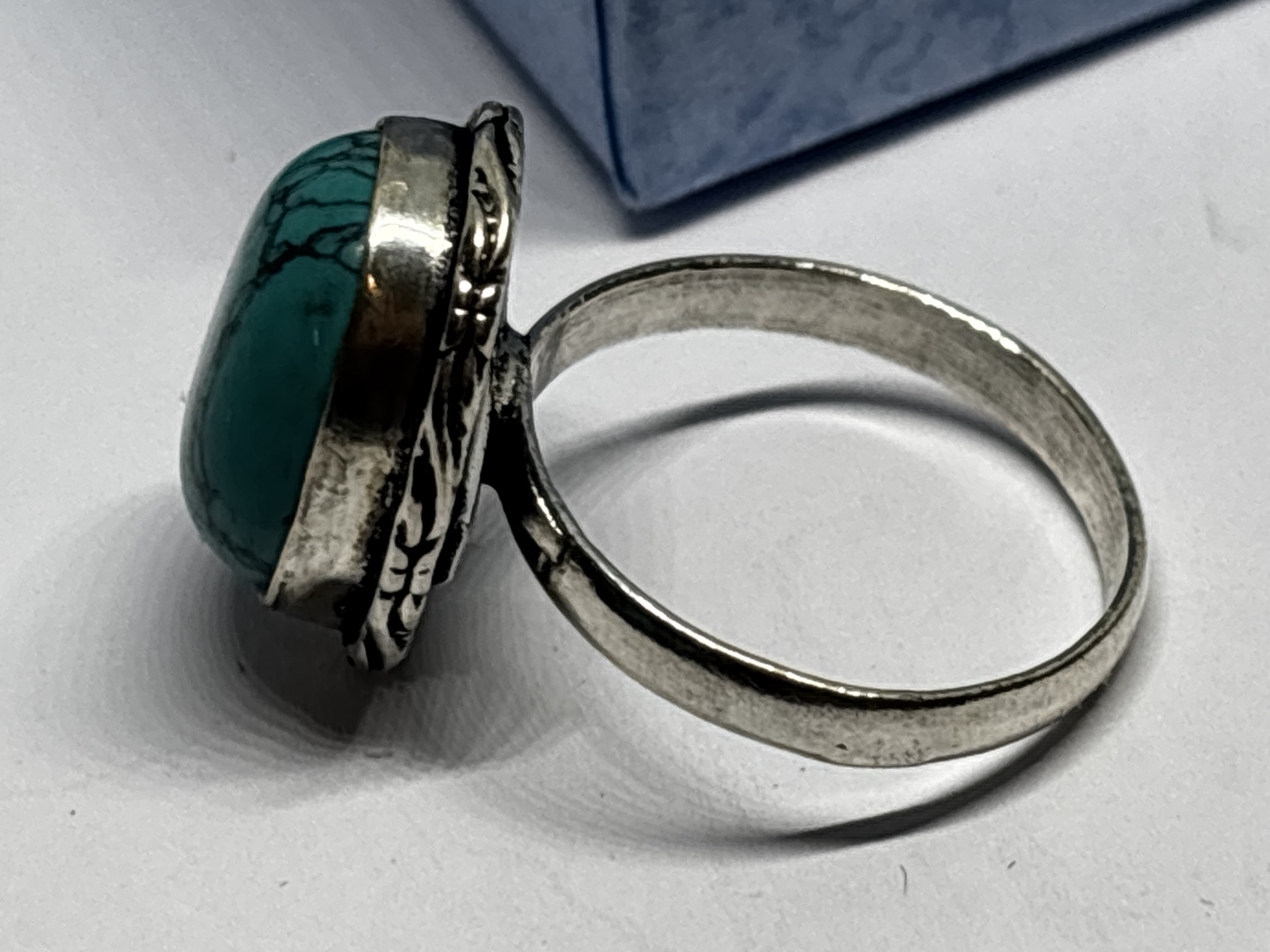 A MARKED 925 TURQUOISE RING SIZE Q IN A PRESENTATION BOX