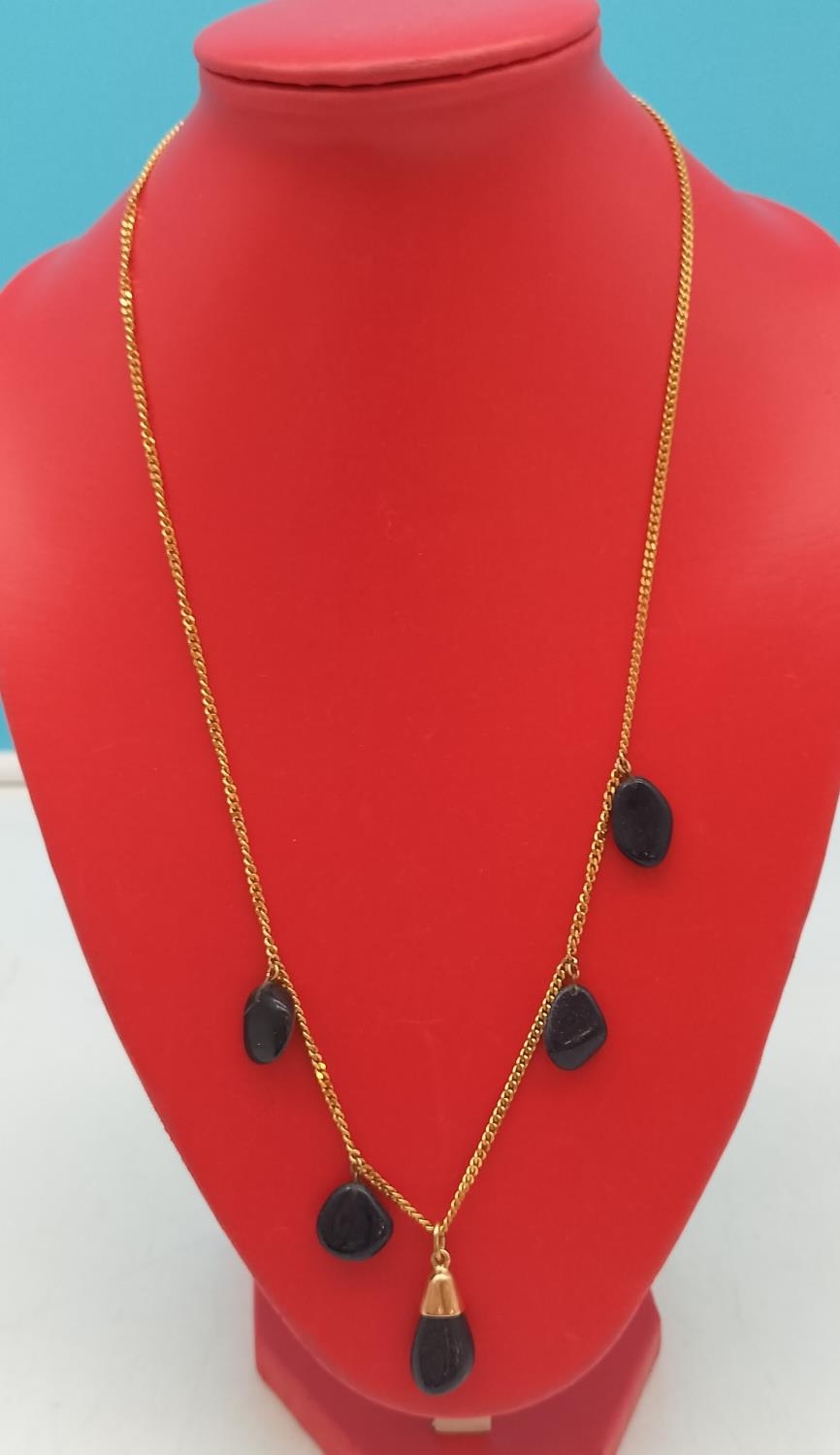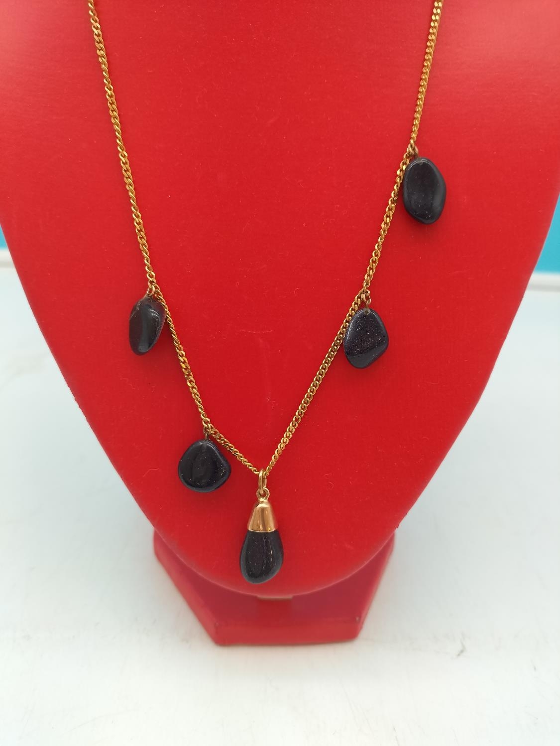 9ct Gold 20" Chain with Blue Gold Stone Gems. Total Weight 14.3 Grams. 1 Stone A/F.
