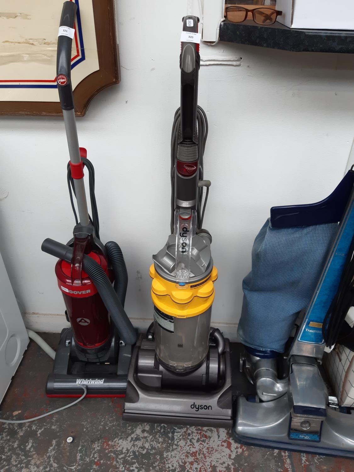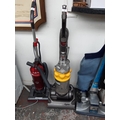 A GREY AND YELLOW DYSON DC24 UPRIGHT BAGLESS VACUUM CLEANER