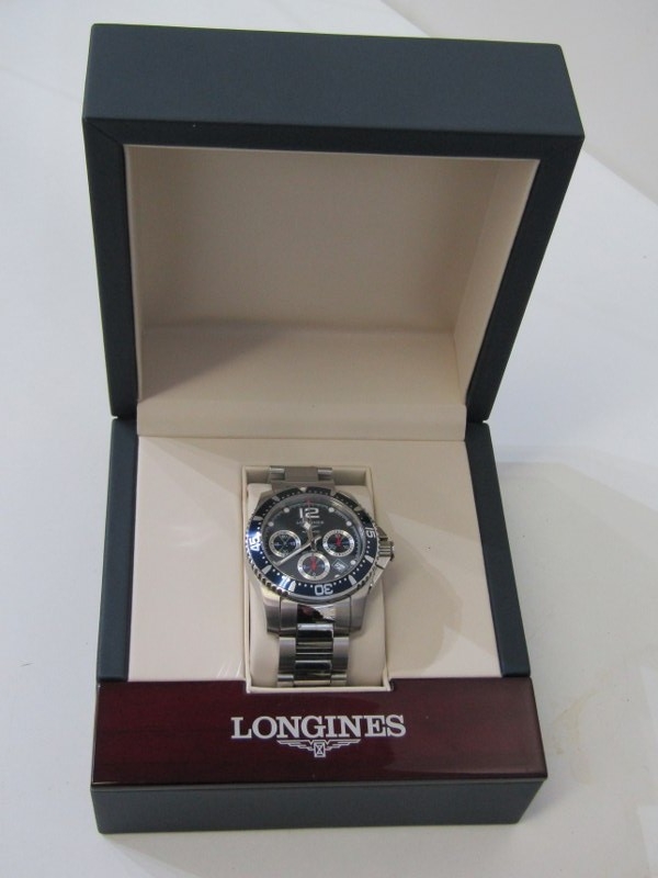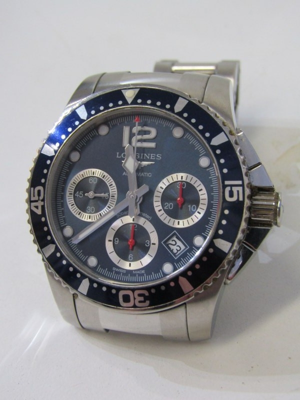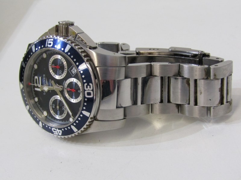 GENTLEMAN'S LONGINES WRIST WATCH, A gents stainless steel Longines automatic chronograph blue dial wrist watch, double boxed with papers