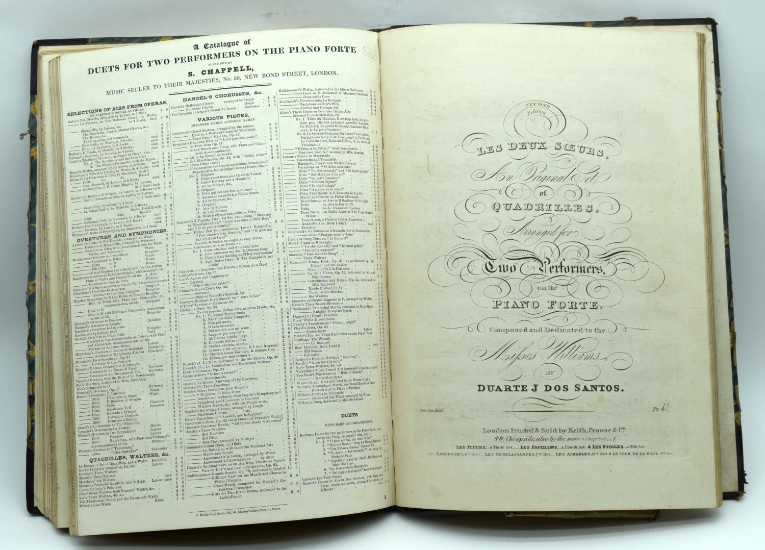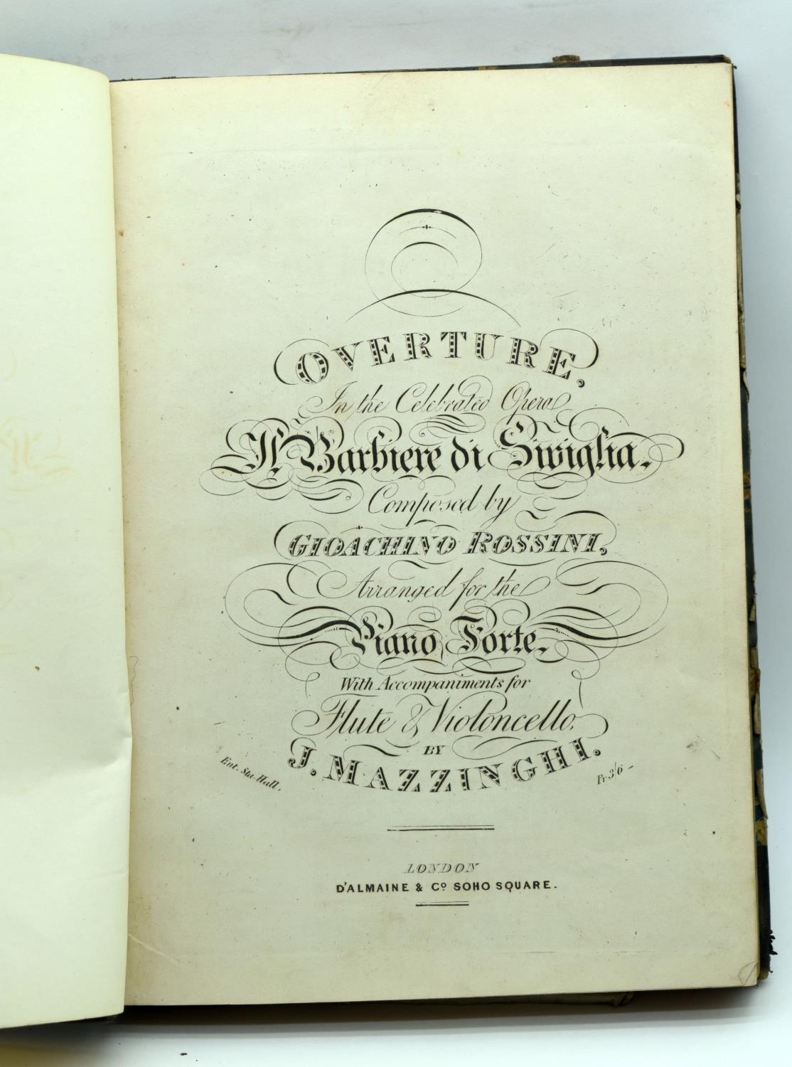 J & F Newell 1838 Book of Overtures from Operas for the Piano Forte published by D'Almaine & Co various composers Rossini etc. 36 x 26cm.