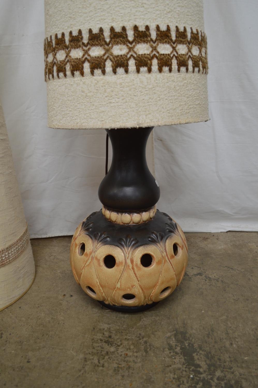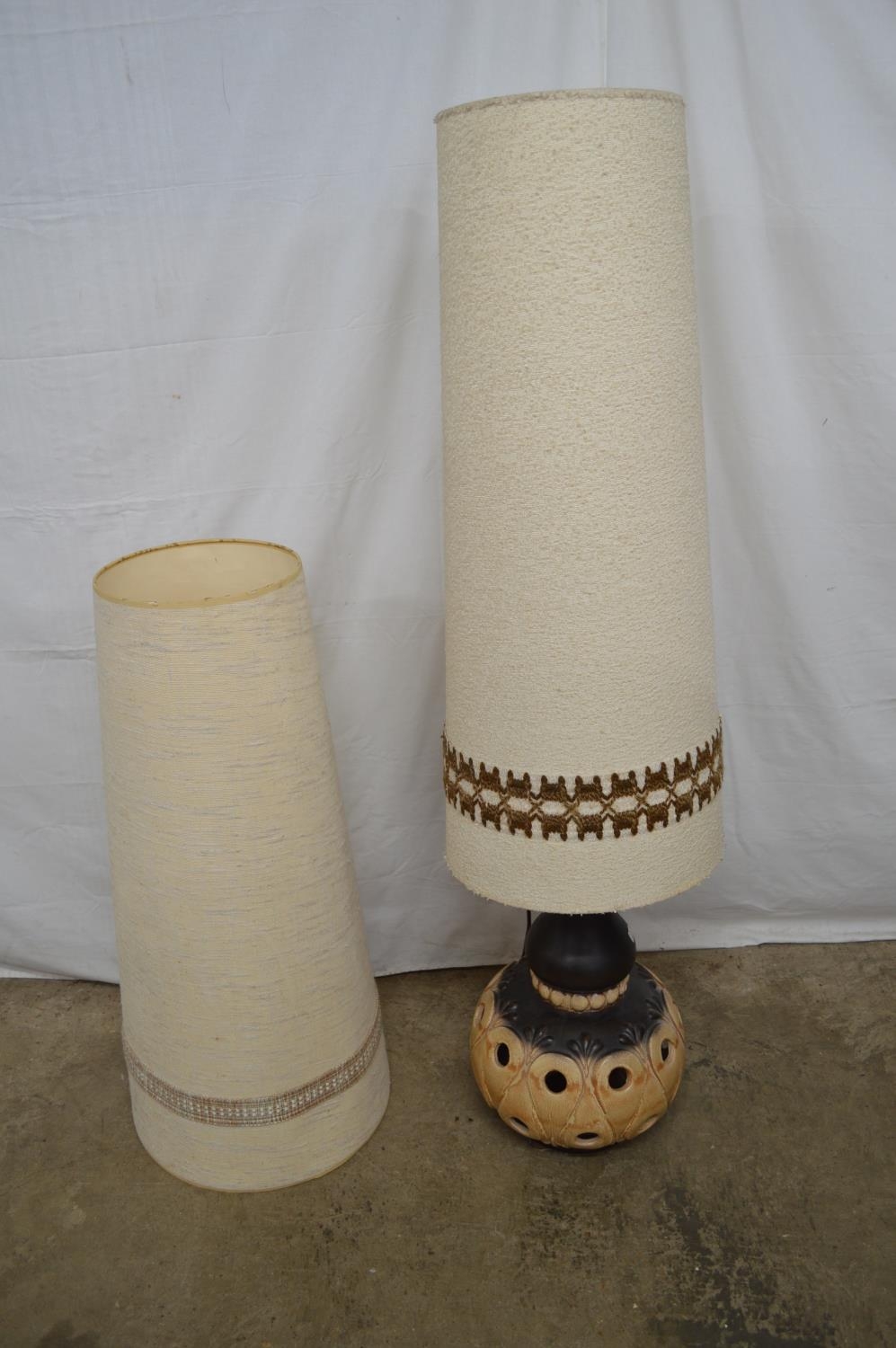 West German 1970's pottery lamp and shade - 130.5cm tall and additional lamp shade