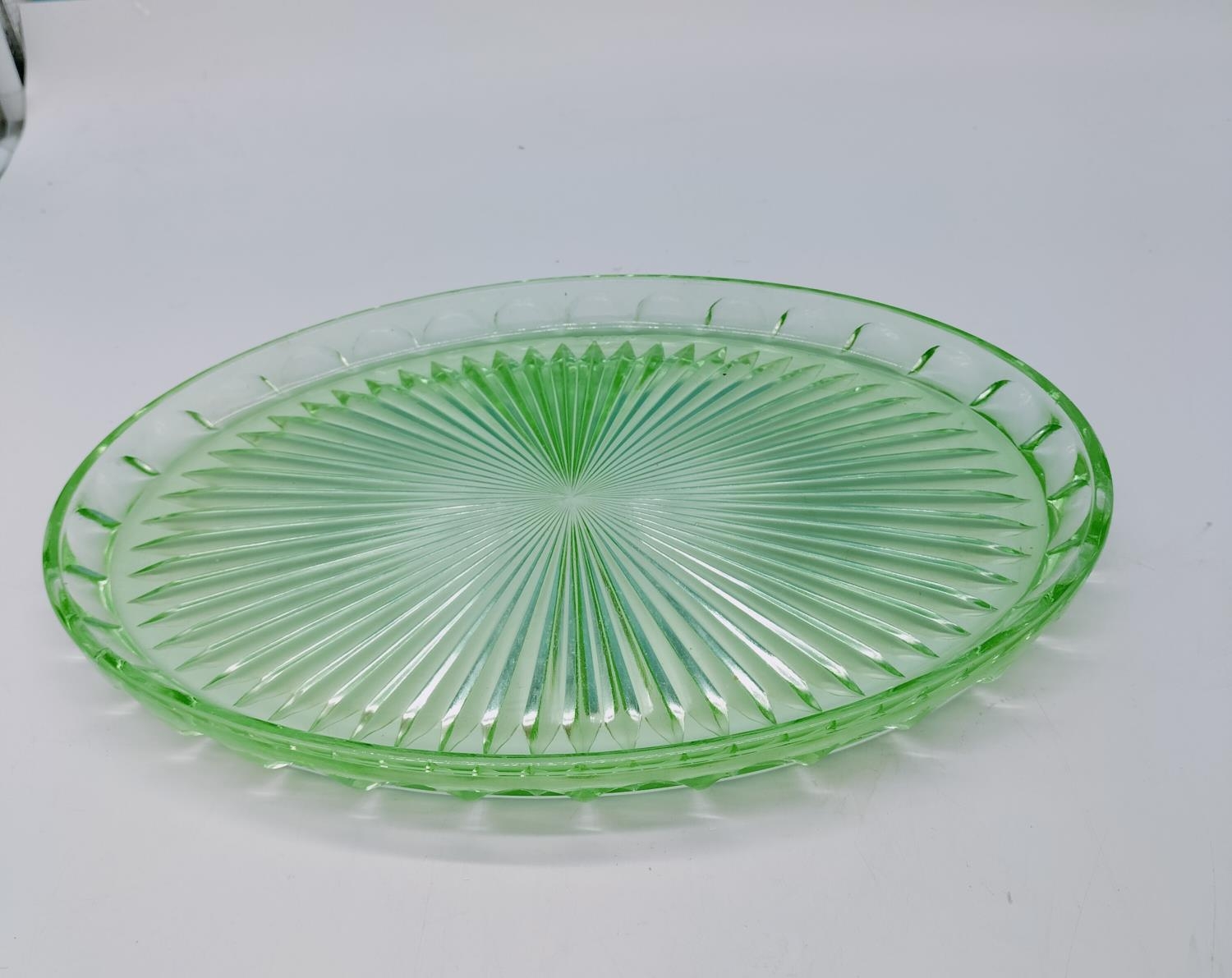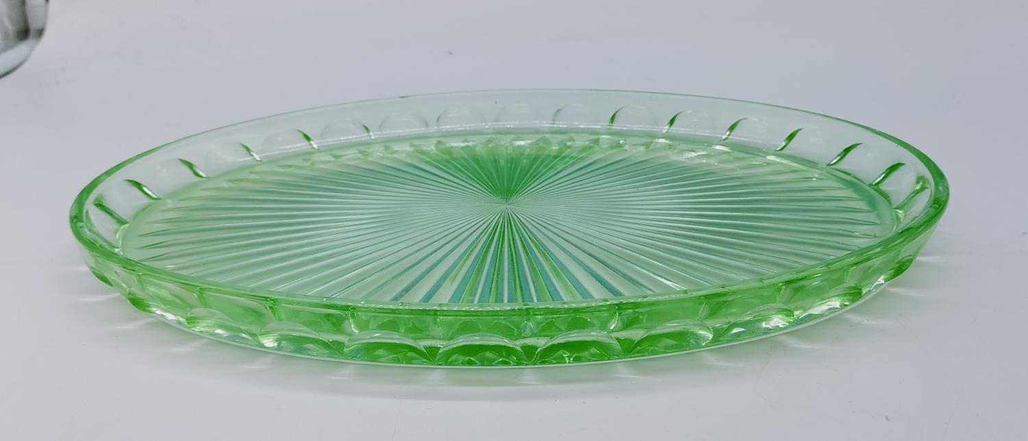 Green Glass Art Deco Tray. 33cm x 24cm.