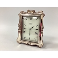 R Carr (Sheffield) Hallmarked Silver Mounted Mantel Clock, Sheffield 1994, of scroll design, 19cm.