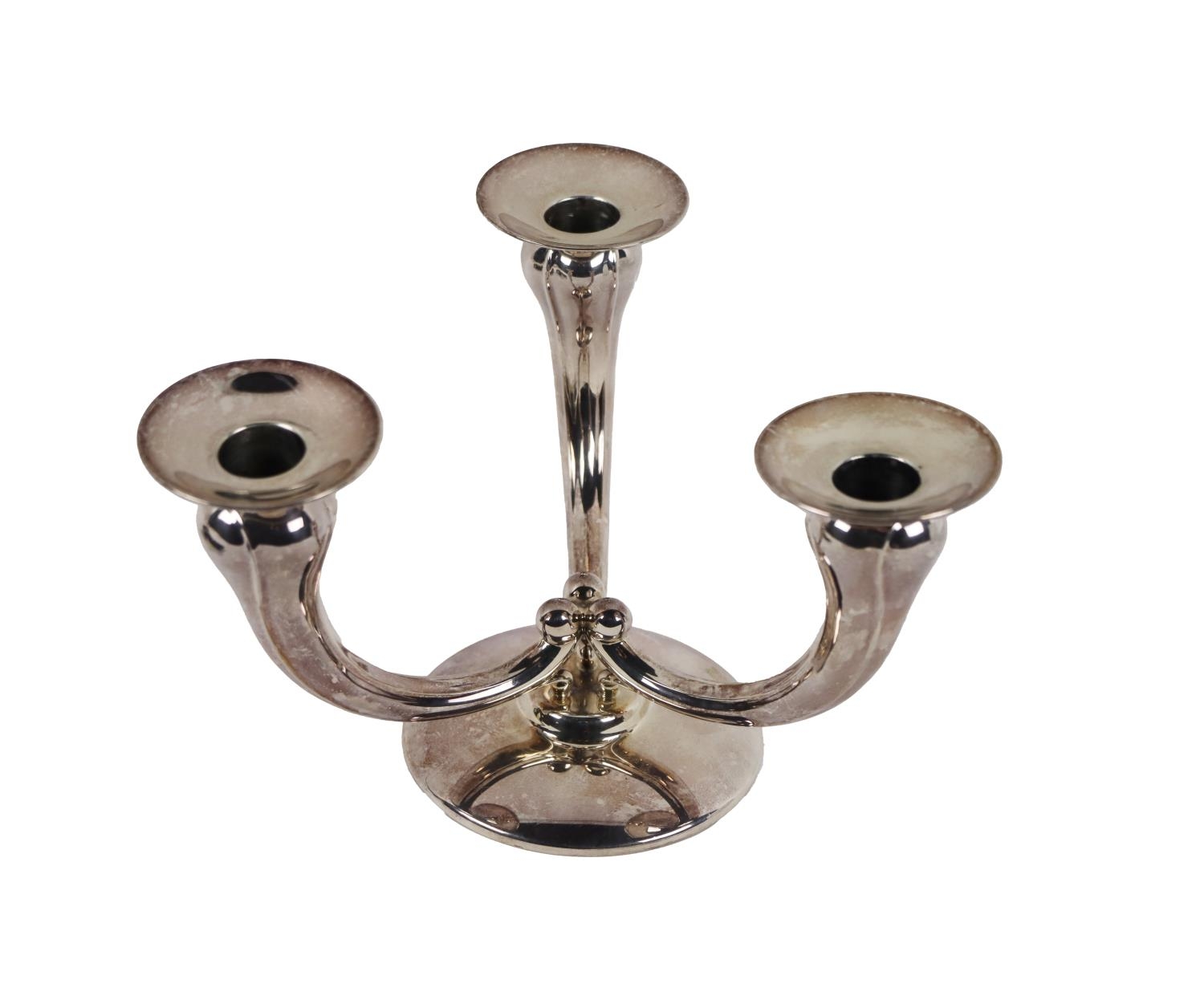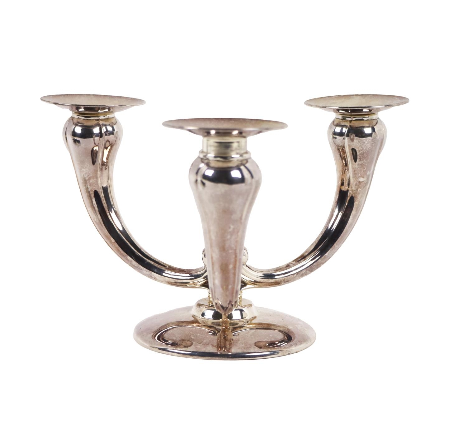 An attractive silver Art Deco design three branch Candelabra, by H.E. Waldstetten, Baden (Germany) c. 1935, approx. 14cms high, 14.5 ounces. (1)