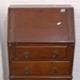 Mid Oak Bureau, fall enclosing fitted nest, carved with decorative details, 2 long drawers on William & Mary style supports with flat section stretchers
