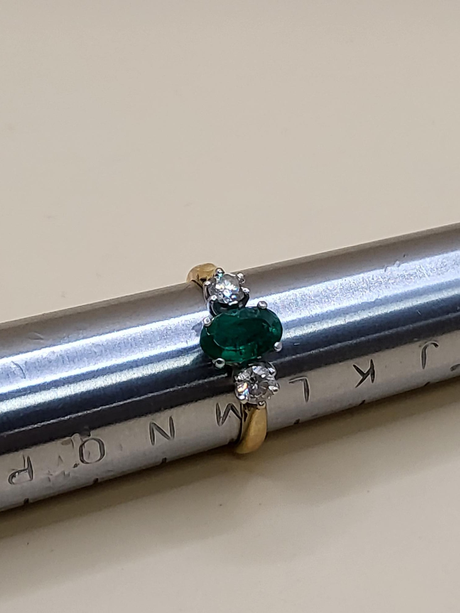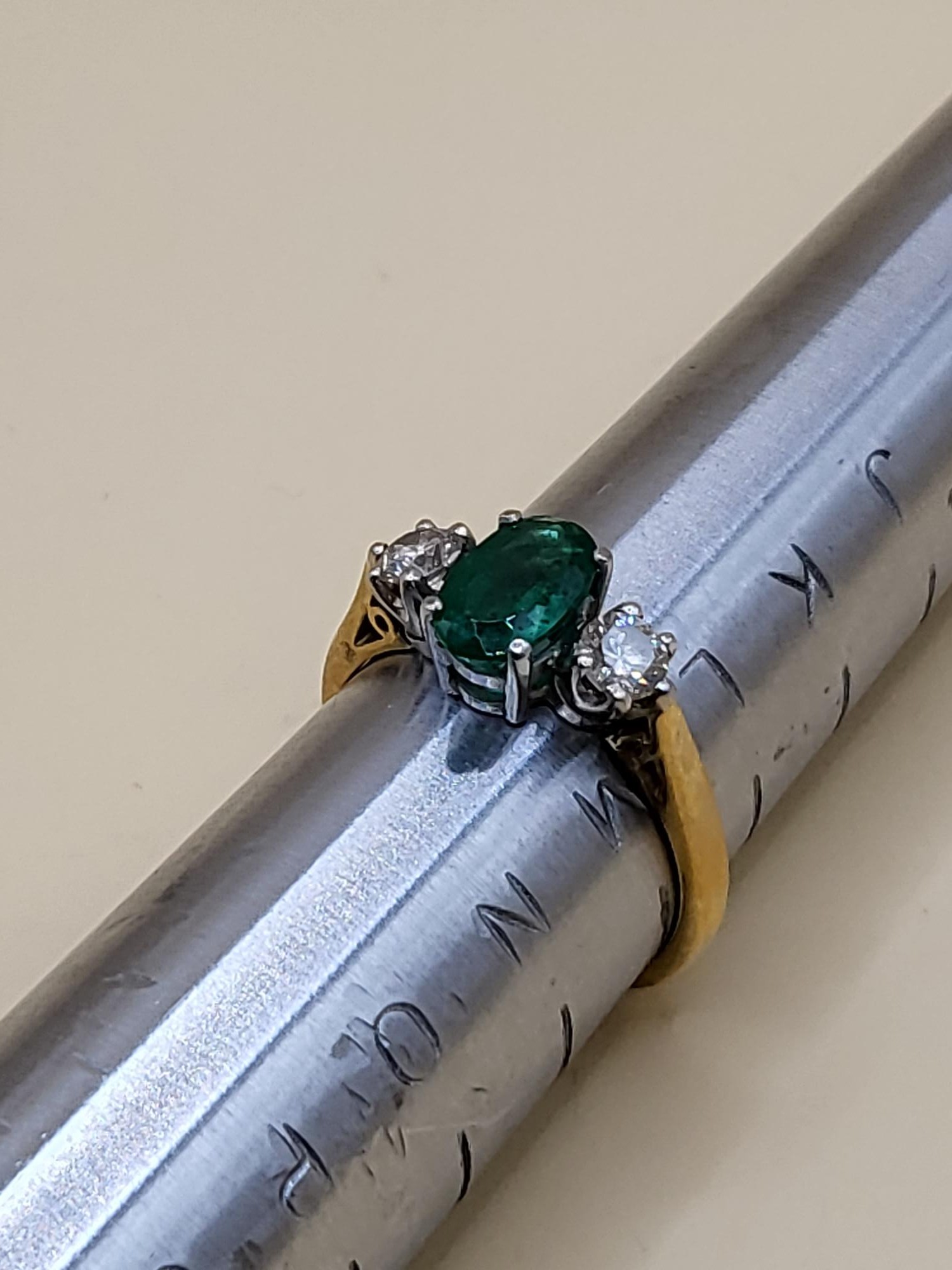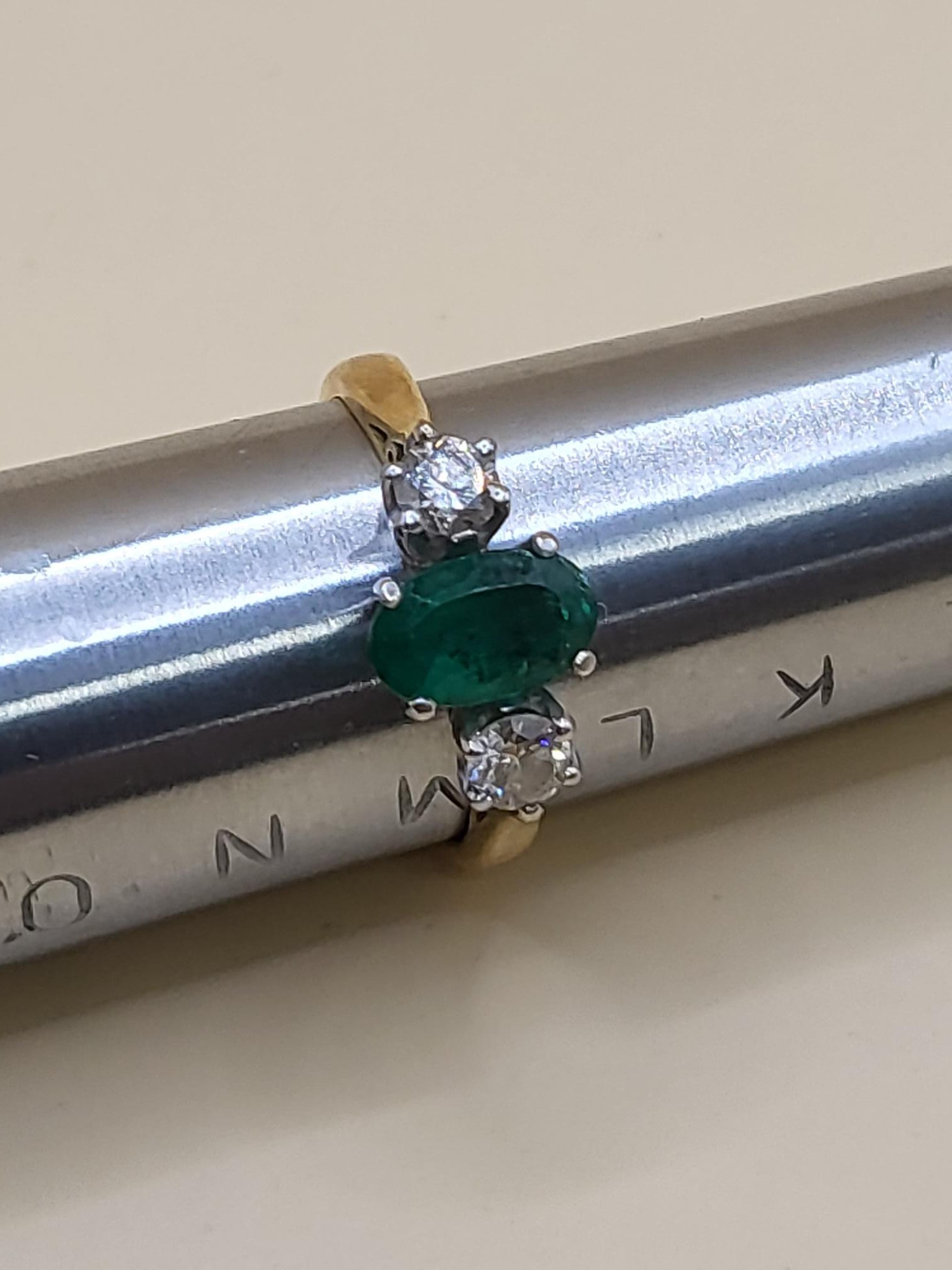 18ct Gold Diamond & Emerald Ring Size M Weighs 3.6g Nice Condition