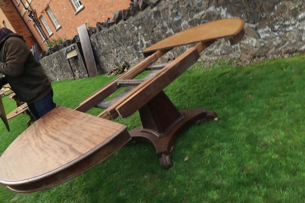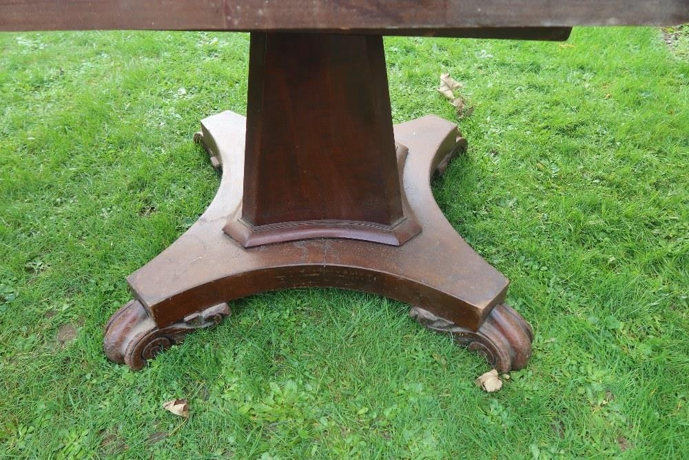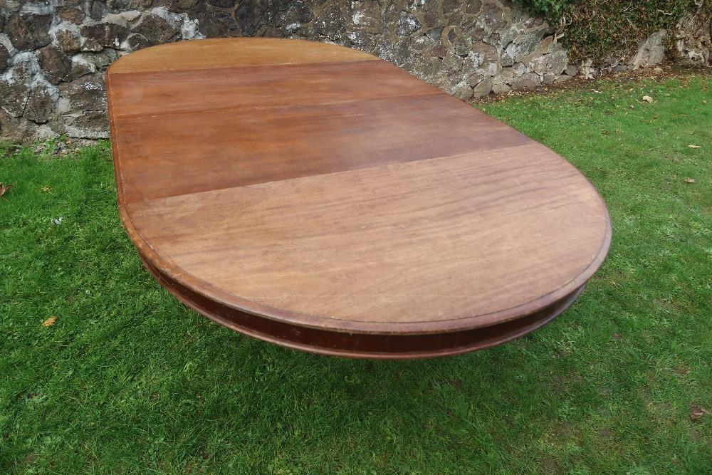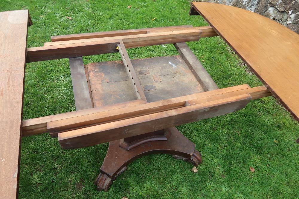 A 19th century mahogany circular extending table with two leaves max length 100ins , width 53ins, height 28ins