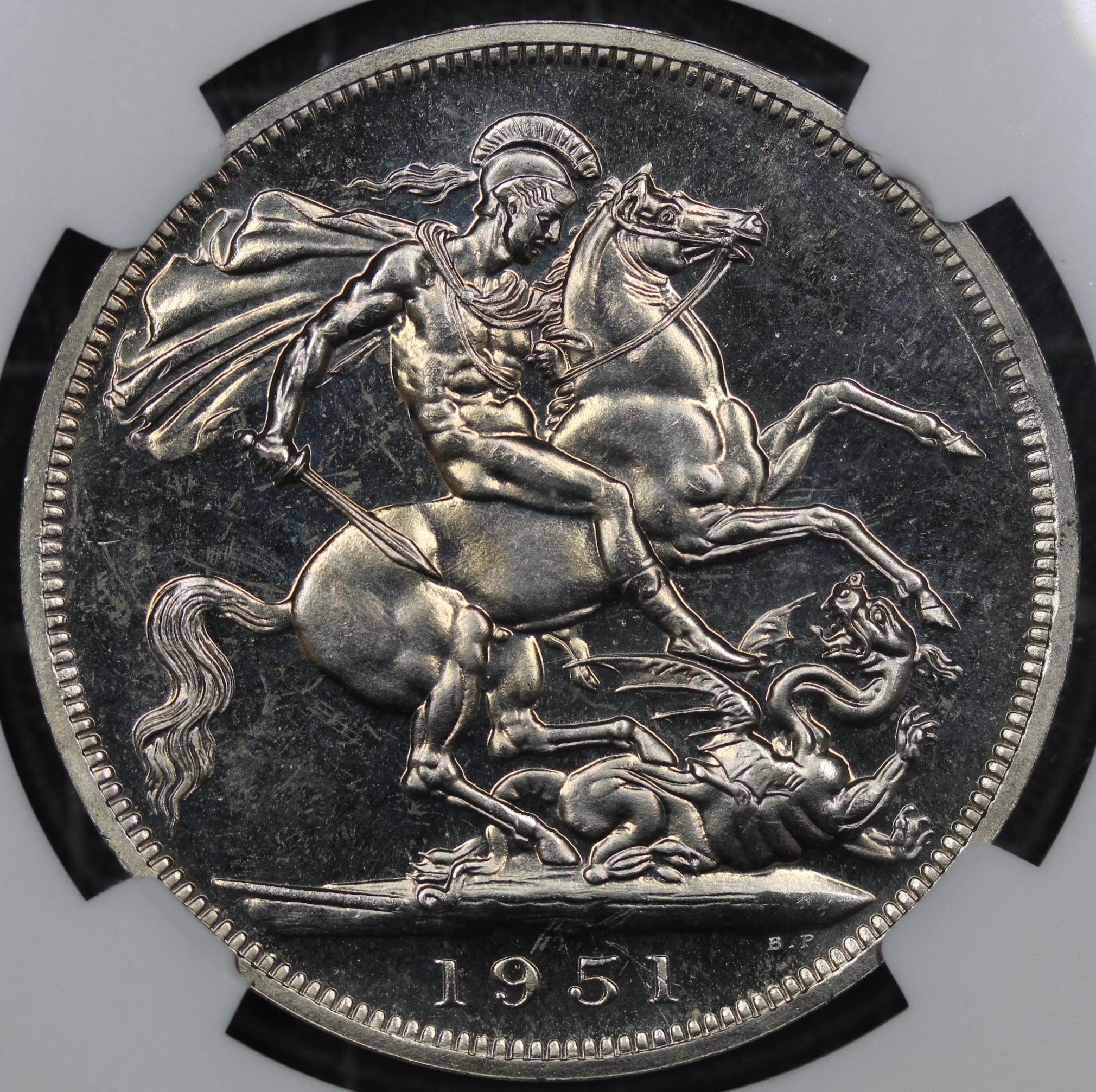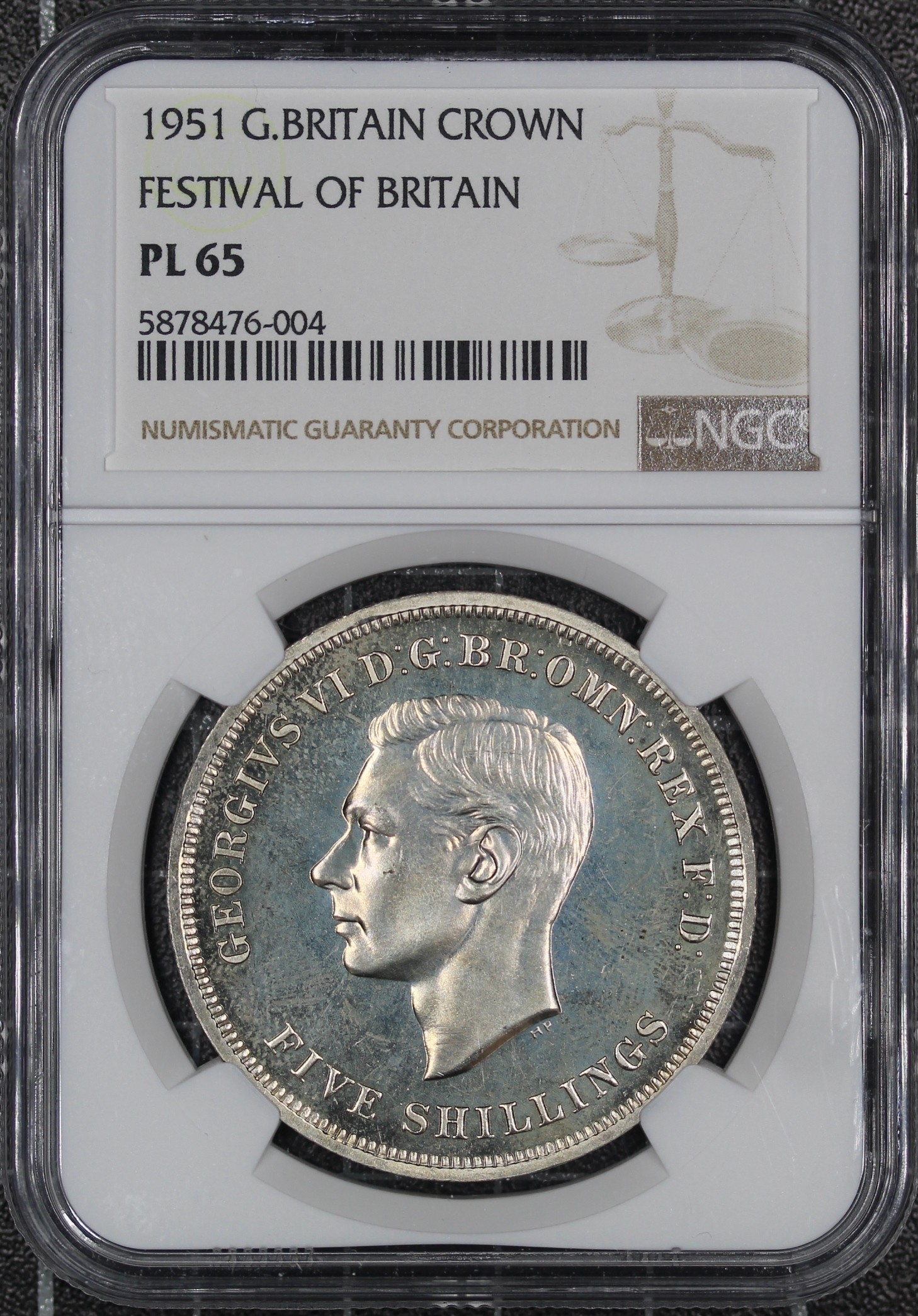 1951 Festival of Britain Crown, George VI (ESC 393C, Bull 4024, S. 4111). Graded NGC PL65, uncirculated with only minor ear to the highest points. Bright as expected though the obverse mildly hazy.