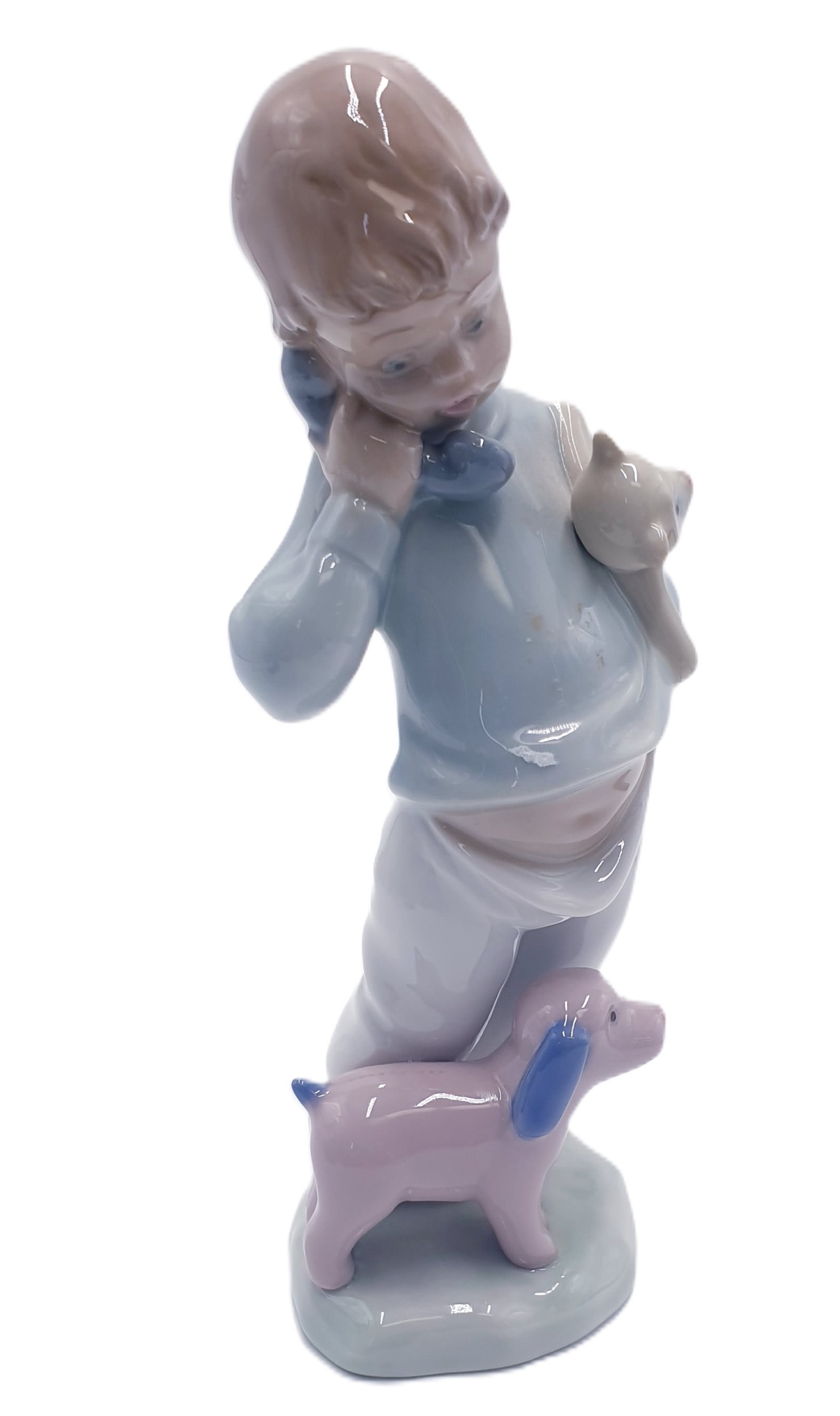 LLADRO (Nao) PORCELAIN 19cm x 8cm CHARACTER FIGURINE OF A YOUNG BOY ON TELEPHONE "BOY ON PHONE WITH PUPPETS" (Model No 1044) Issued 1992 Modelled By Regino Torrijos