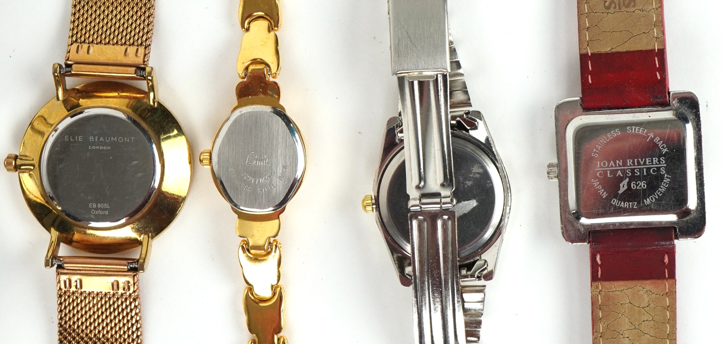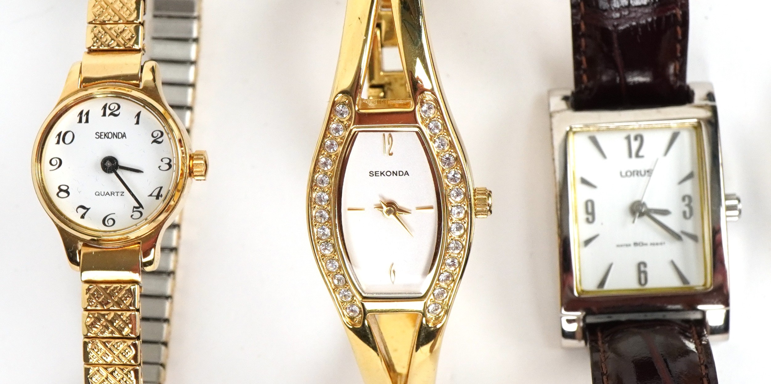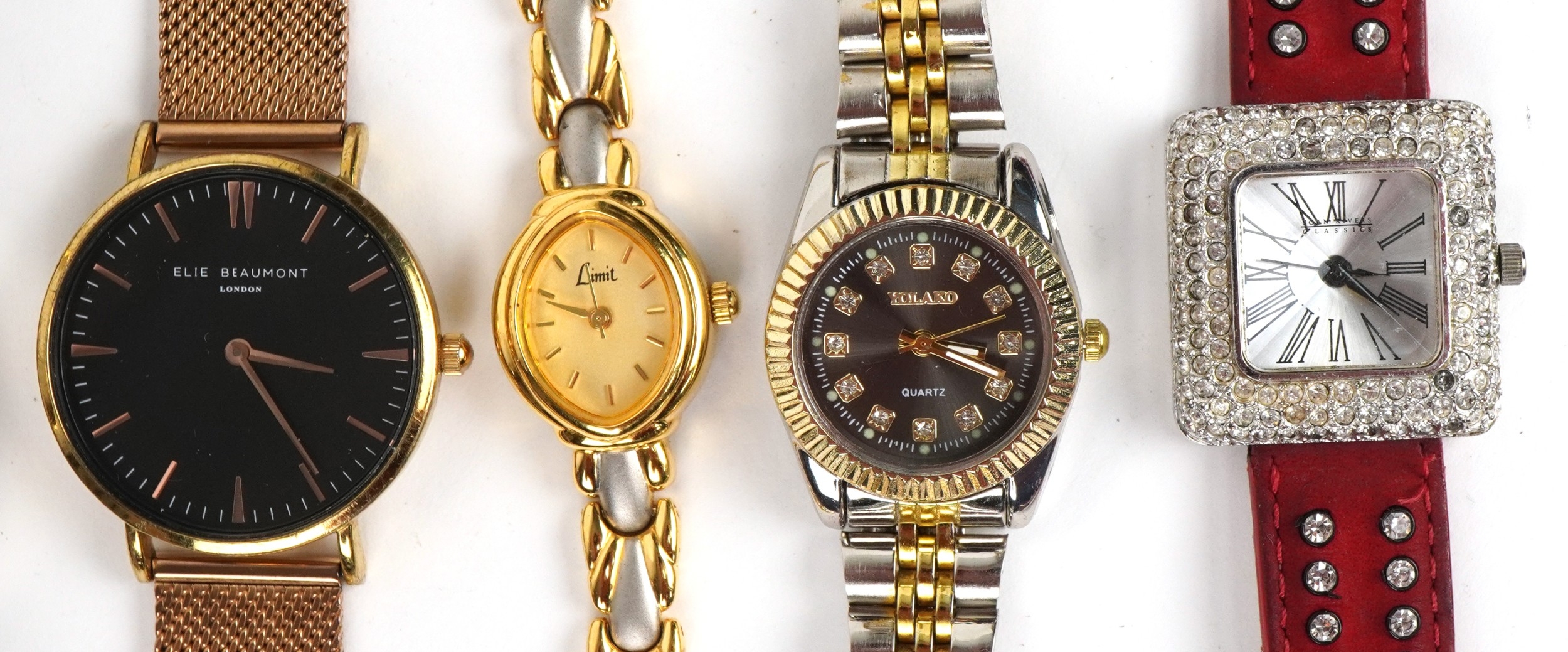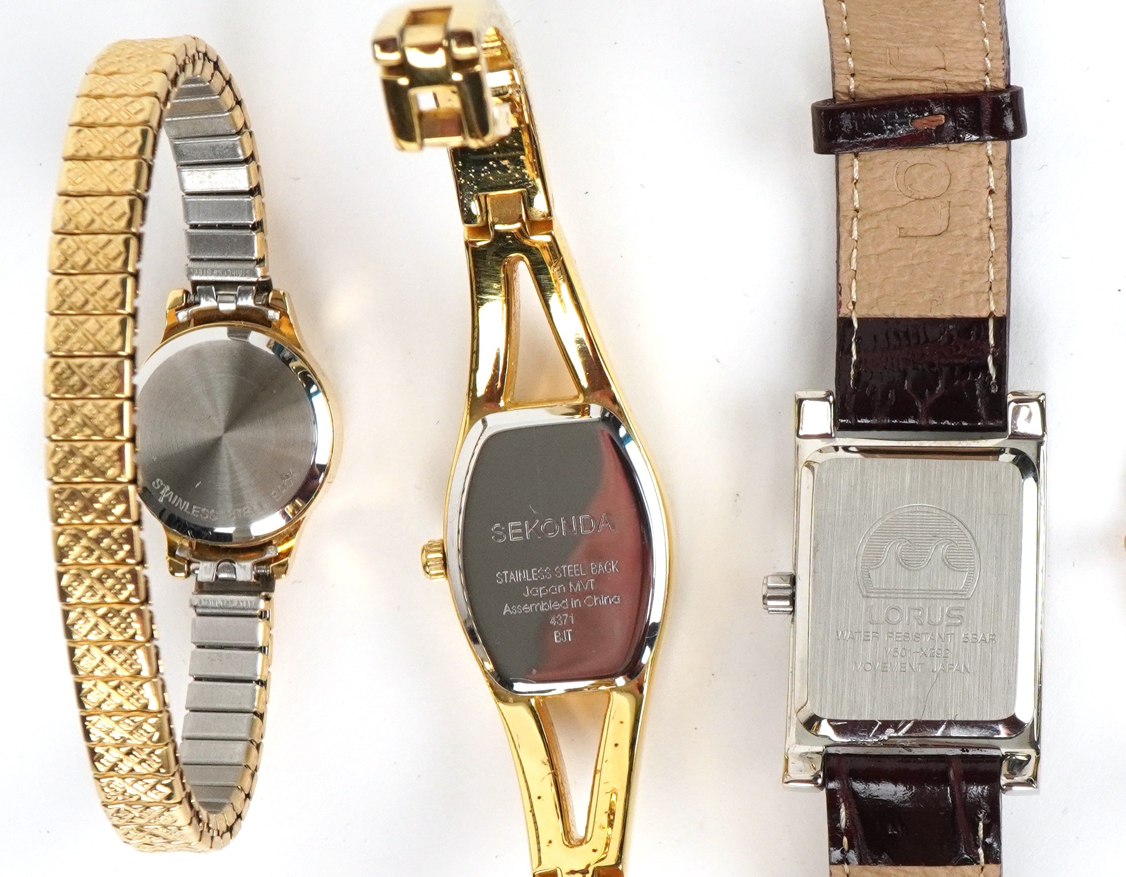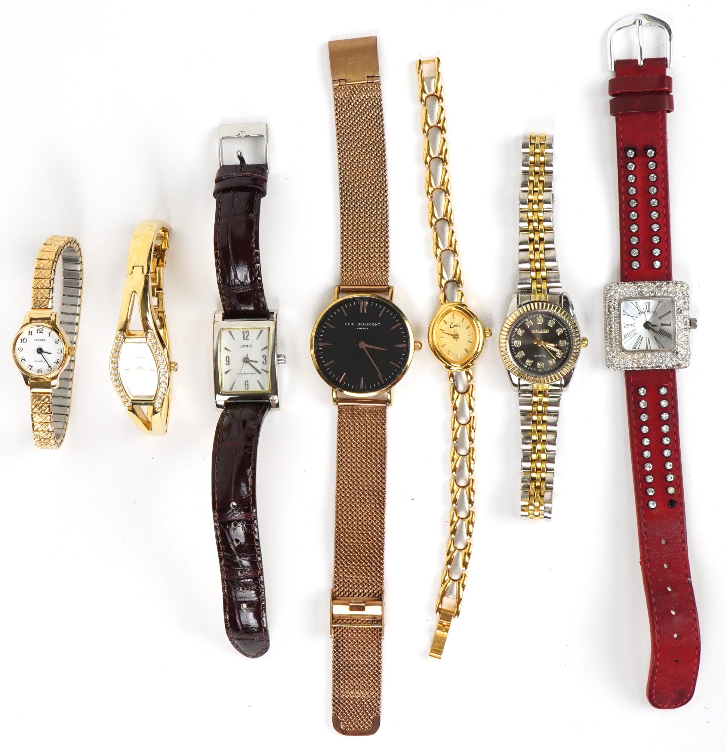Seven vintage and later wristwatches including Elie Beaumont, Lorus, Sekonda and Limit.