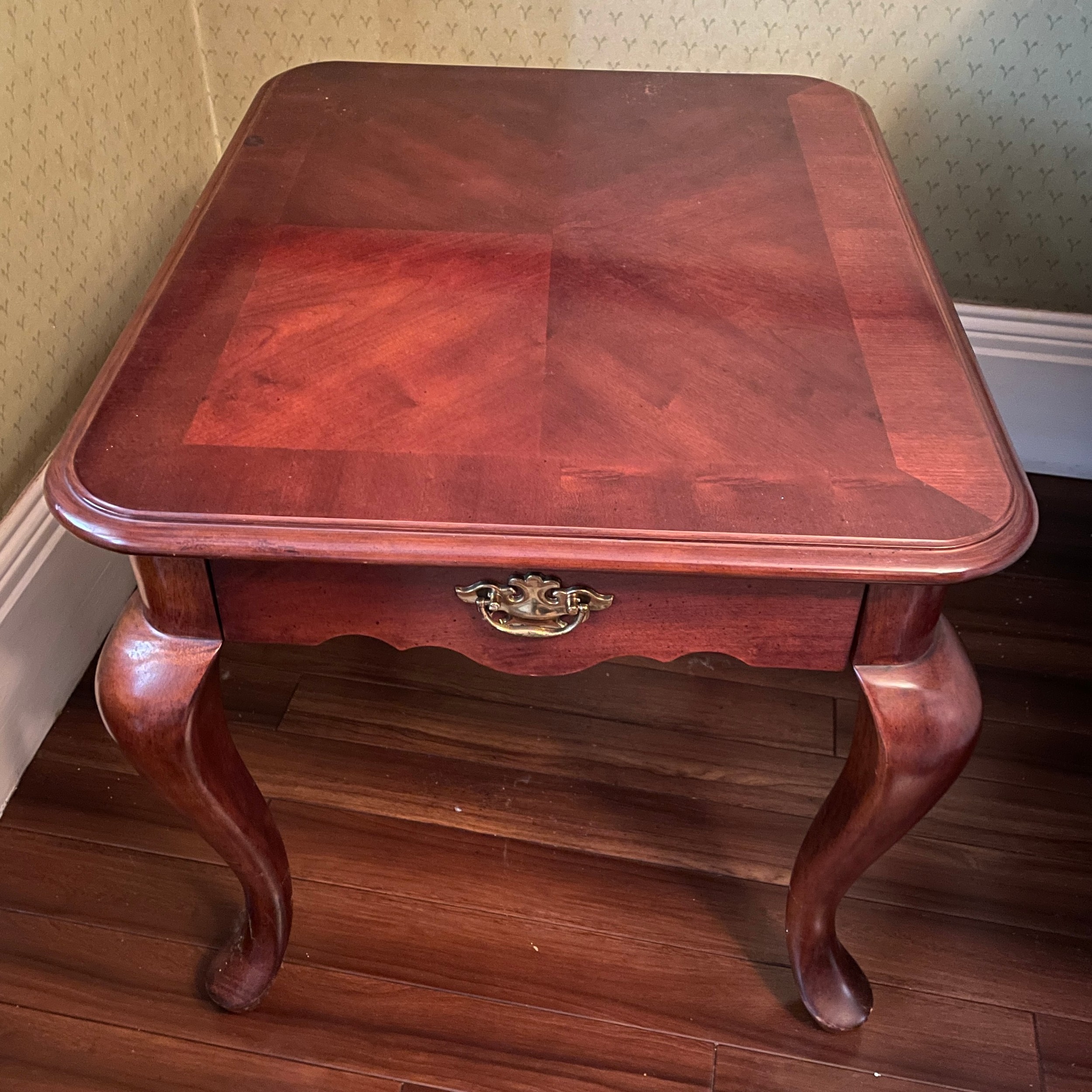 CHERRY CROSS BANDED CABRIOLE LEG LAMP TABLE