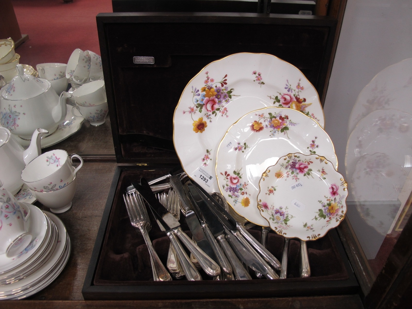 Cooper-Ludlam Part Canteen of Cutlery, together with two Royal Crown Derby "Derby Posies" plates, together with a dish. (4)