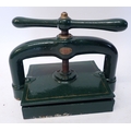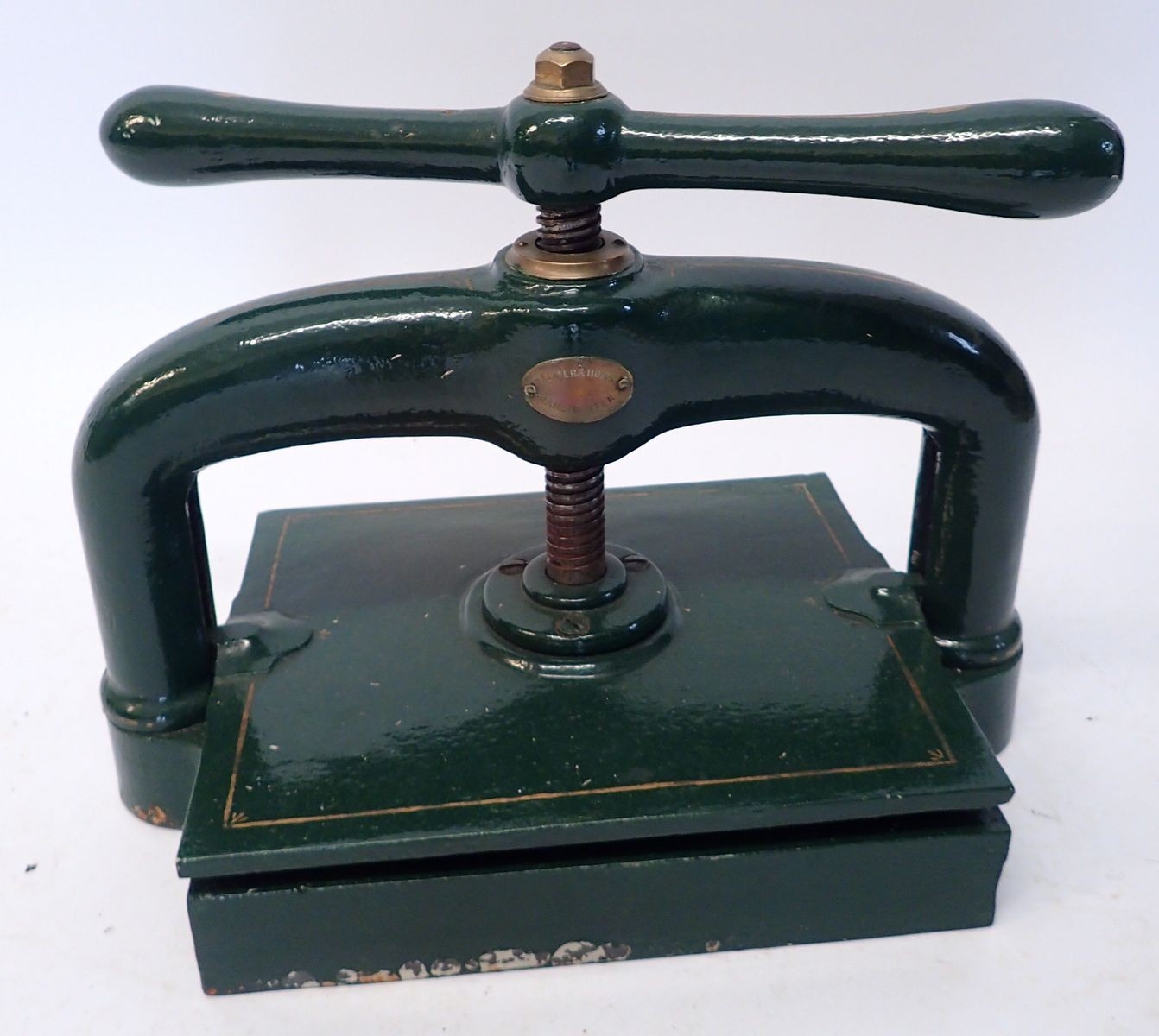 A Victorian Palmer & Howe green cast iron book press, 40cm wide - not suitable for posting!