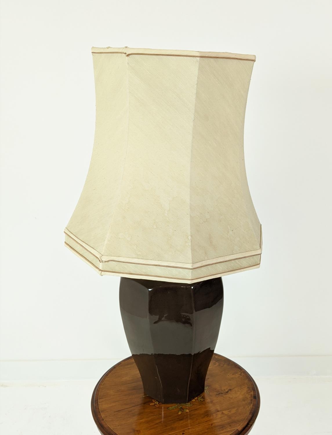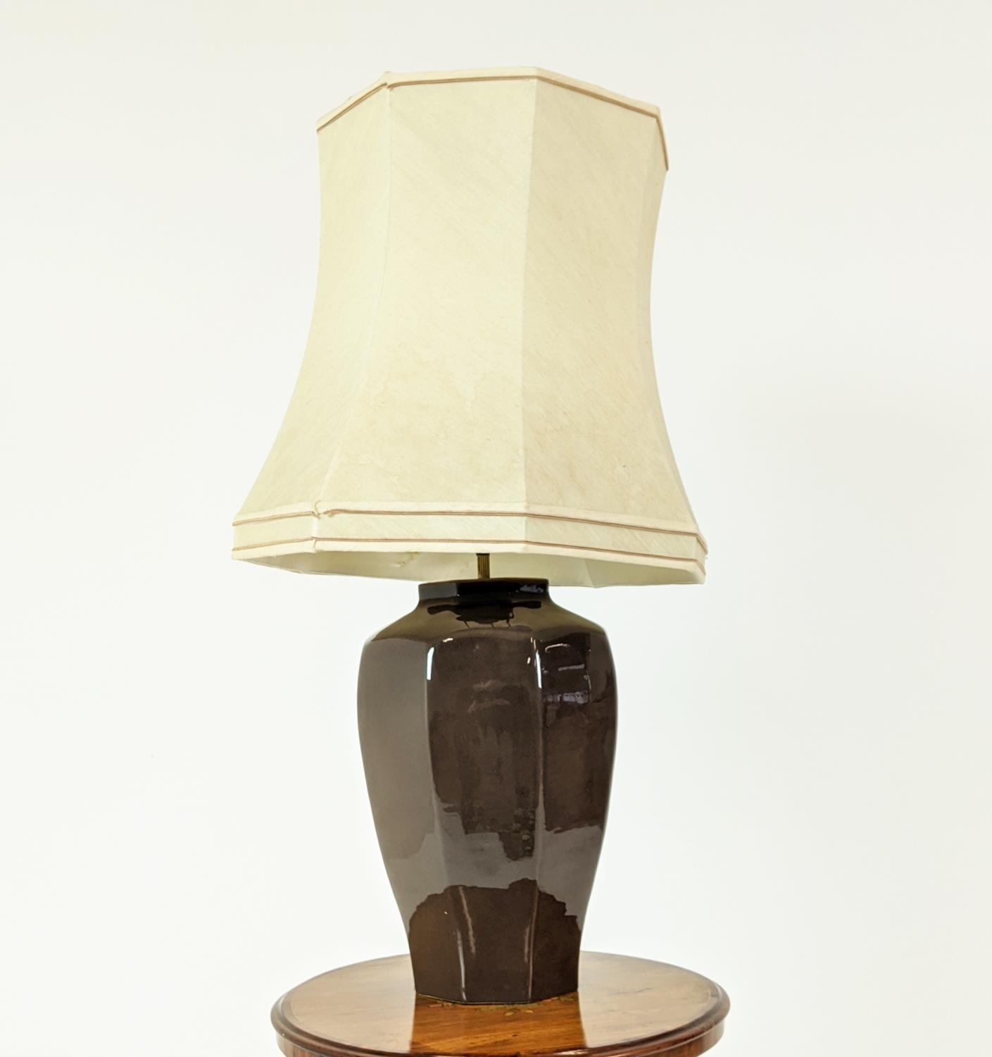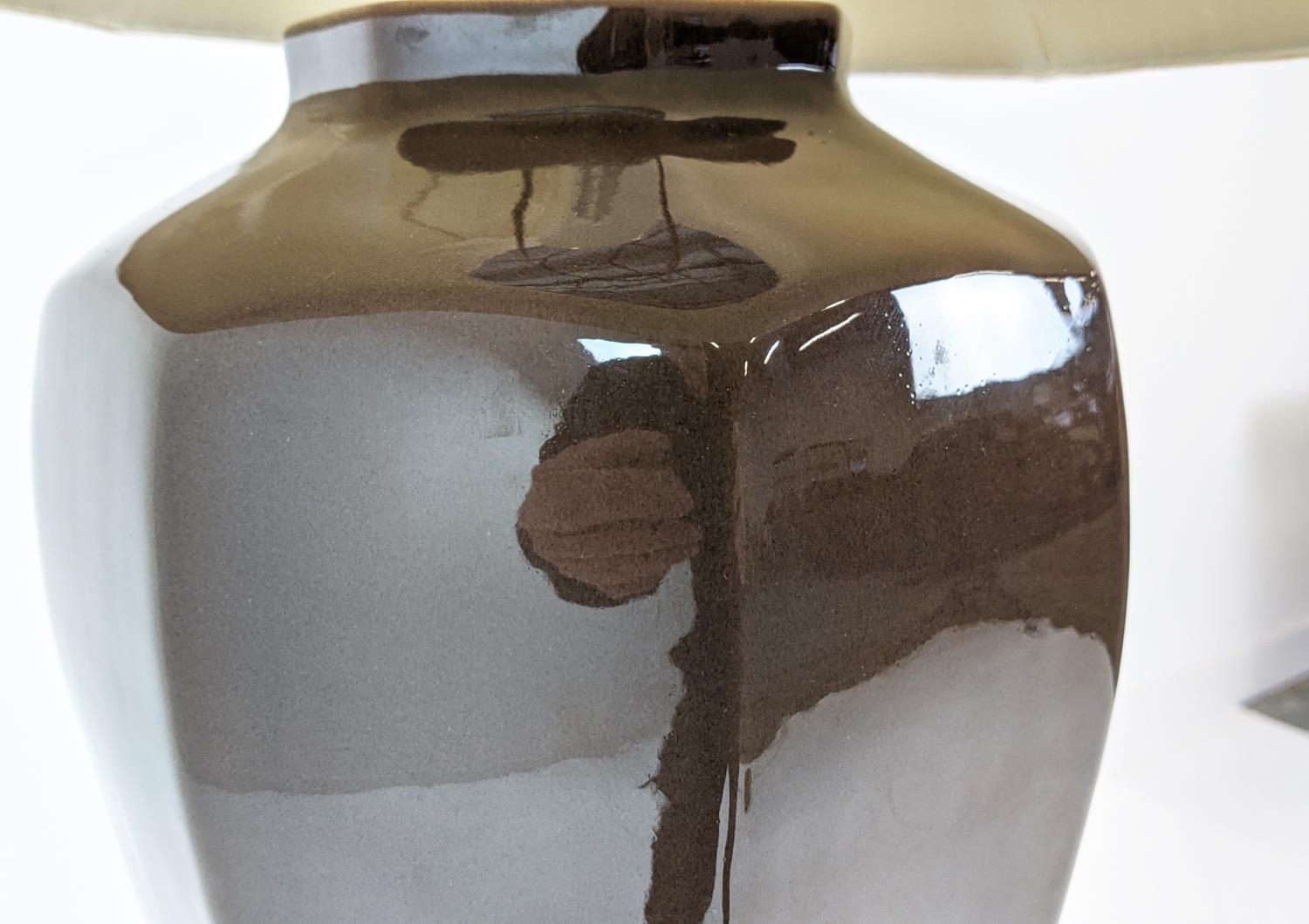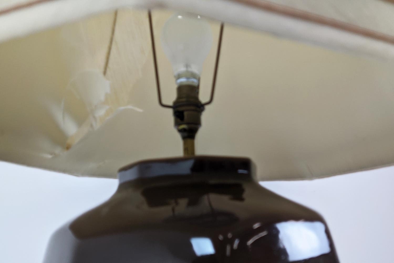 TABLE LAMP, glazed ceramic, with shade, 88cm H approx.