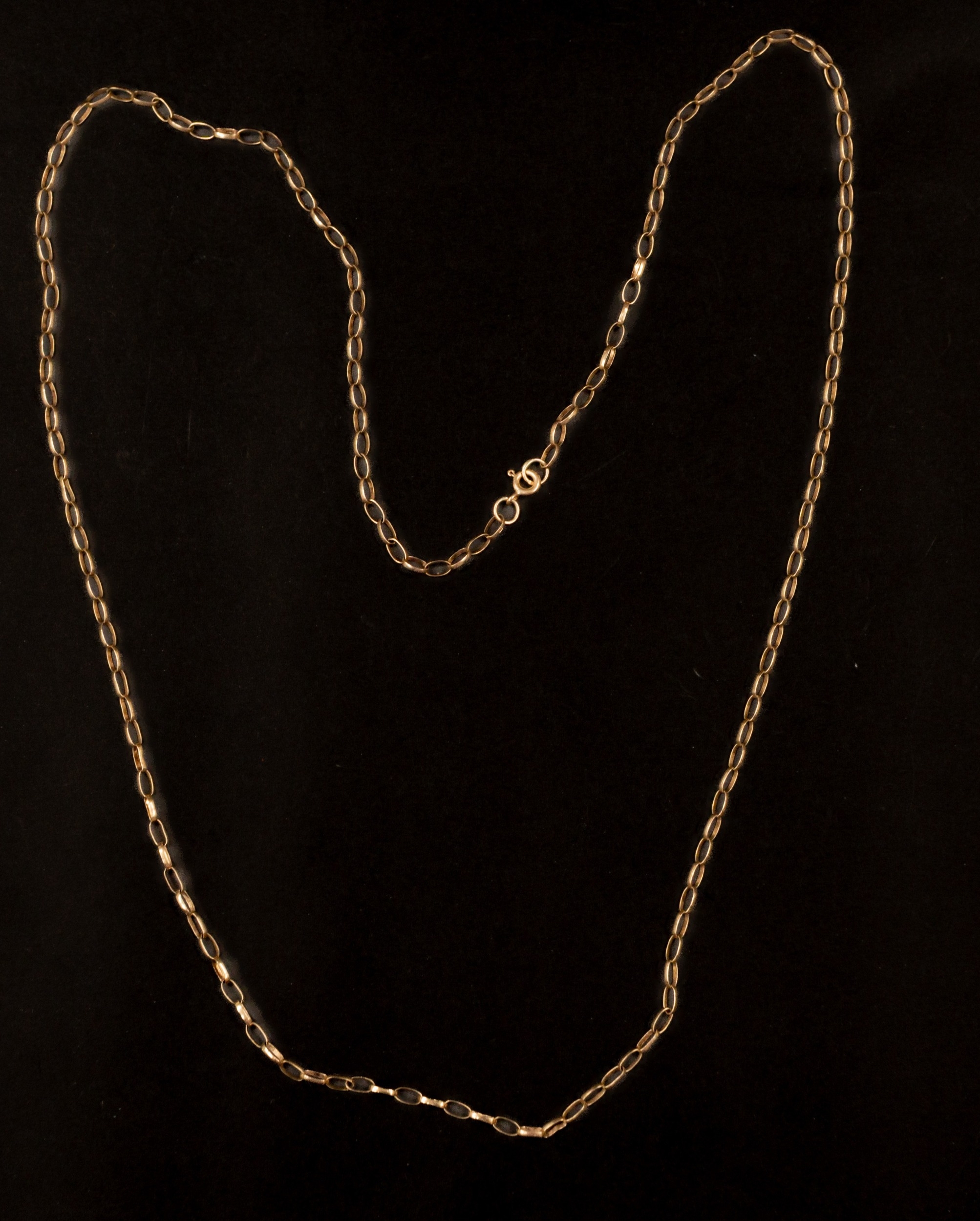 Jewellery: 9ct gold oval belcher link chain, length 38cm, 4.2g.