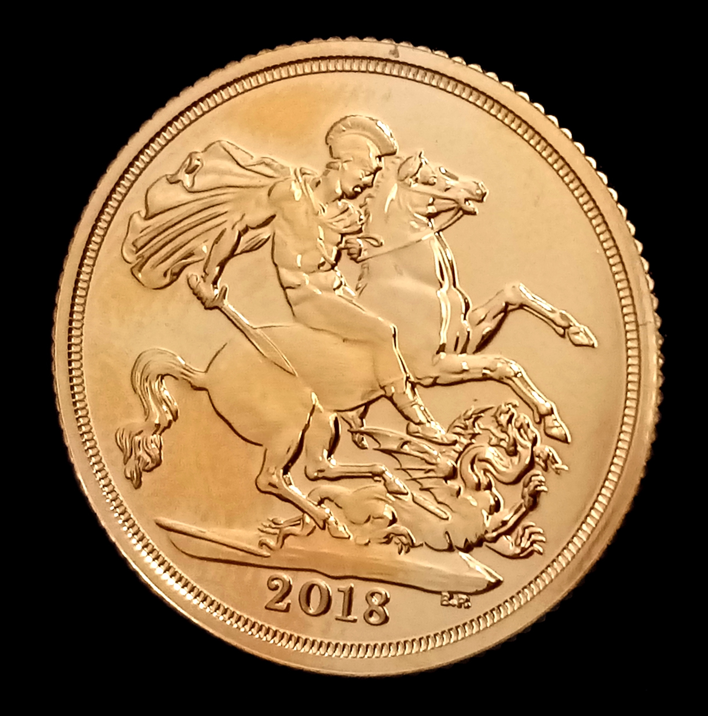 A 2018 QEII 22K Gold Full Sovereign Coin.