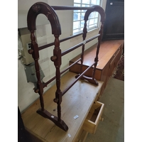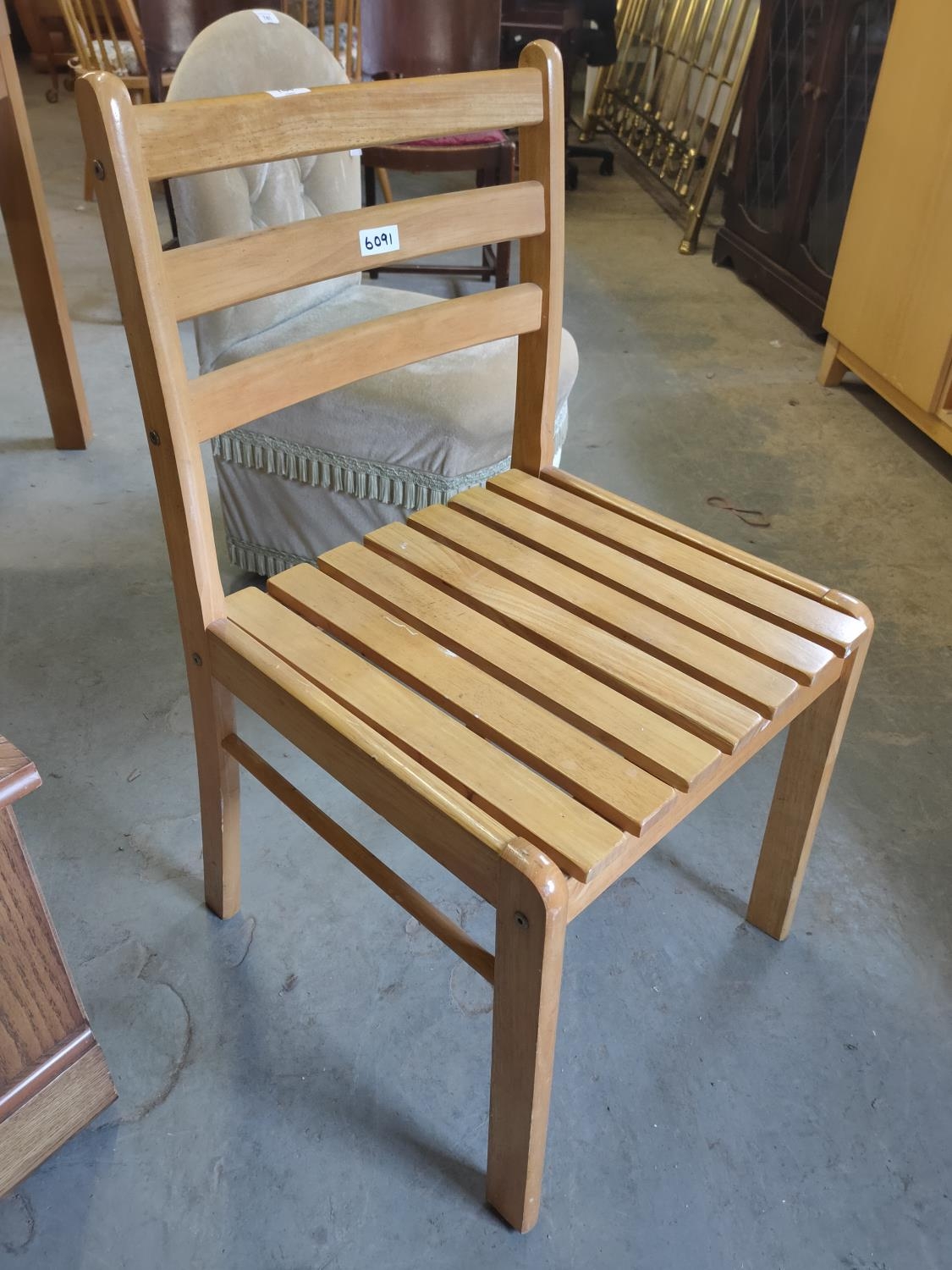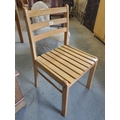 Solid light coloured sturdy slatted chair.