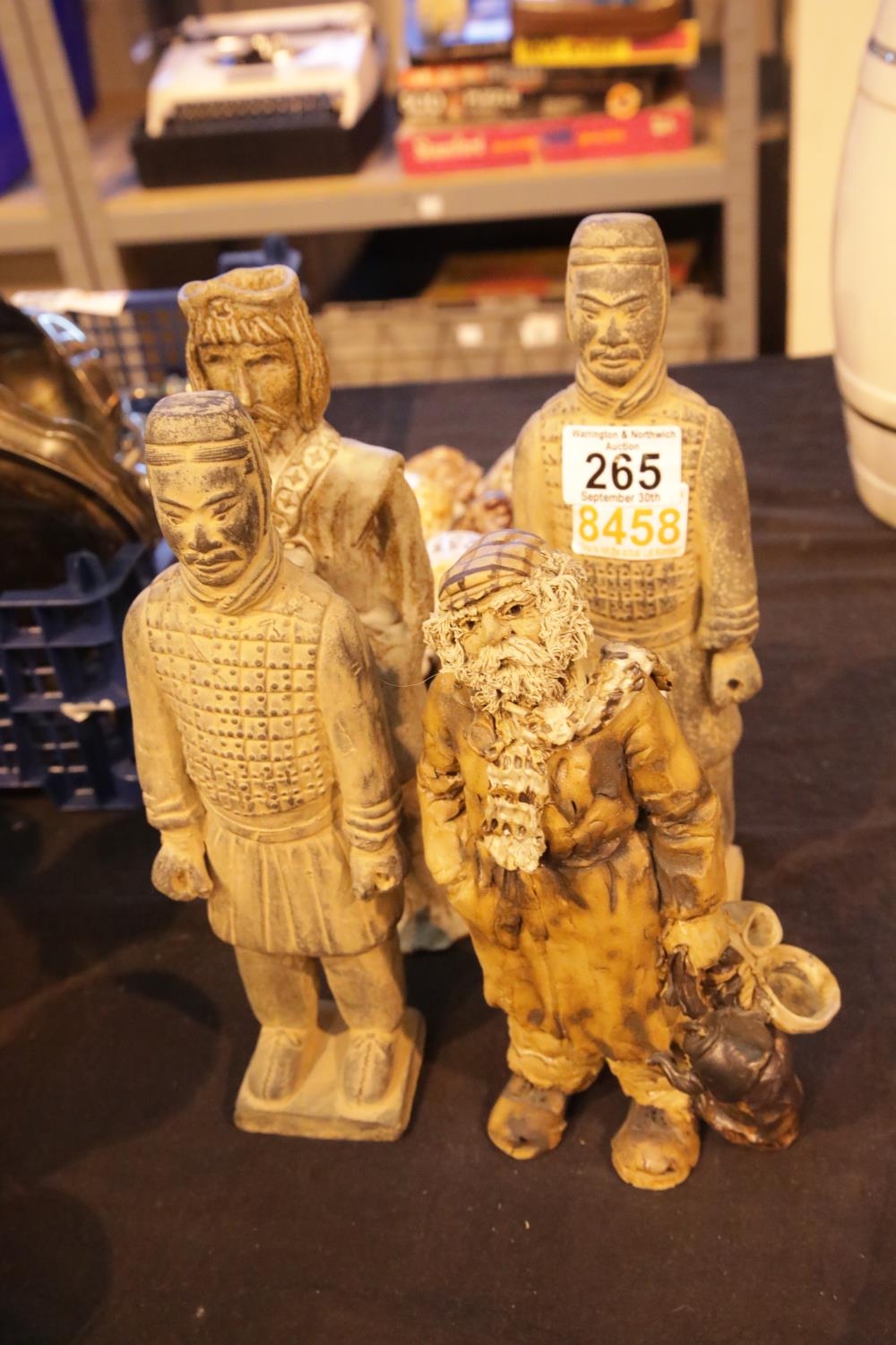 Three Terracotta Warriors, H: 28 cm. Not available for in-house P&P.