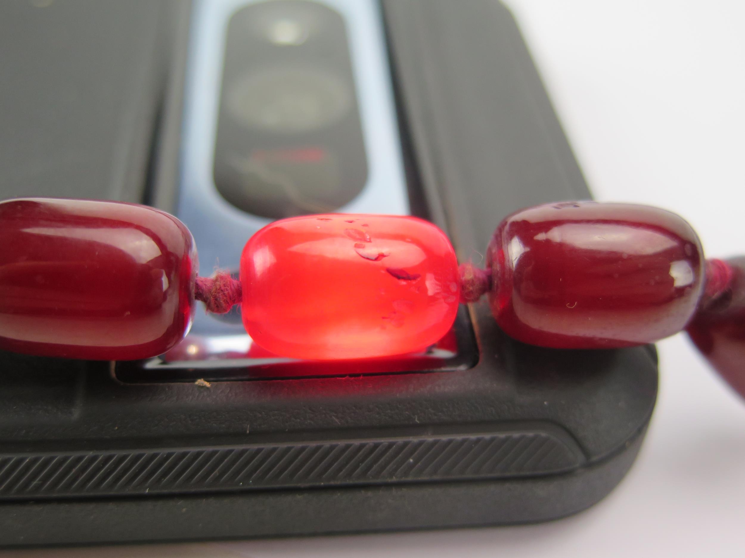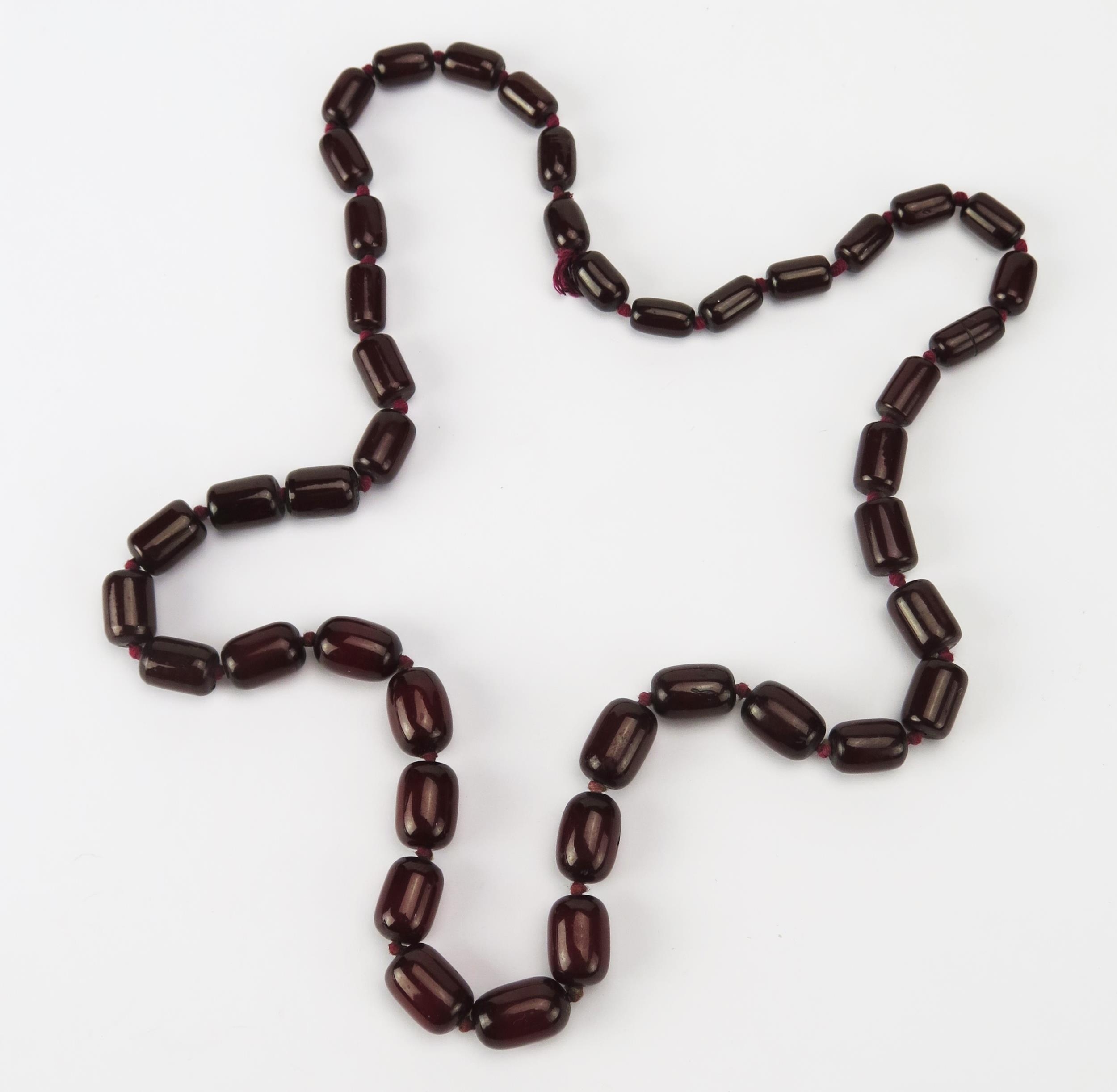 A Faux Cherry Amber Bead Necklace, c. 80cm, largest bead c. 18.7x12.2mm, 59.94g