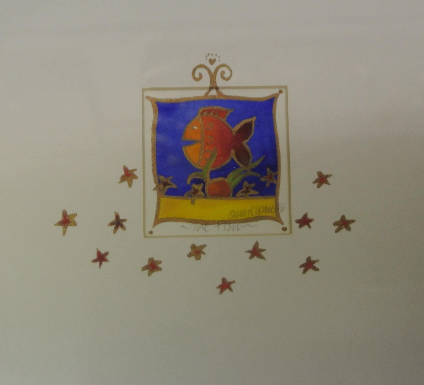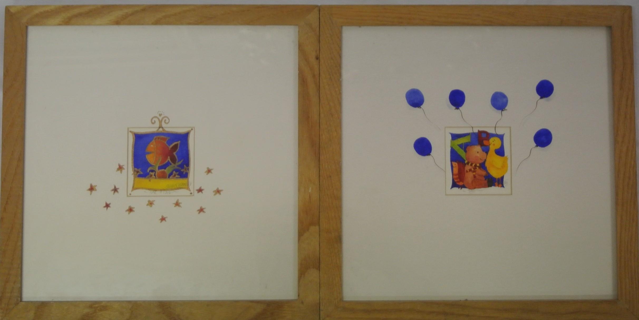 Susan O'Doherty 'The Fish' & 'Teddy' a pair of watercolours 6x6cm each signed