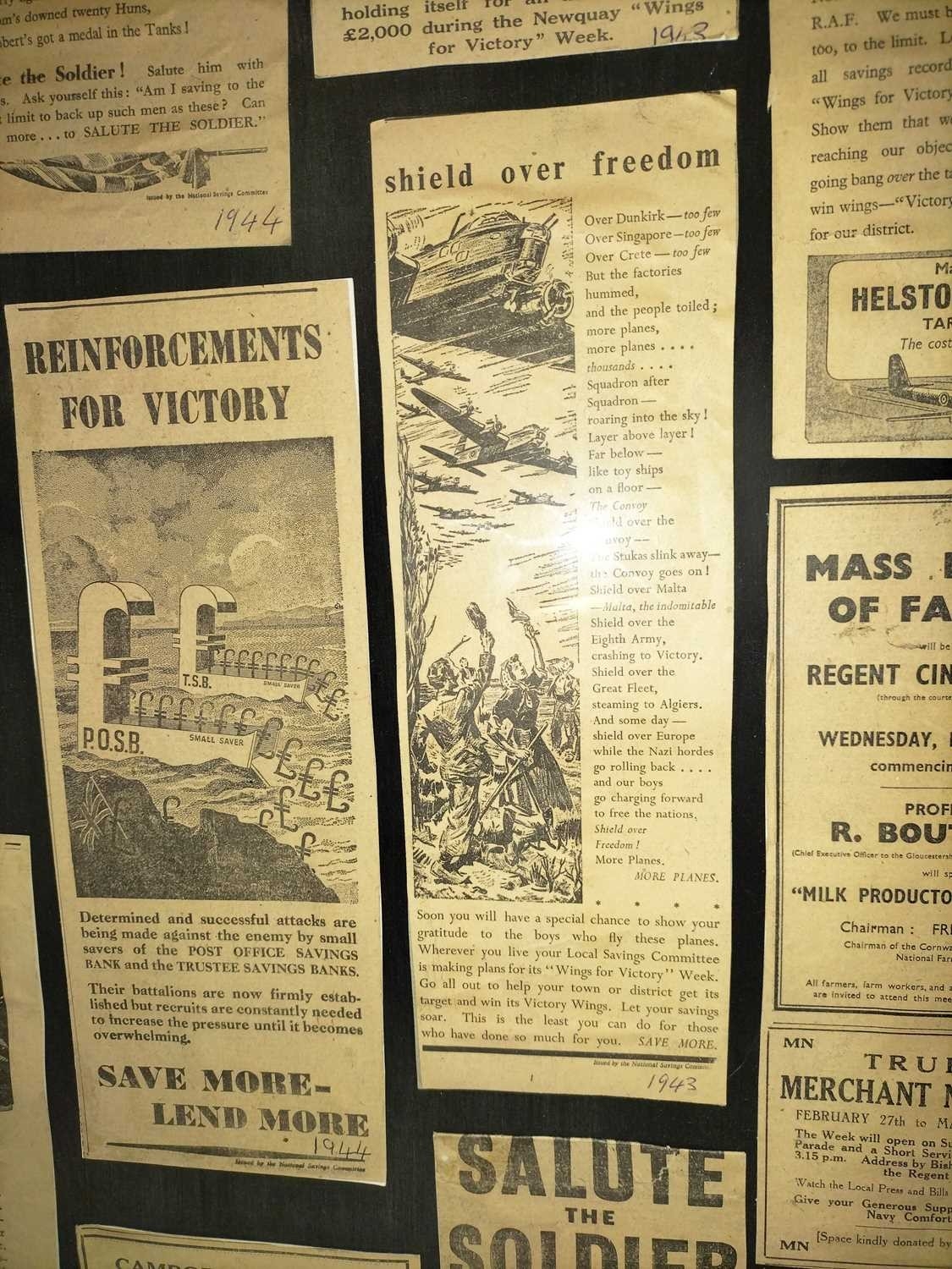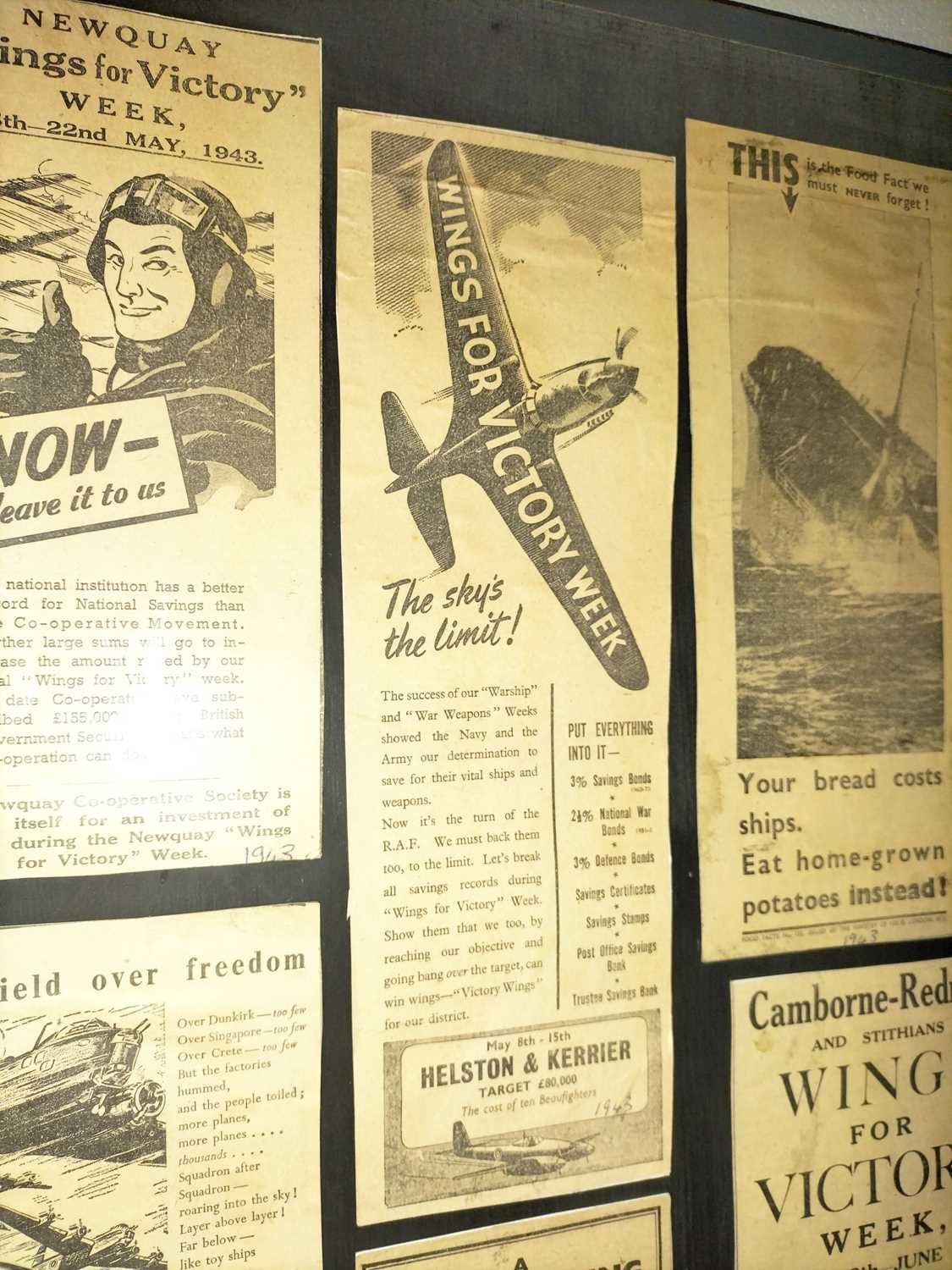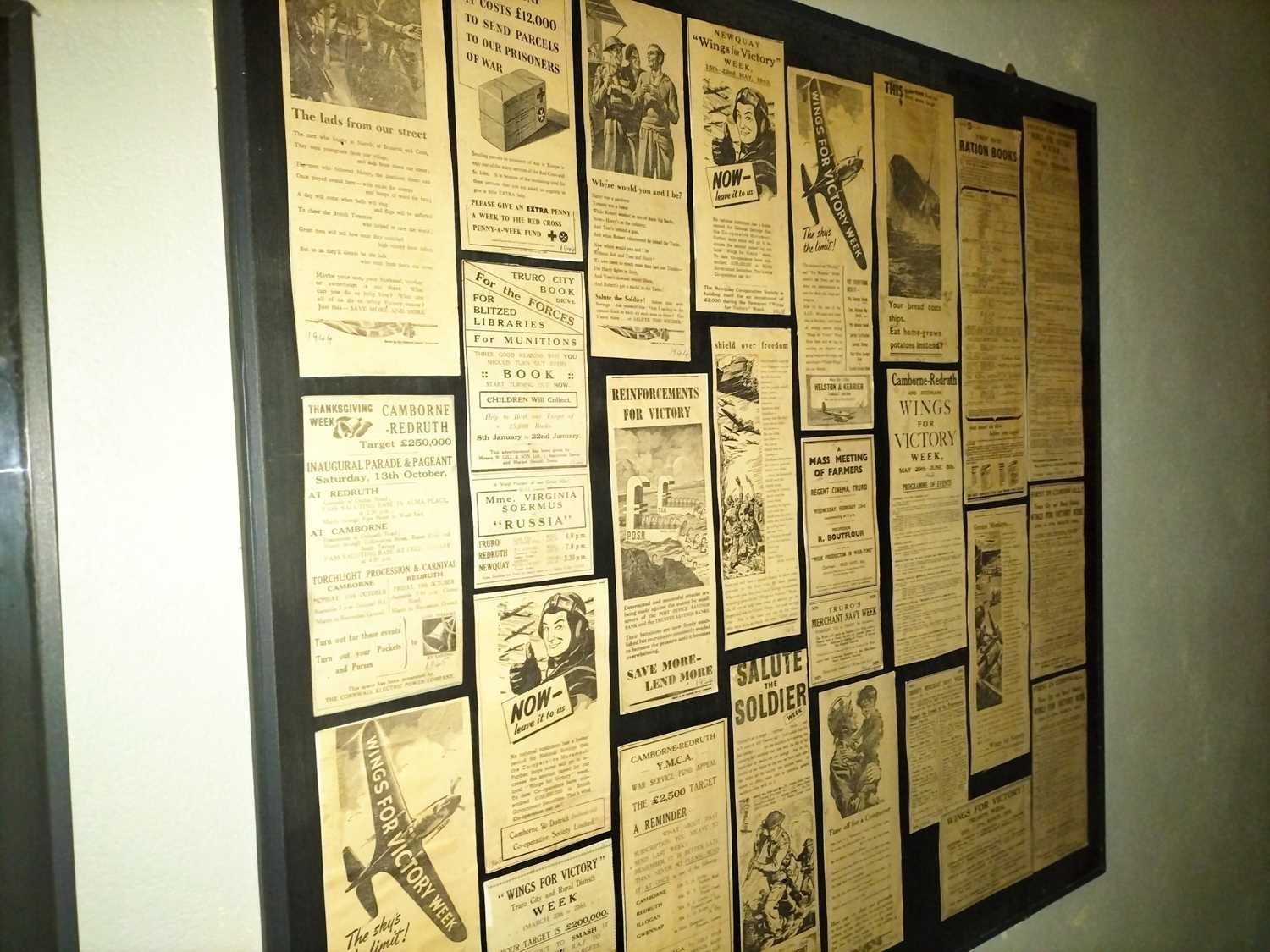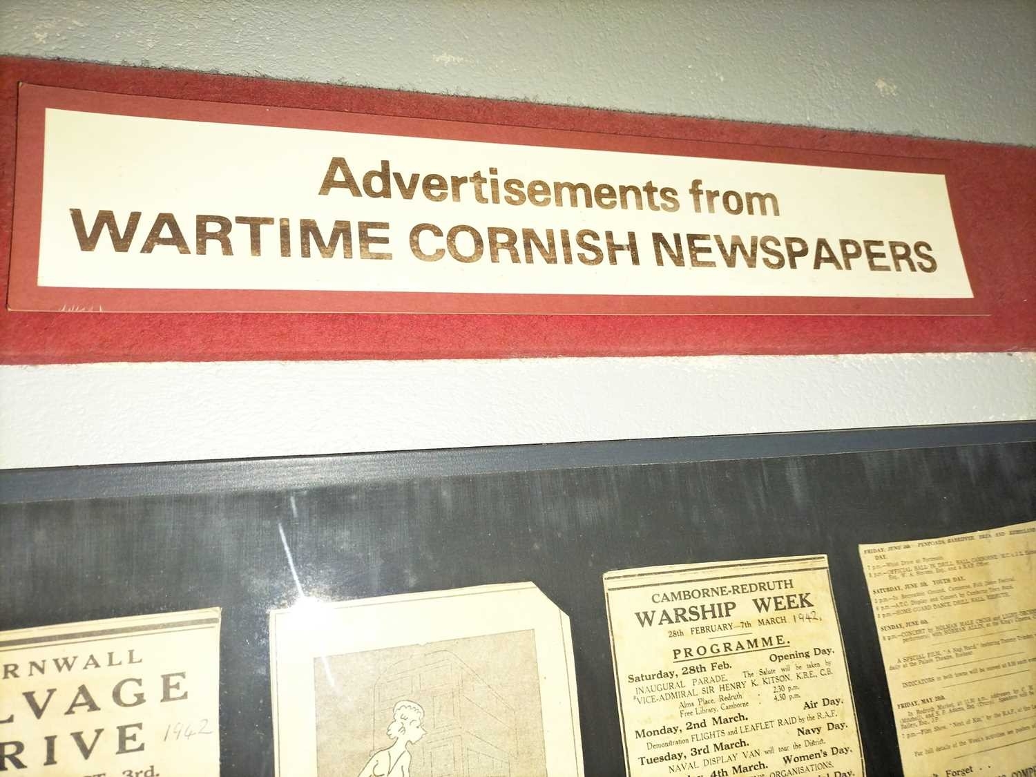 ± Britain in the Blitz Press cuttings Three boards of press cuttings "advertisements from Wartime Cornish Newspapers" - This lot will be subject to an additional VAT charge of 20% on the hammer price