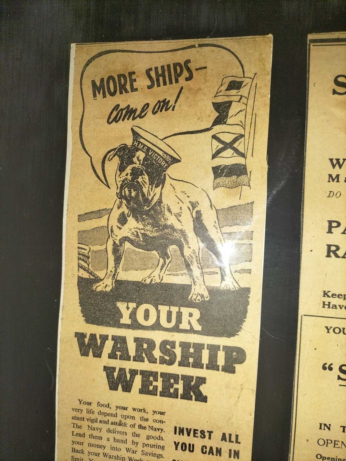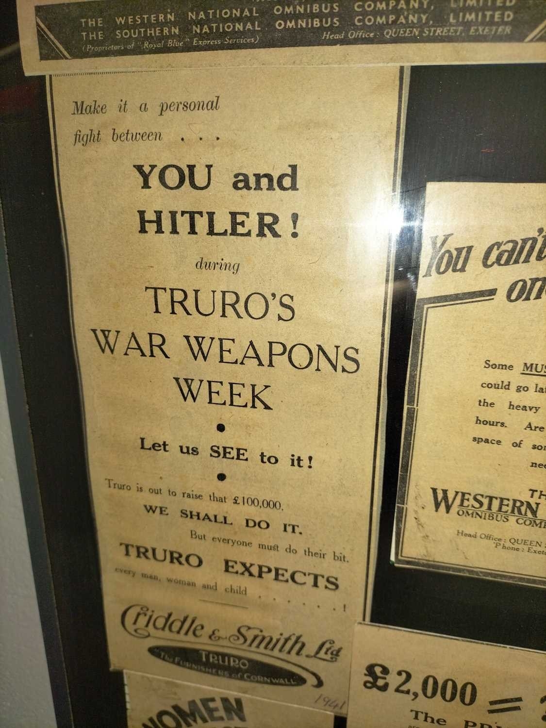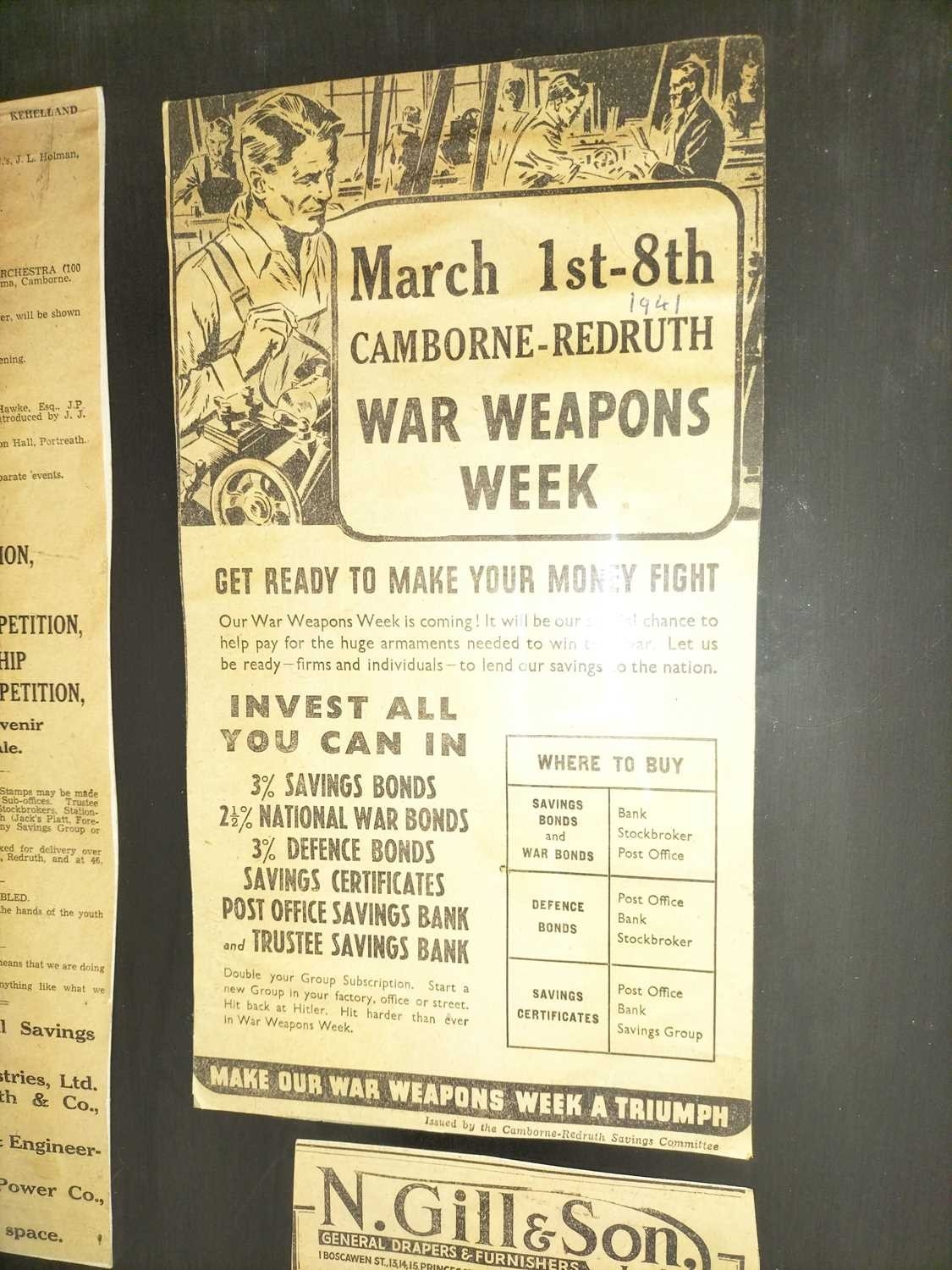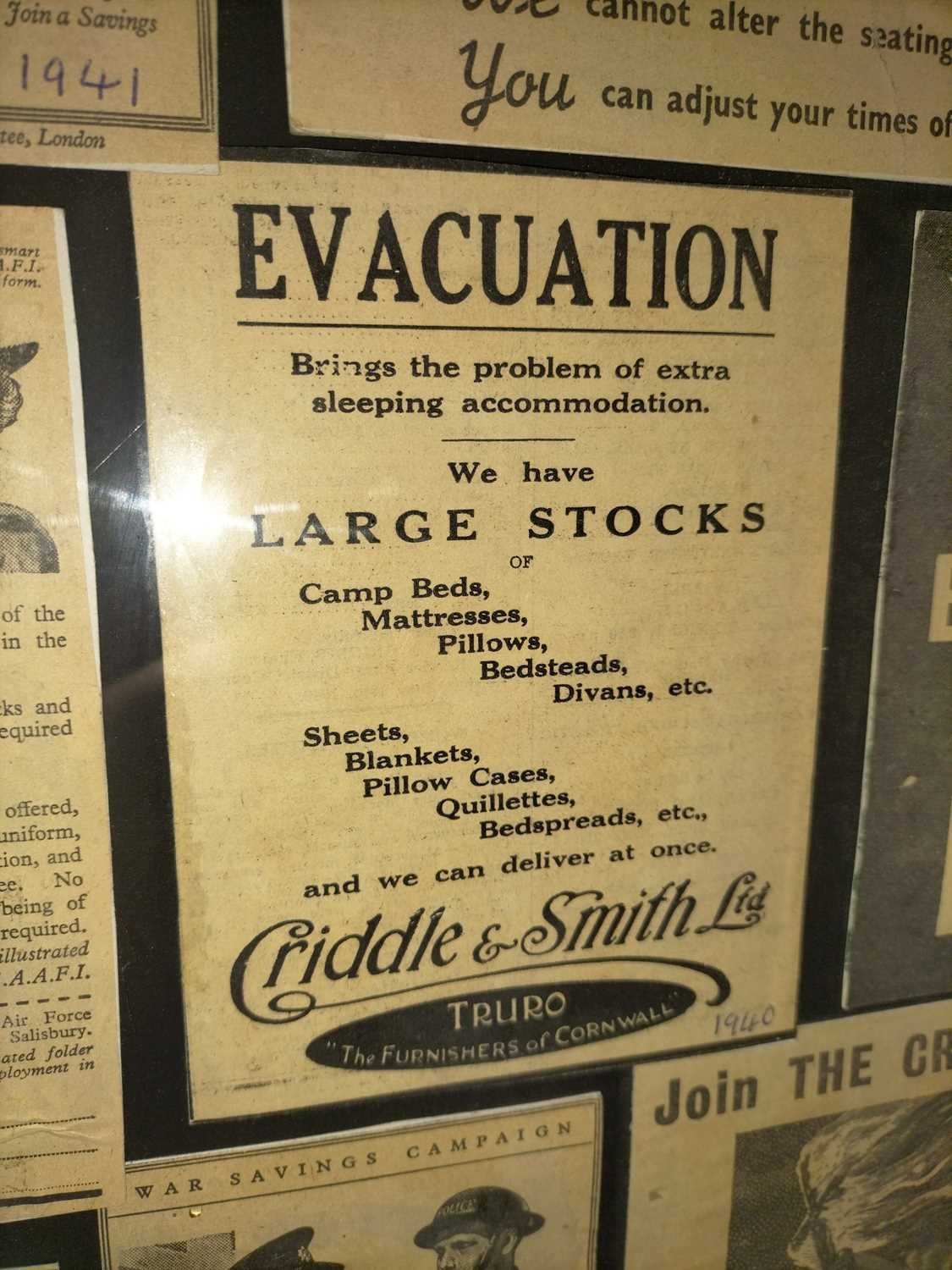 ± Britain in the Blitz Press cuttings Three boards of press cuttings "advertisements from Wartime Cornish Newspapers" - This lot will be subject to an additional VAT charge of 20% on the hammer price