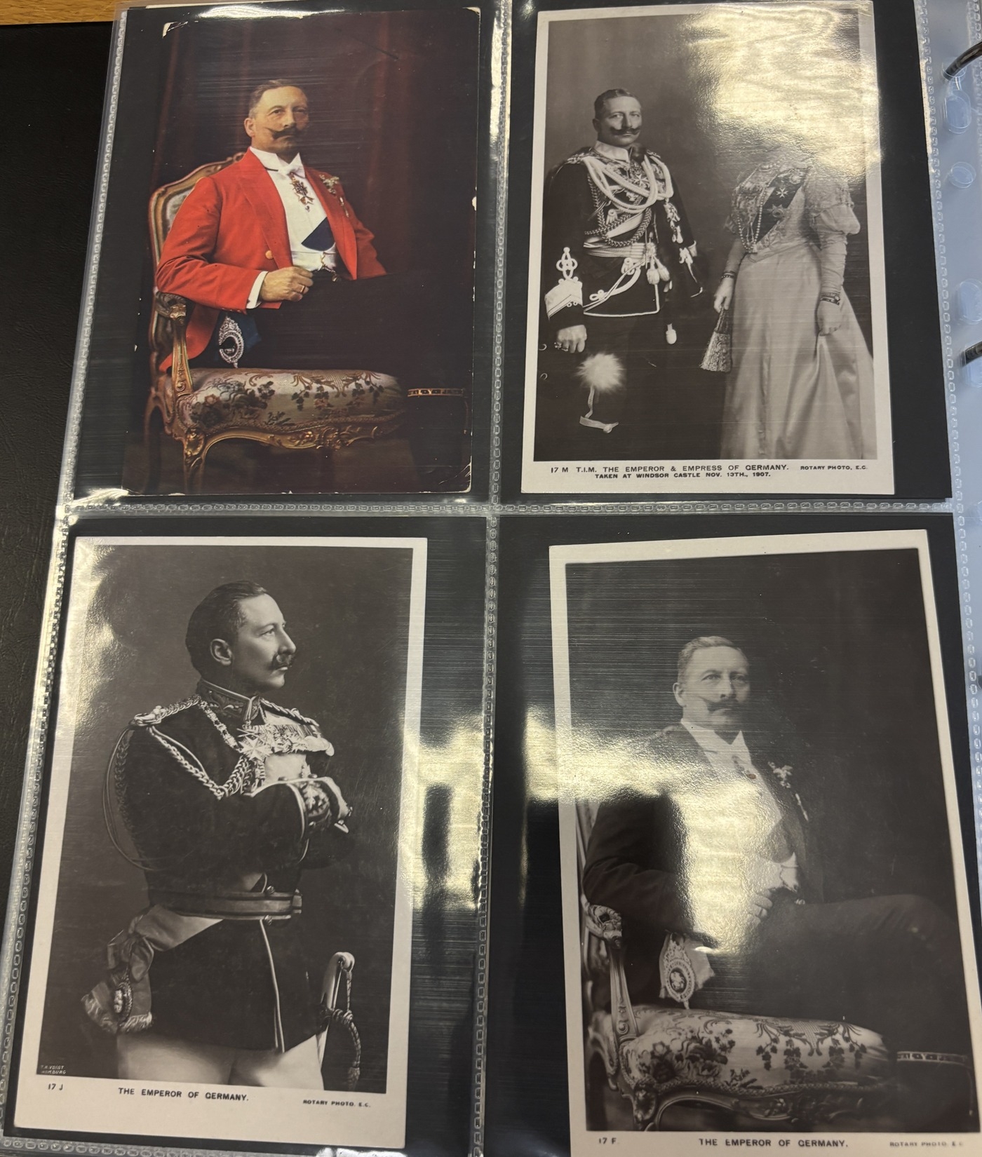 Royalty. Germany. Coln. in 2 modern albums with slipcases, incl. artist drawn, ptd and R.P's with Willhelm II in exile, crown-prince Willhelm of Prussia, Family portraits, commemorative and memorial cards. Qty. 545. (2V)