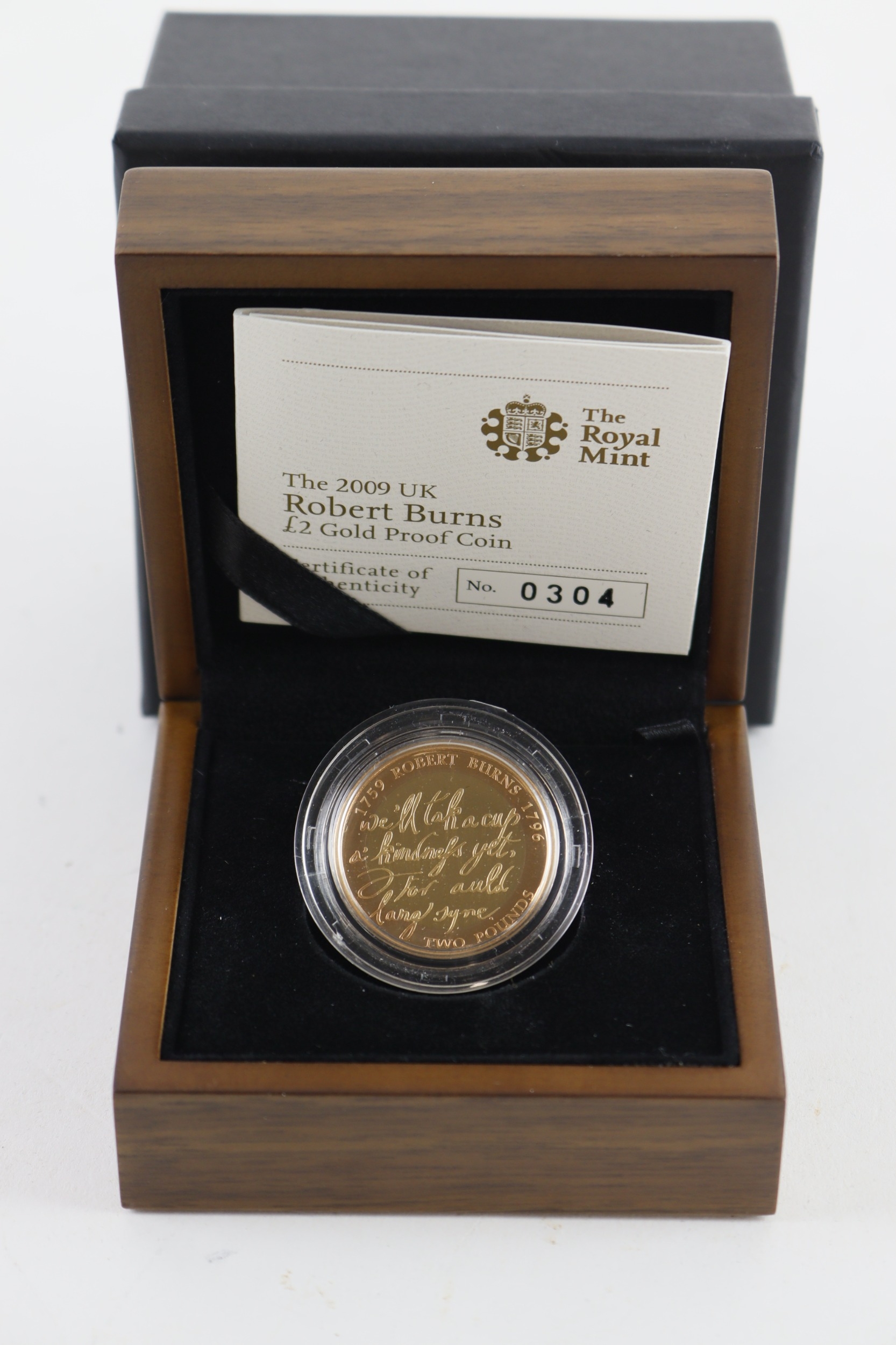Two Pounds 2009 "Robert Burns" gold proof FDC boxed as issued