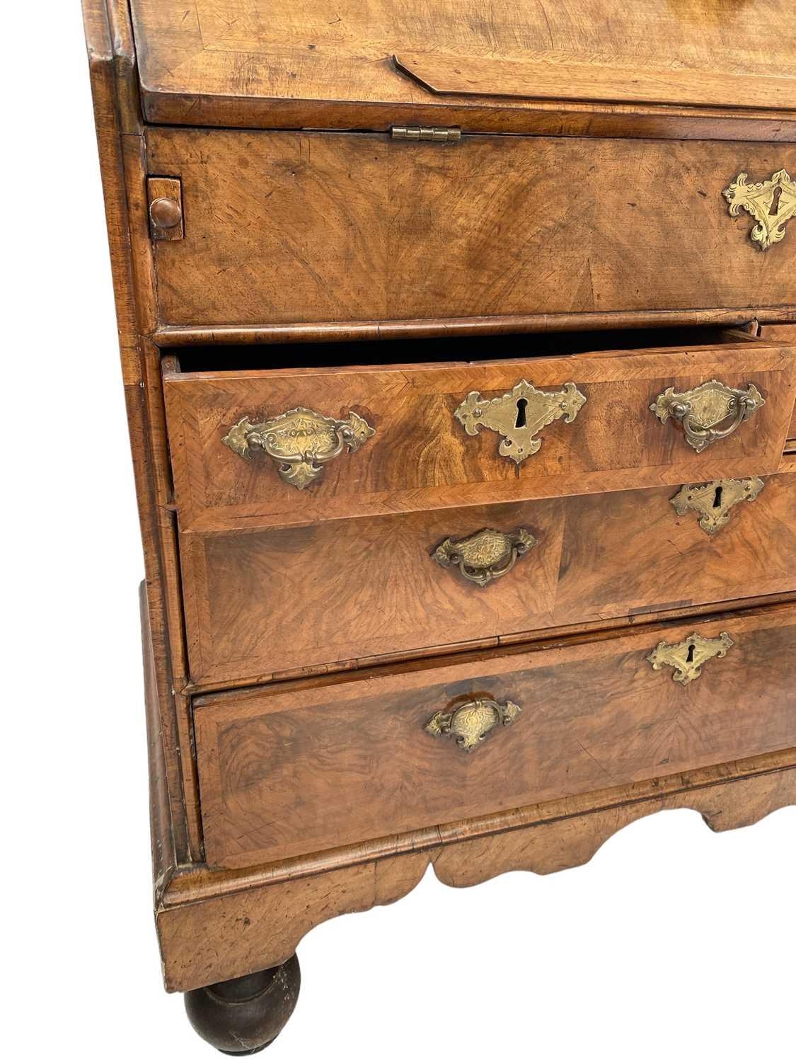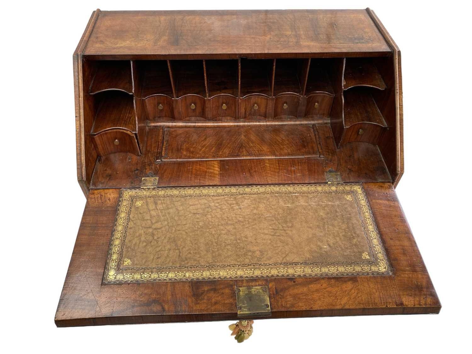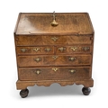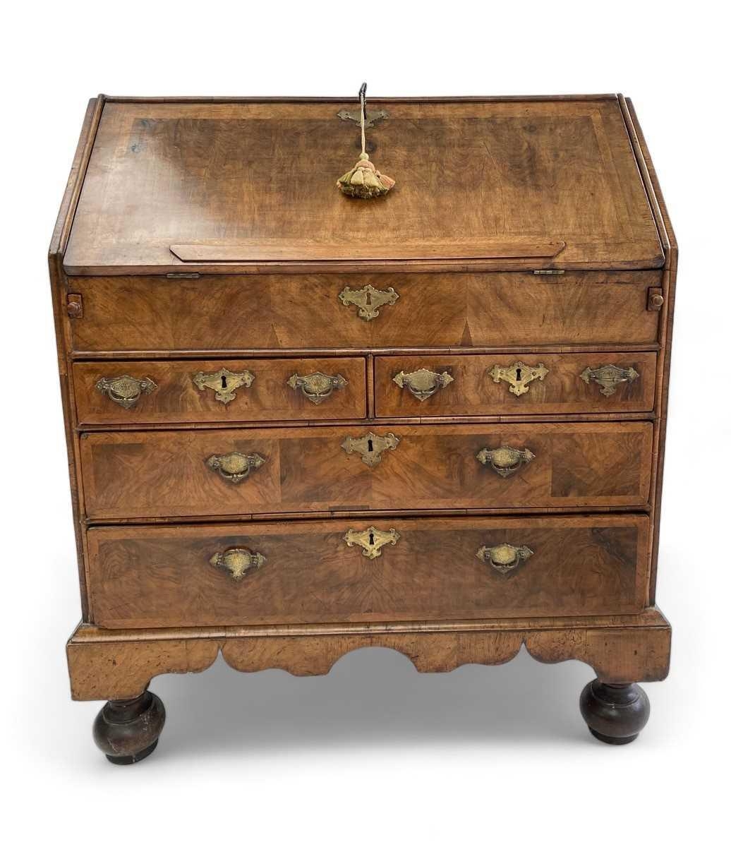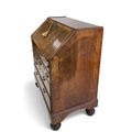 A George I walnut bureau With figured veneers and herring-bone cross-banding, 107cm high, 92cm wide and 53cm deep