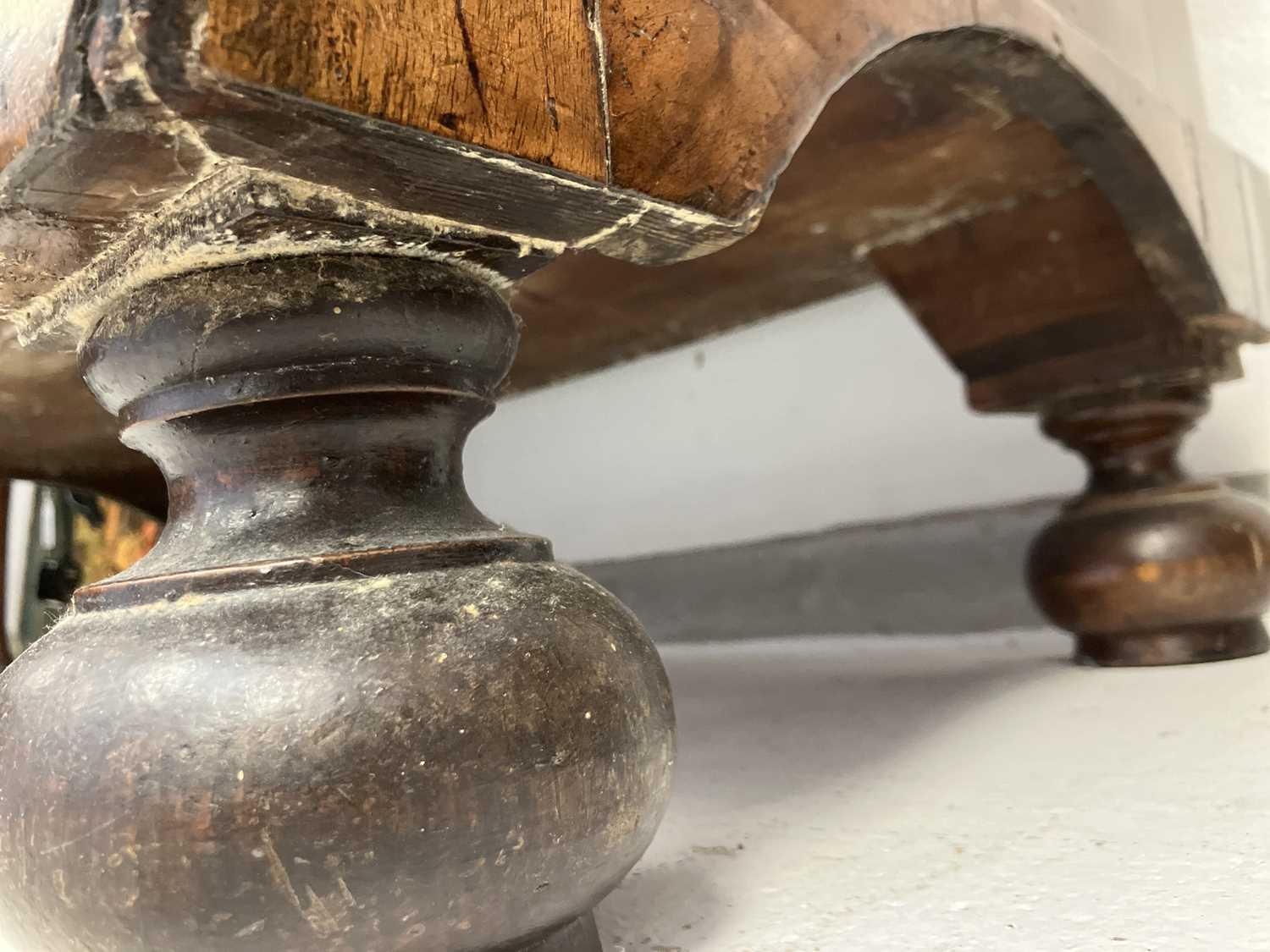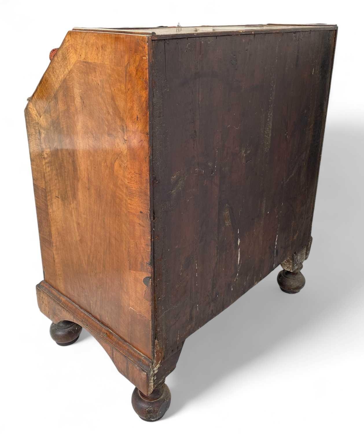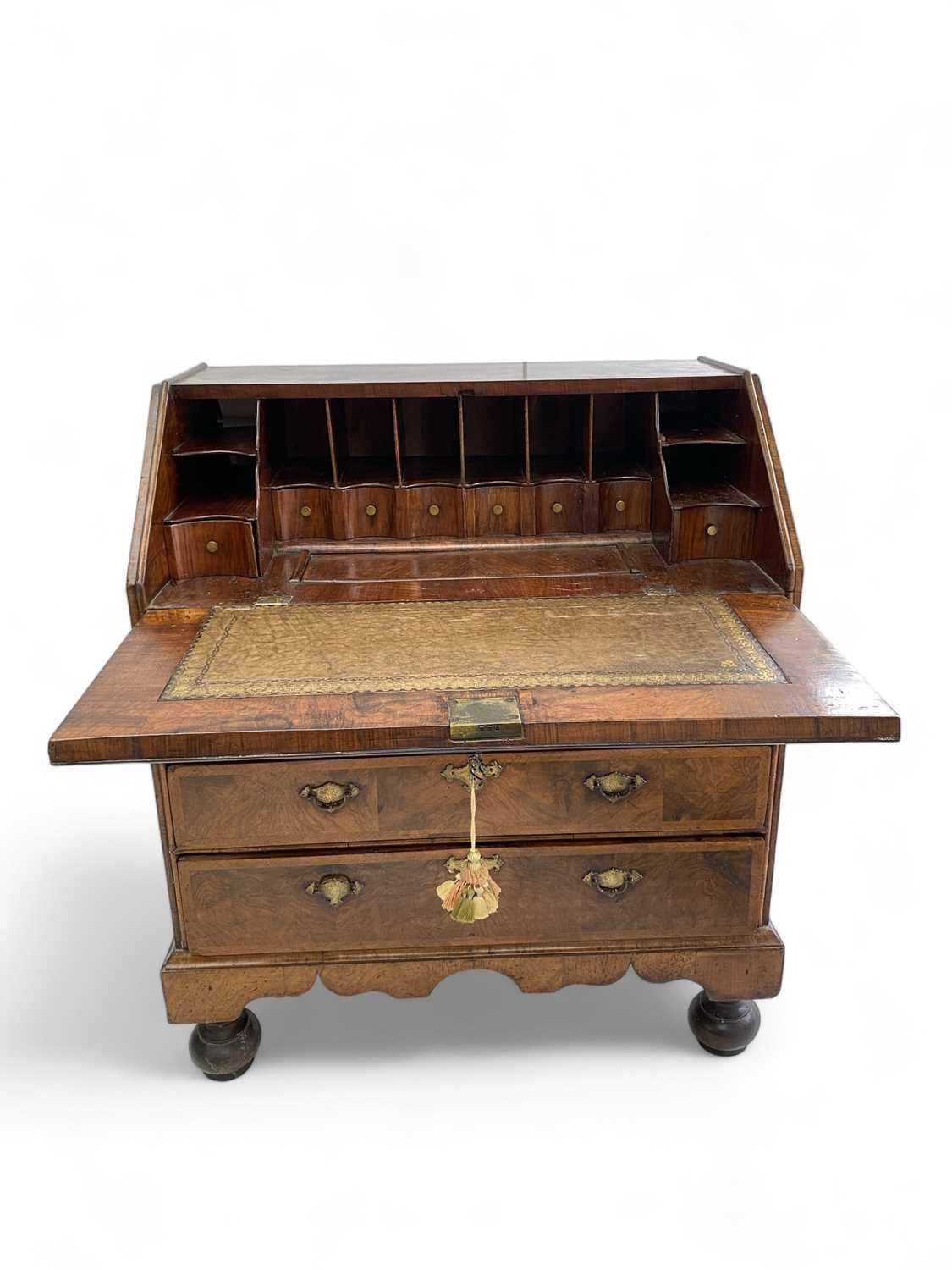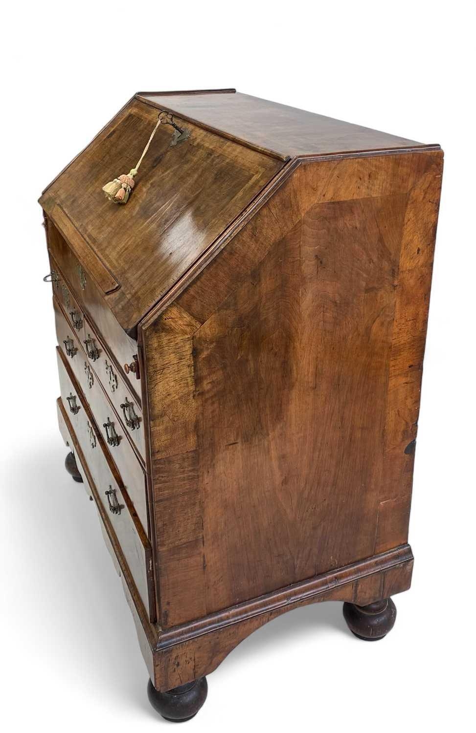 A George I walnut bureau With figured veneers and herring-bone cross-banding, 107cm high, 92cm wide and 53cm deep
