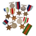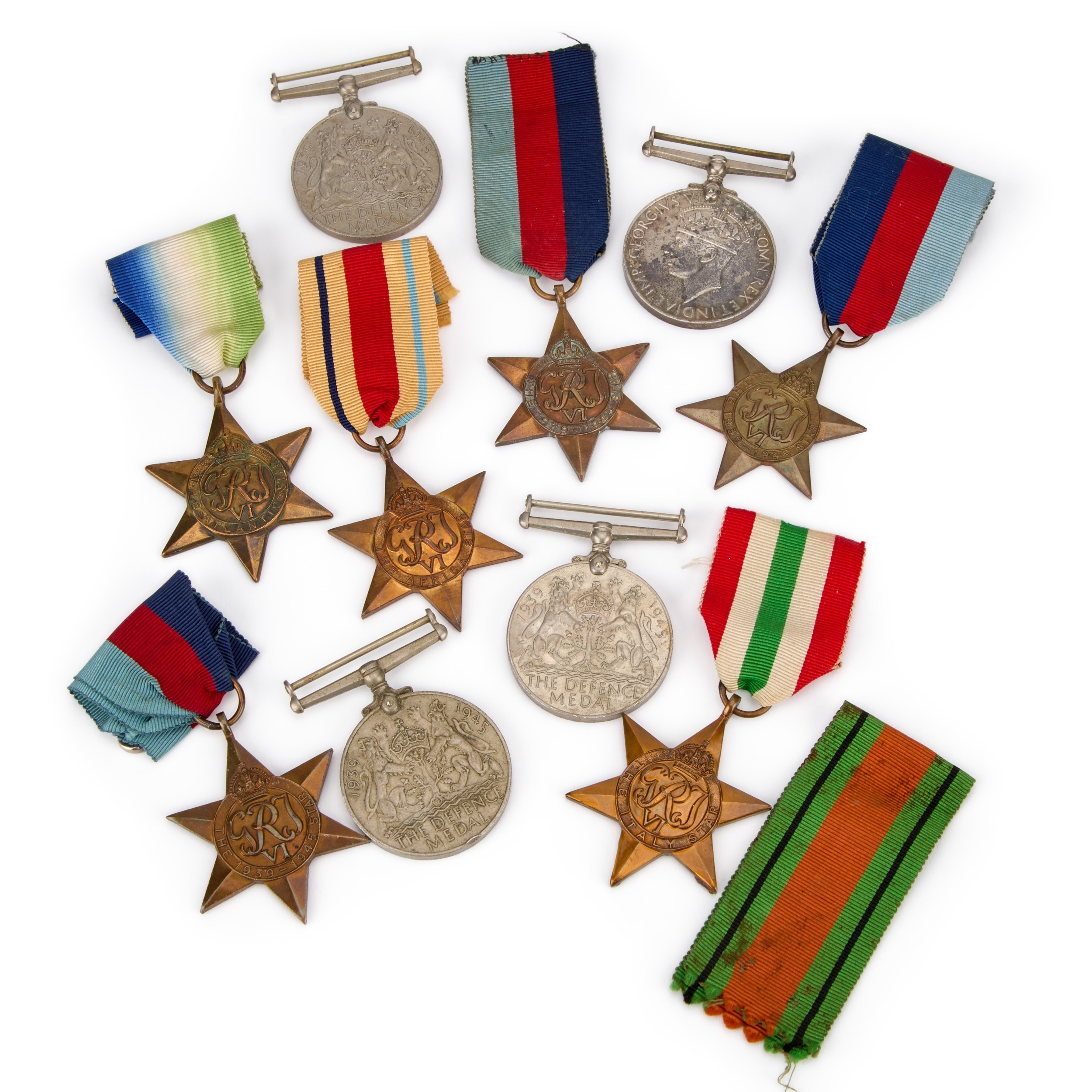 comprising three Defence Medals, one War Medal, three 1939-1945 Star medals, an Africa Star, Italy Star and an Atlantic Star. (10)