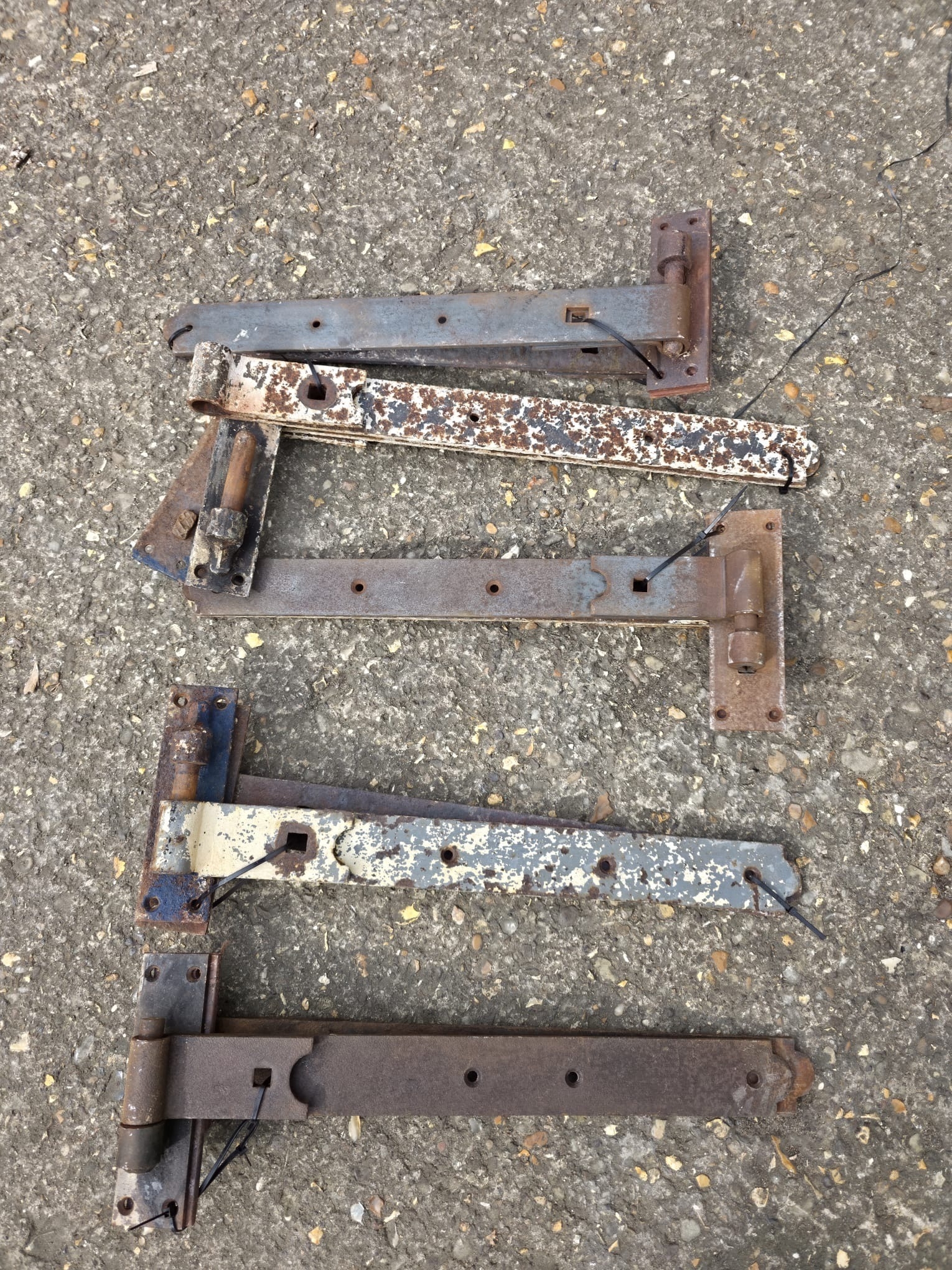 Collection of Very Heavy Vintage Iron Barn Door Hinges