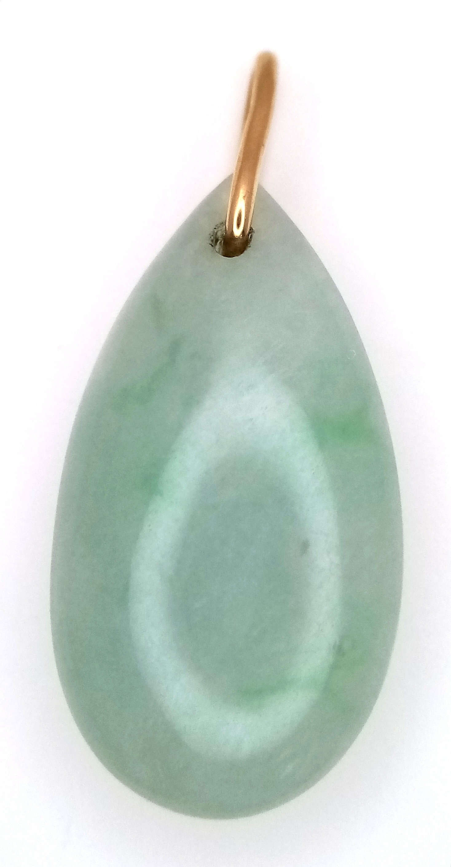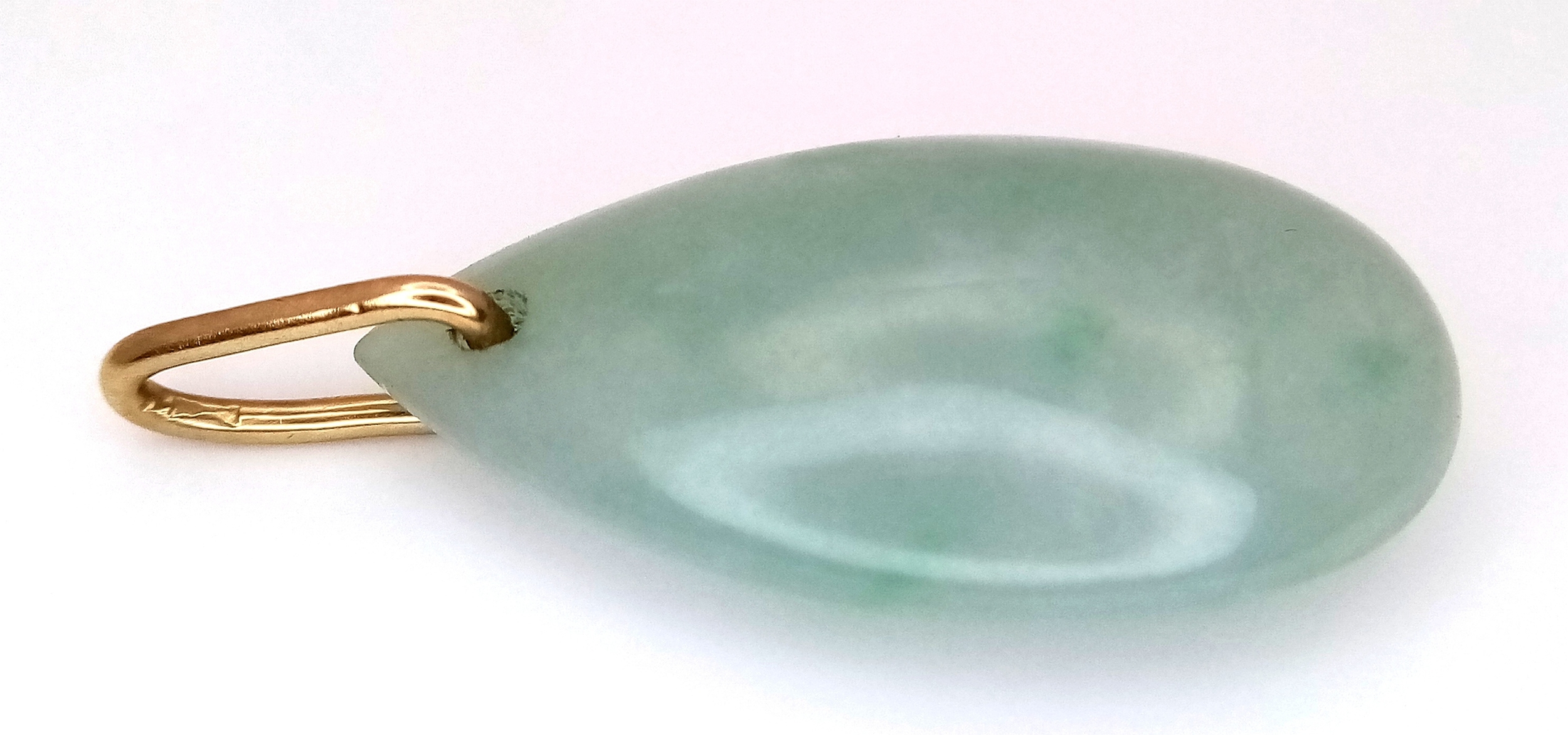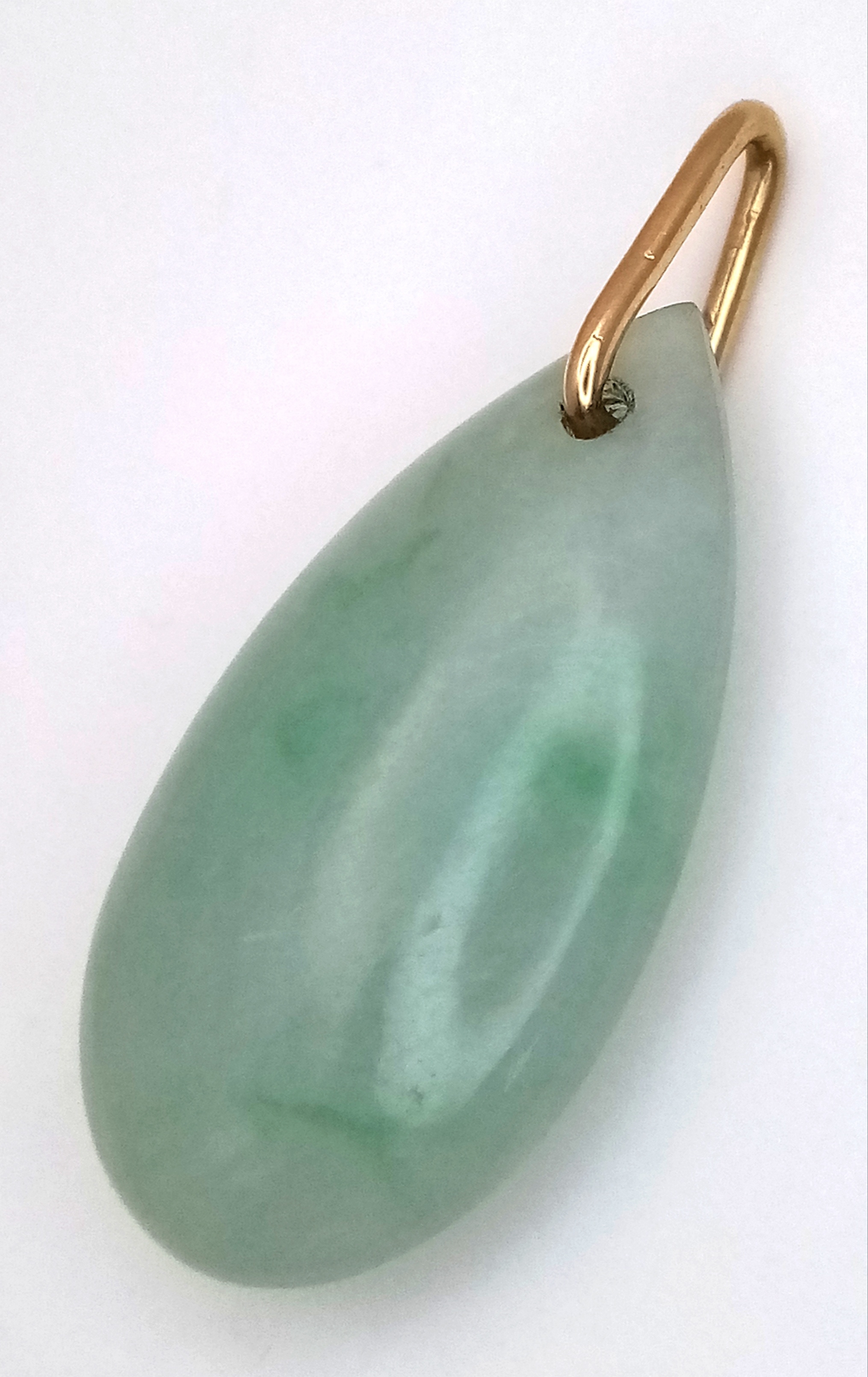 A Pear Shaped jade Pendant with 9K (tests as) Bail. 3cm.