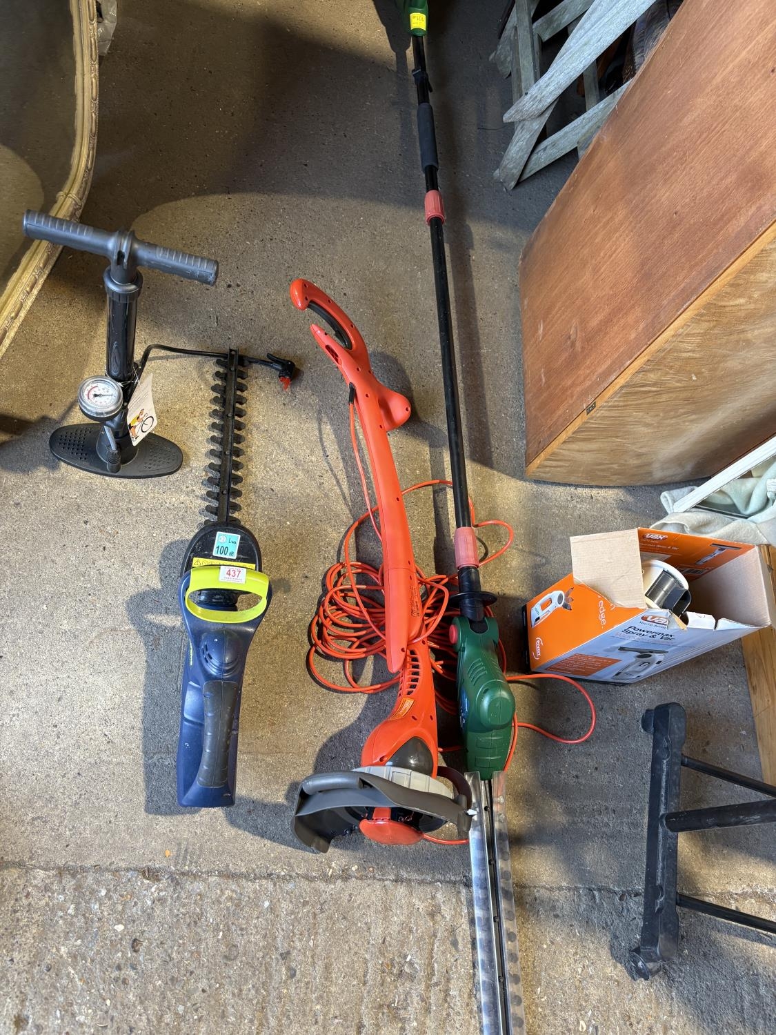 Flymo strimmer, challenge saw, long arm hedger etc