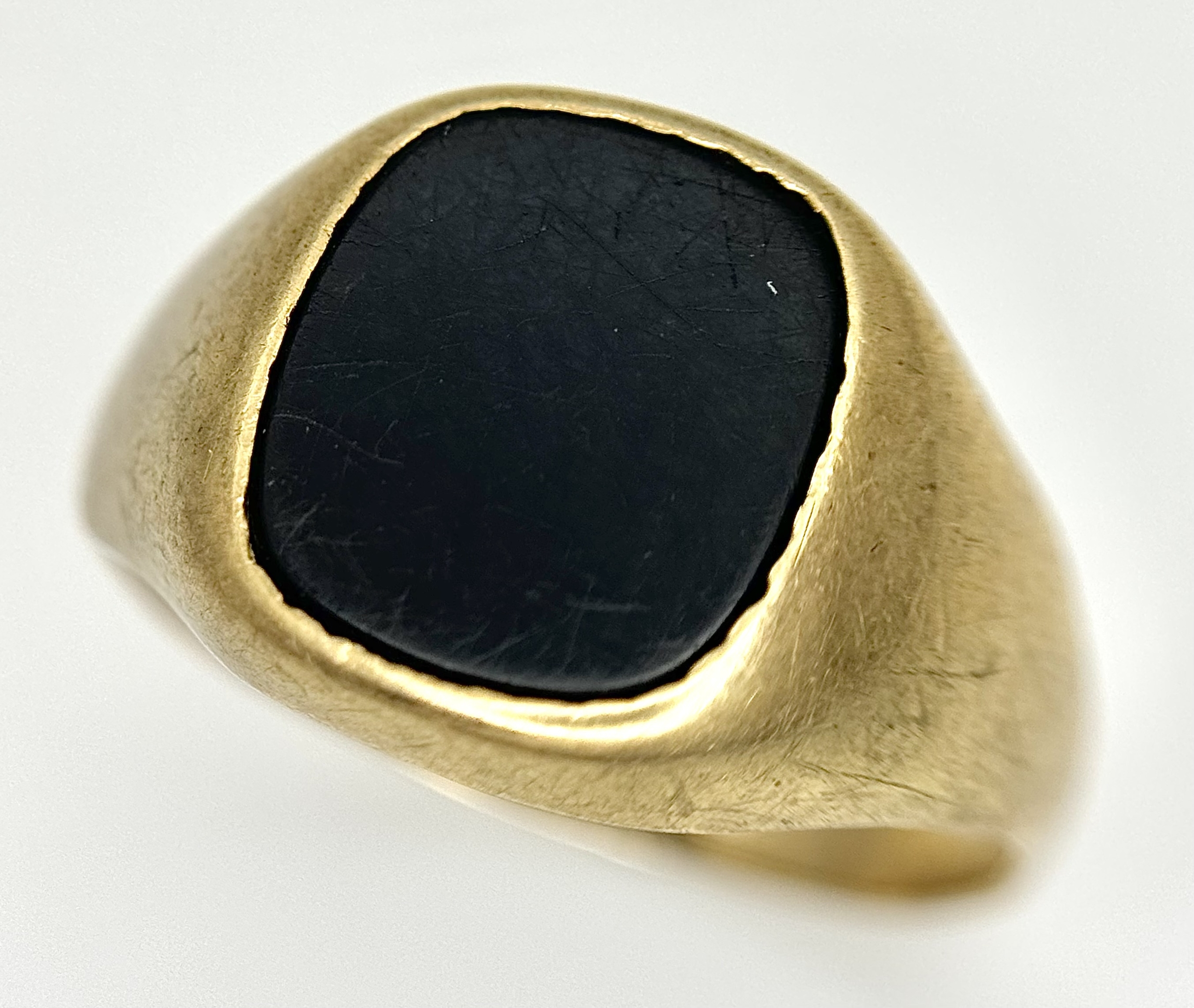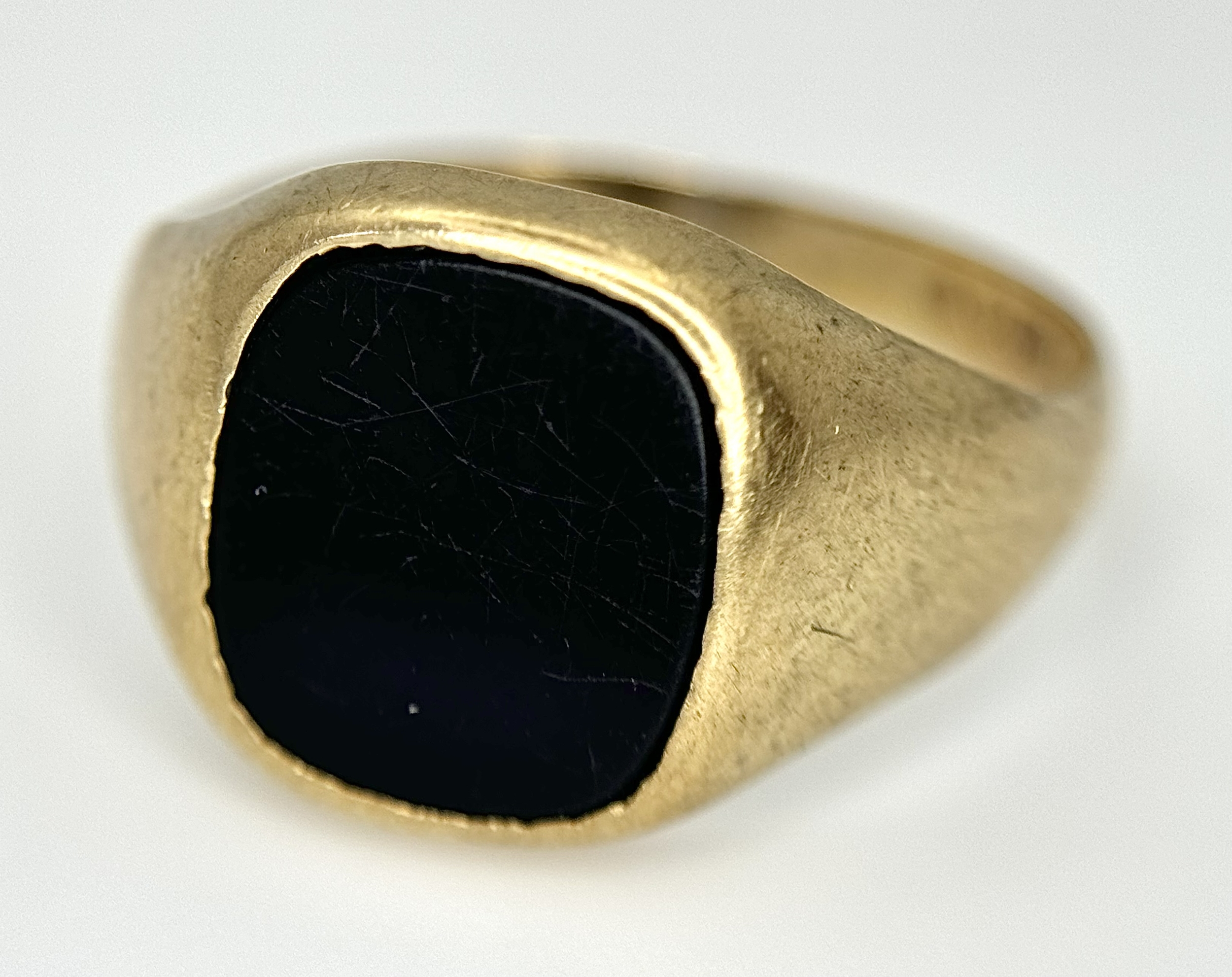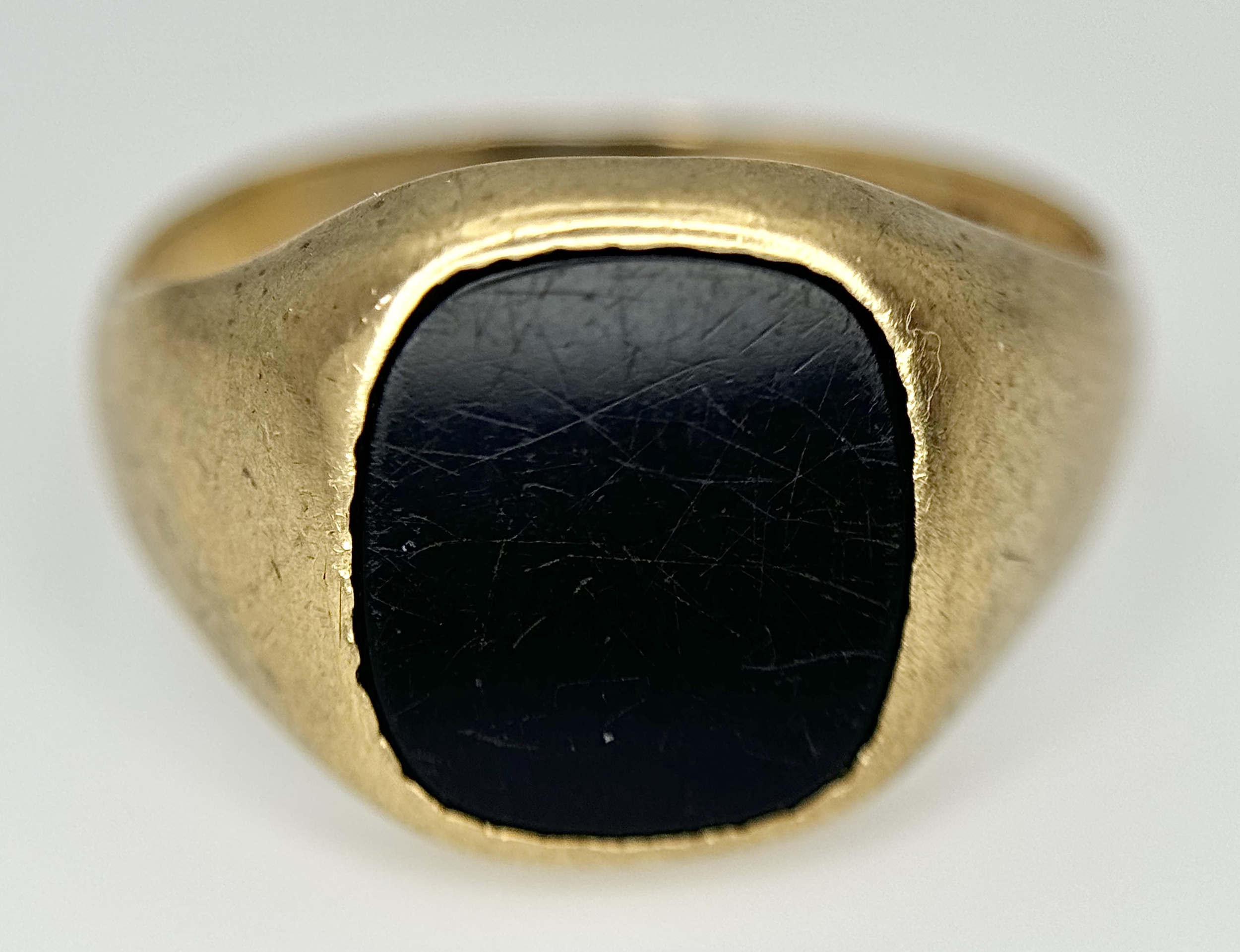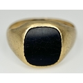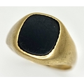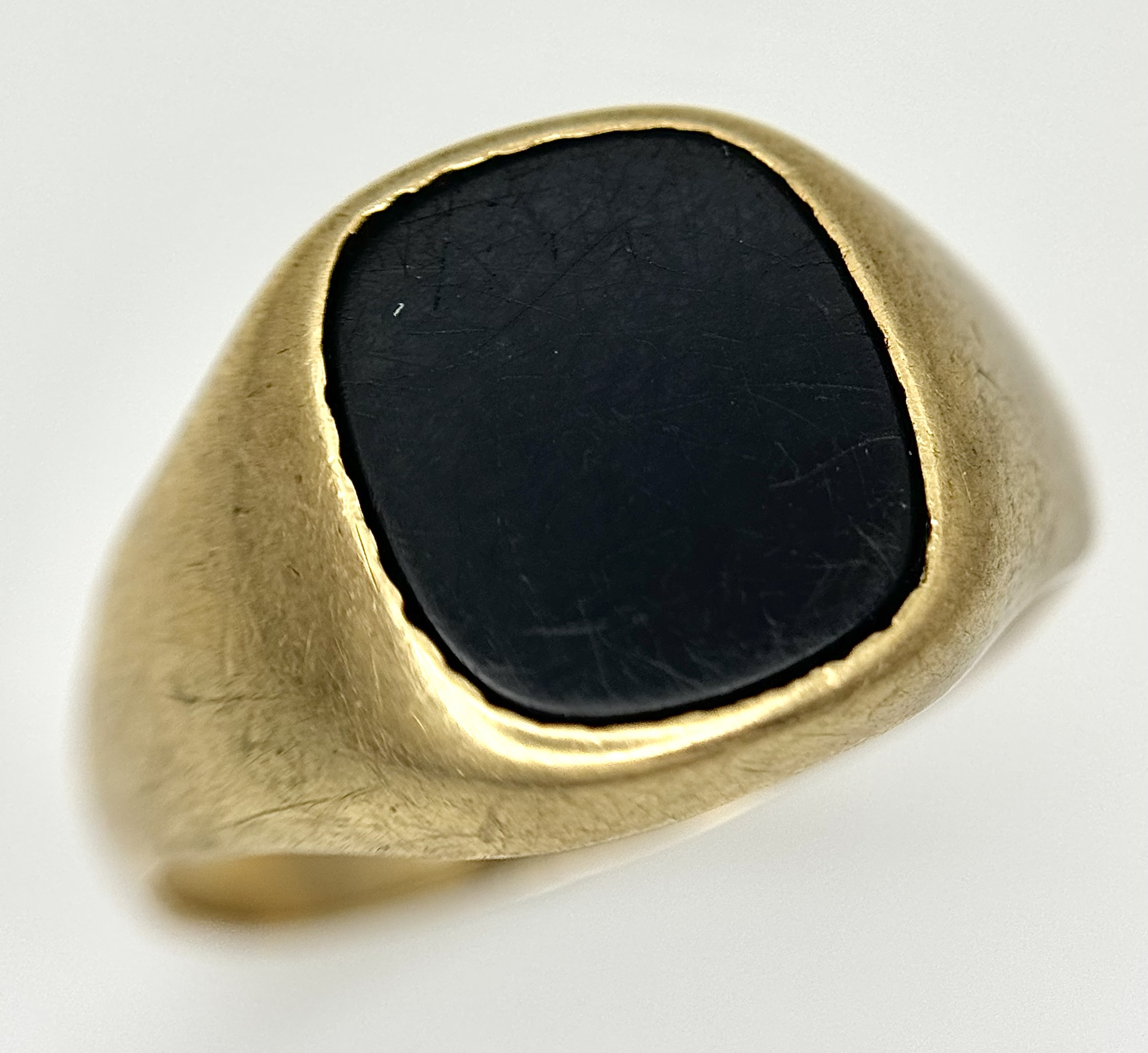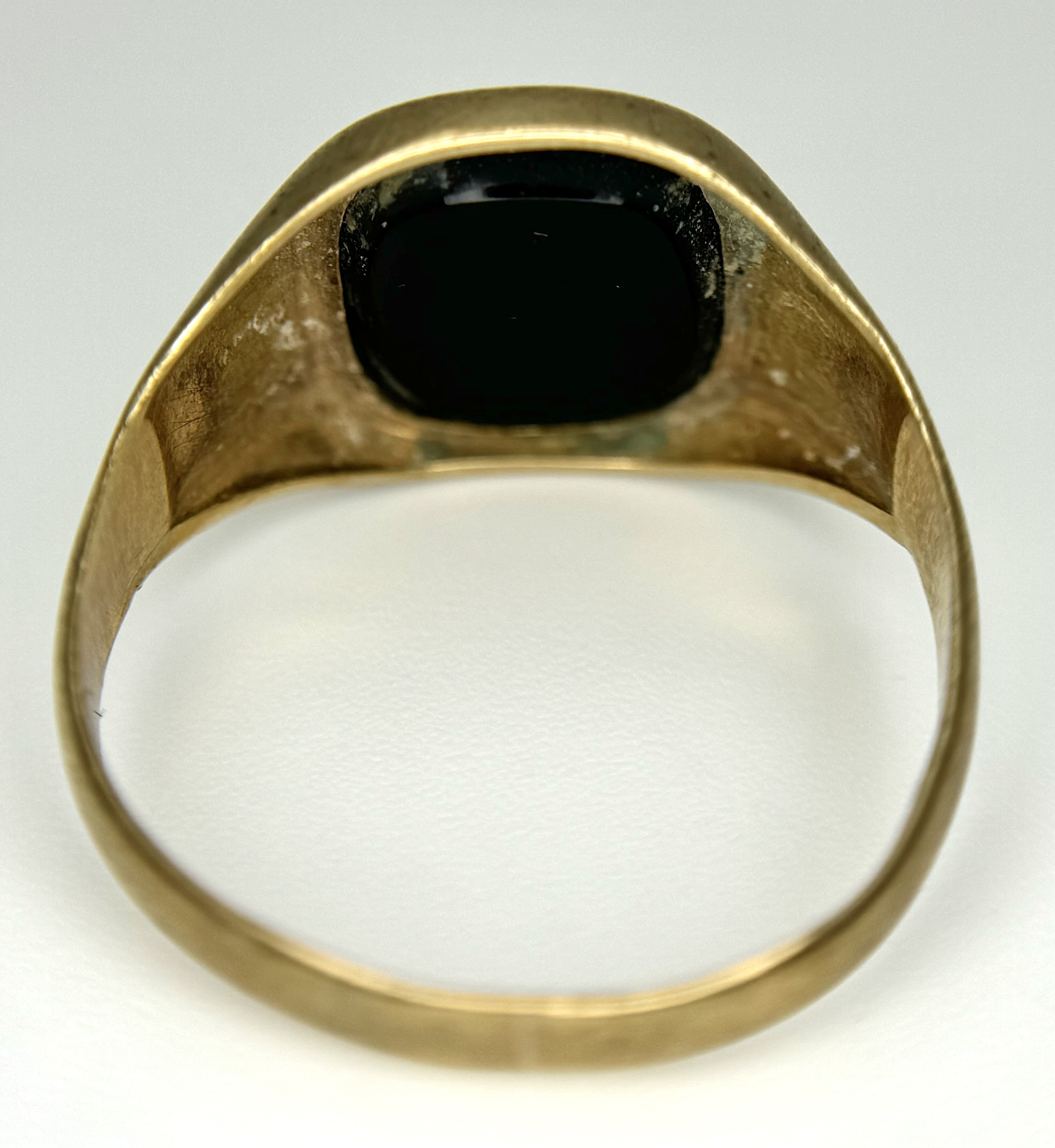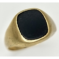 A Vintage 9K Yellow Gold Black Onyx Signet Ring. Size V. 3.4g.