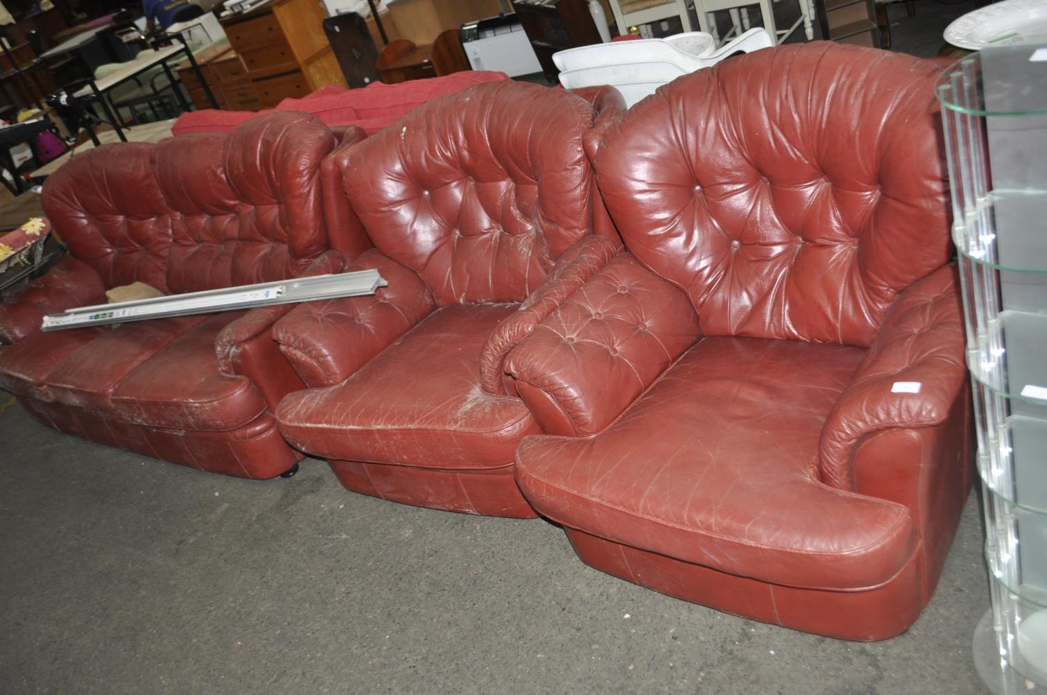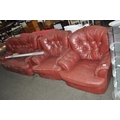 RED LEATHER BUTTON BACKED 3 PIECE SUITE