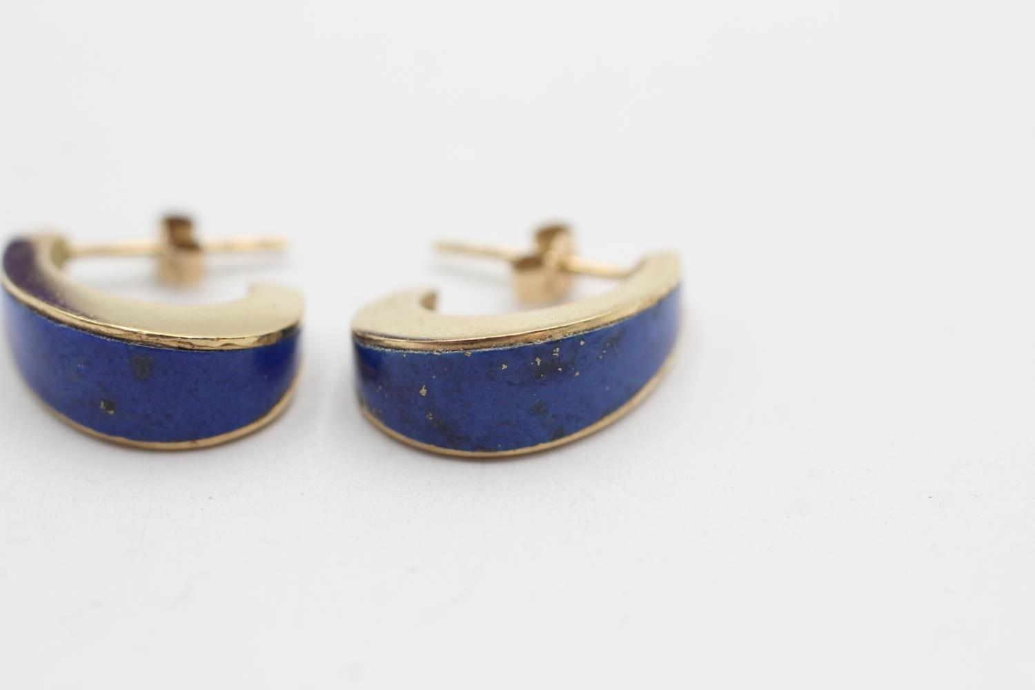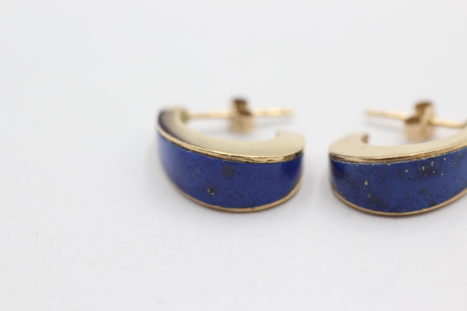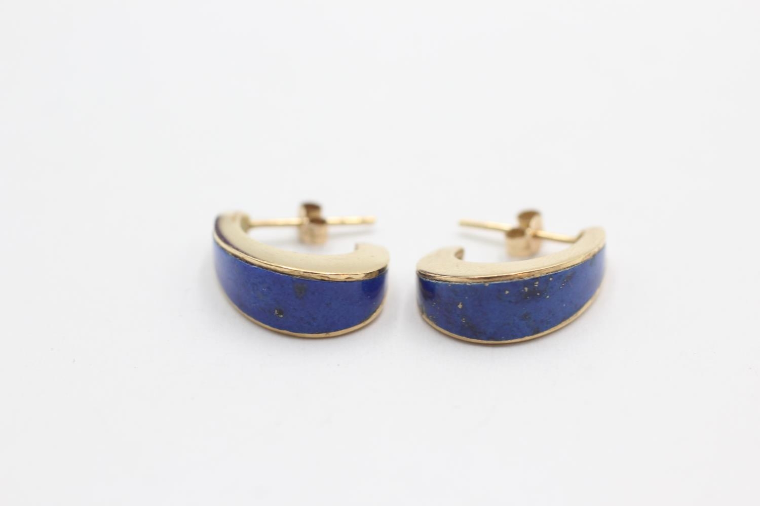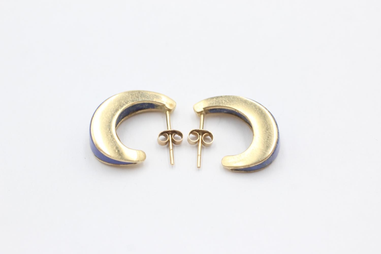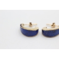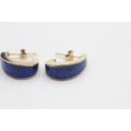 14ct gold lapis lazuli inlay half-hoop earrings (5.1g)