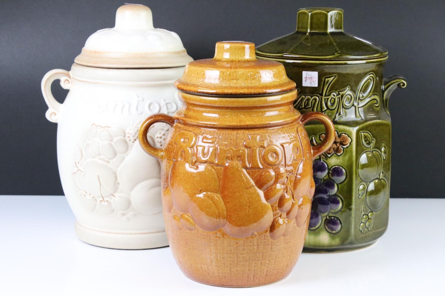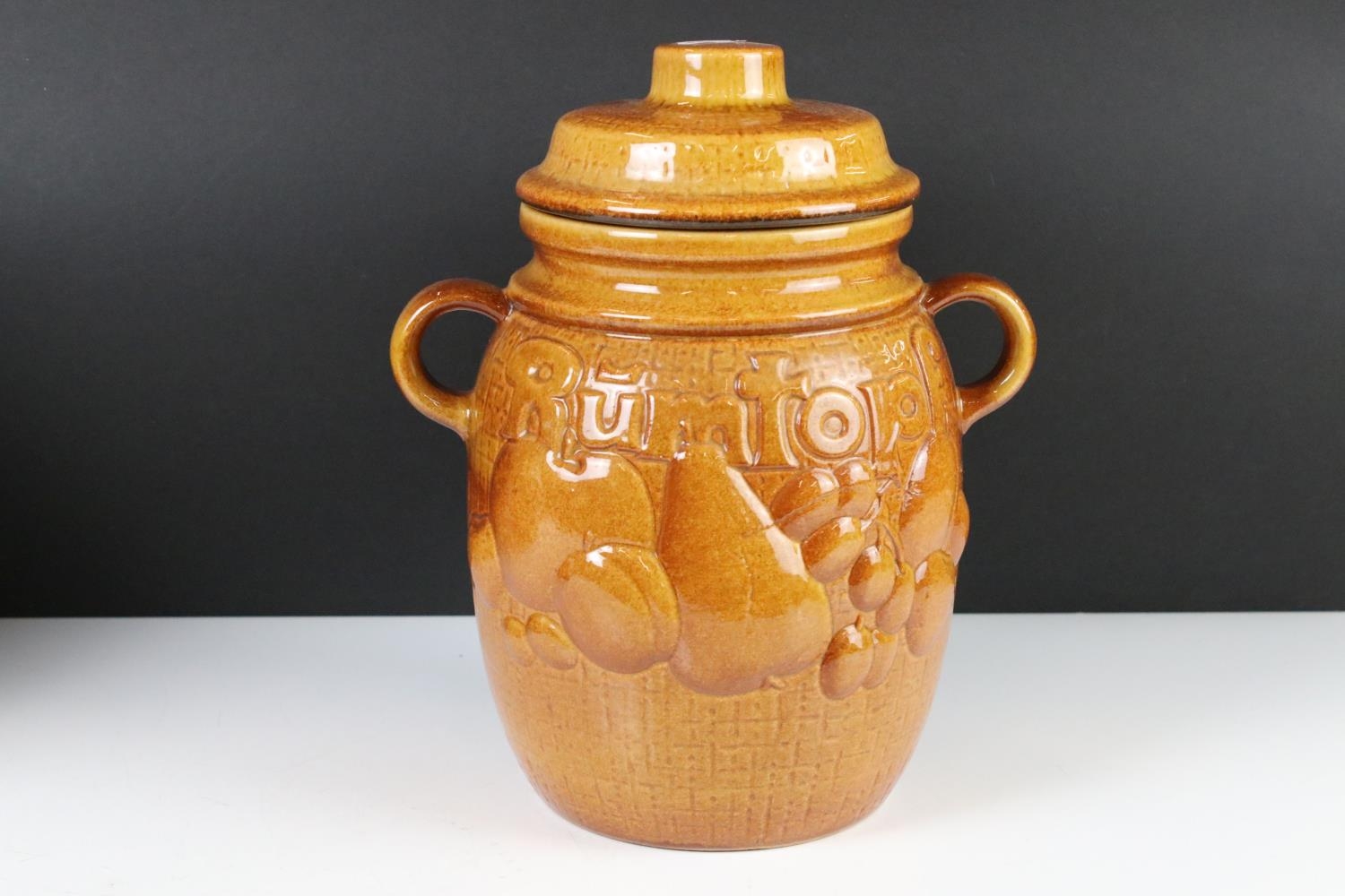 Three West Germany Pottery Rumtopfs with covers, numbers 827-31, 865-37 and 820-28, tallest 32cm