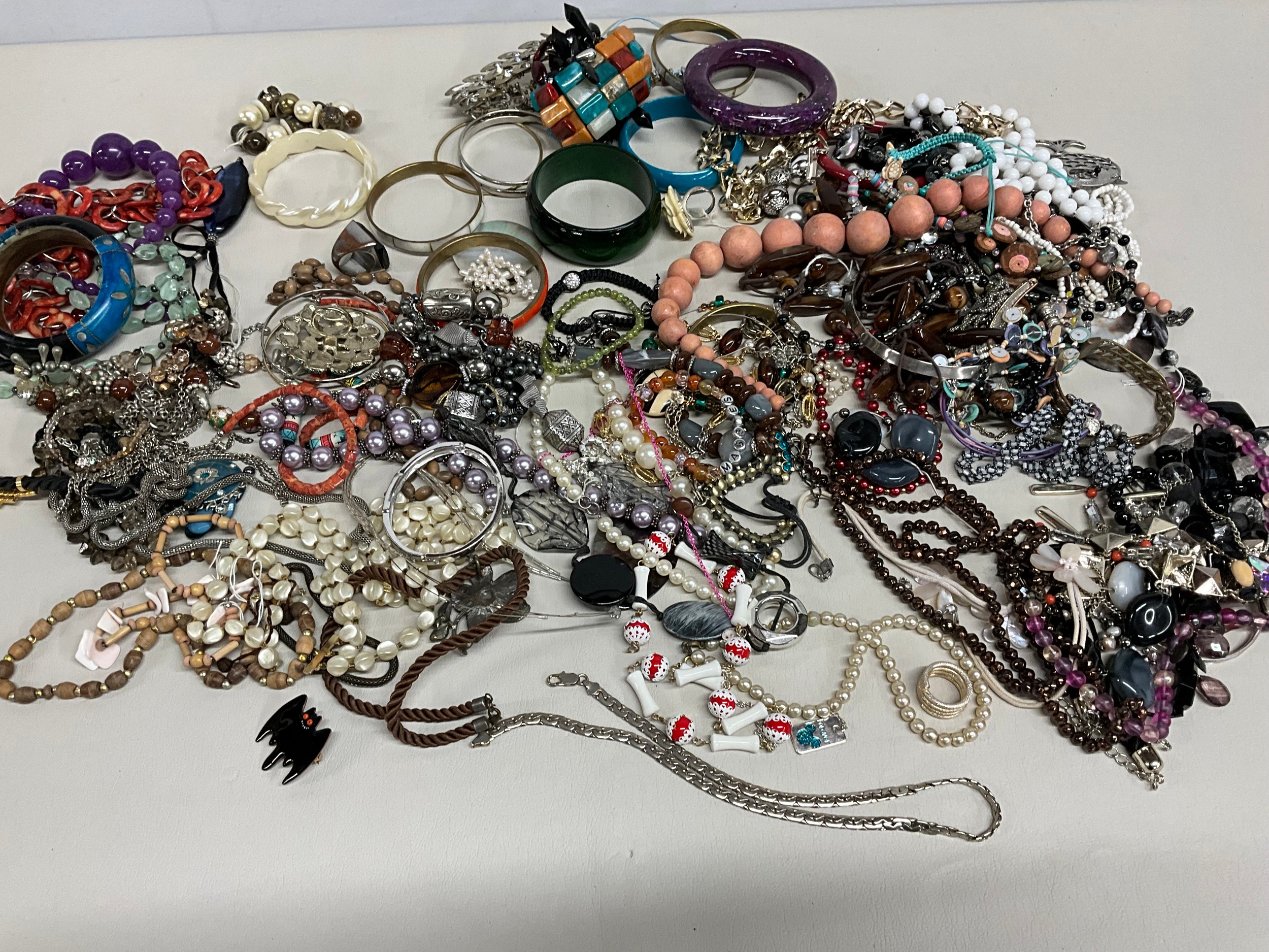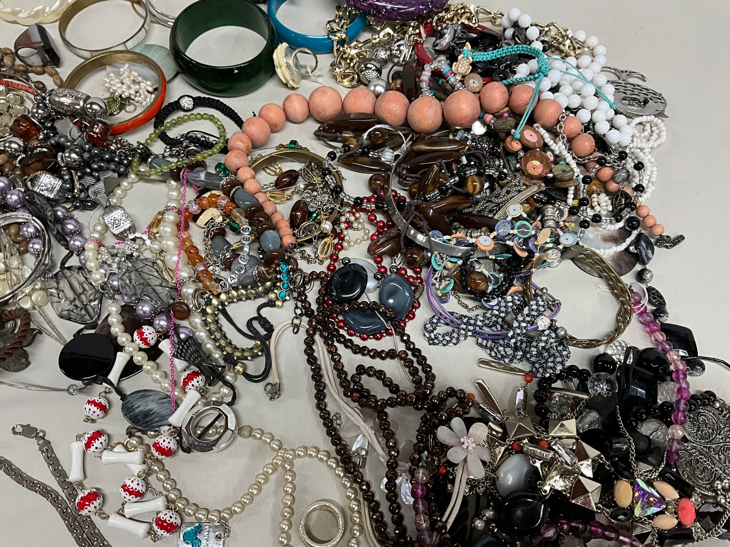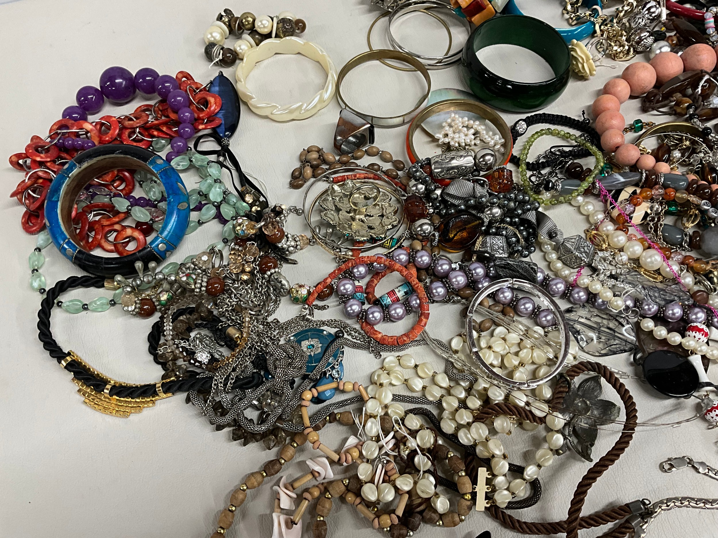 LARGE QTY OF VINTAGE COSTUME JEWELLERY TO INCLUDE BRACELETS NECKLACES BANGLES ETC