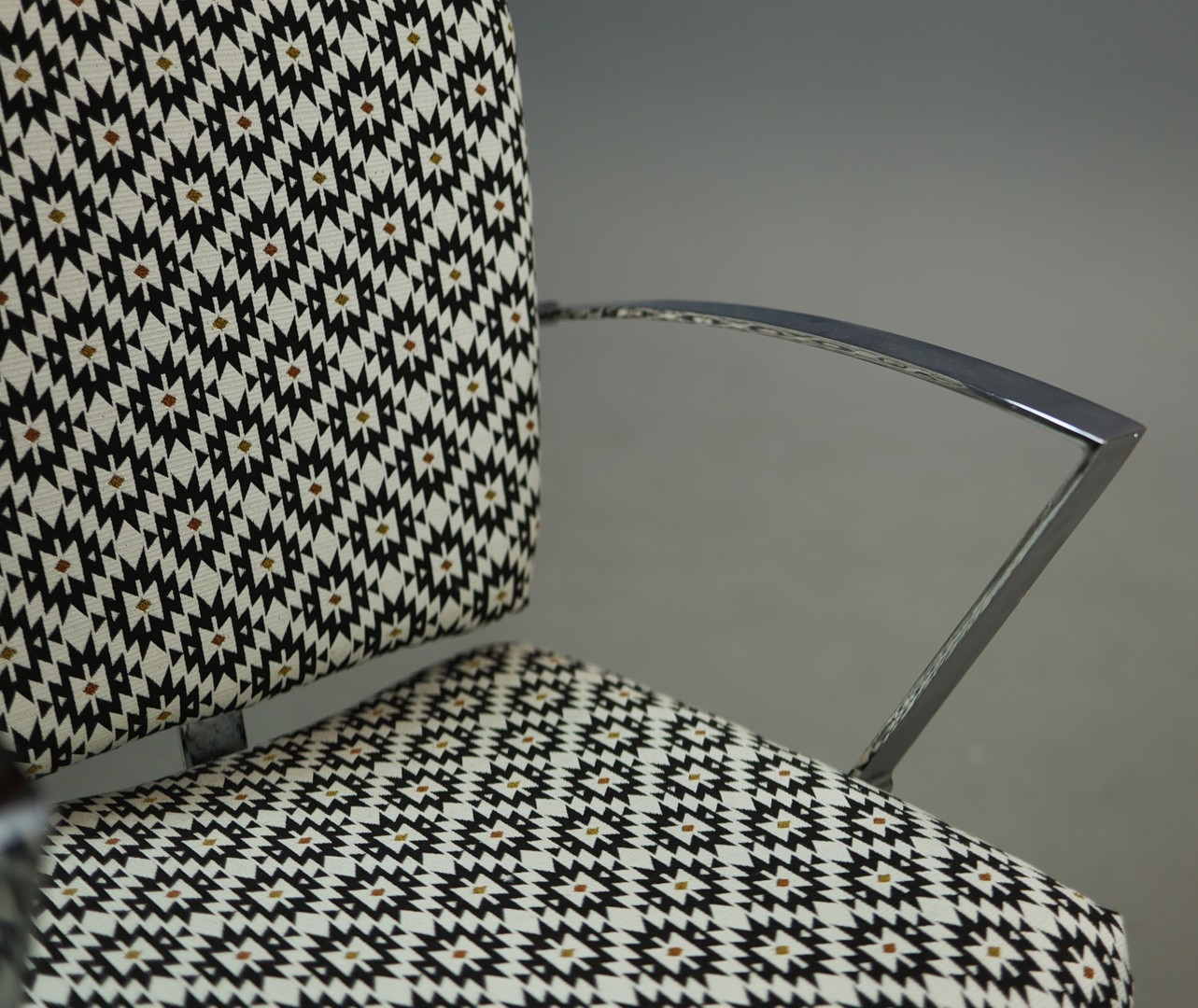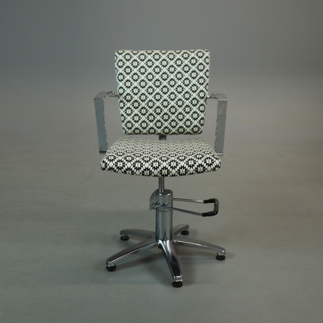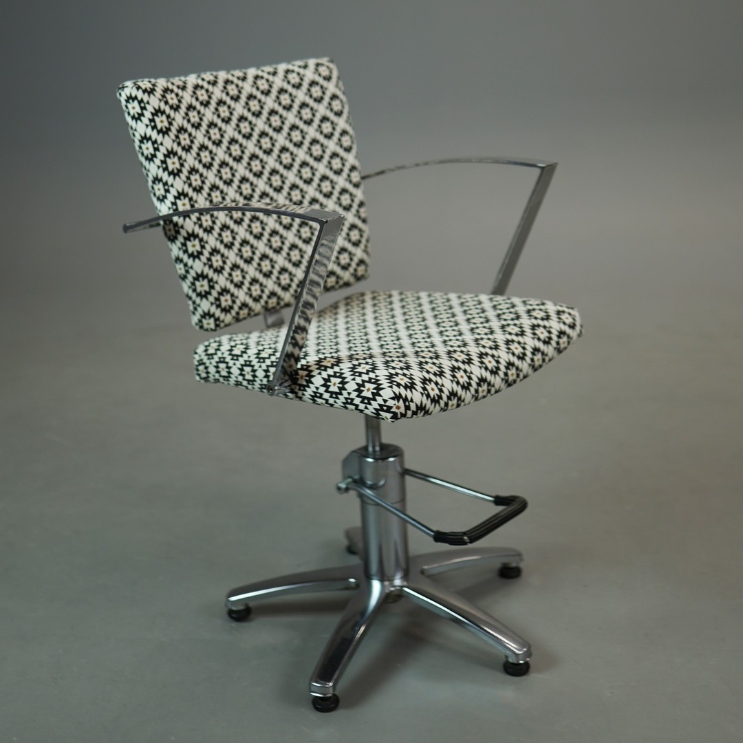 SWIVEL DESK CHAIR. aluminium in patterned fabric with height adjustable seat, 55cm W x 88cm-99cm H.