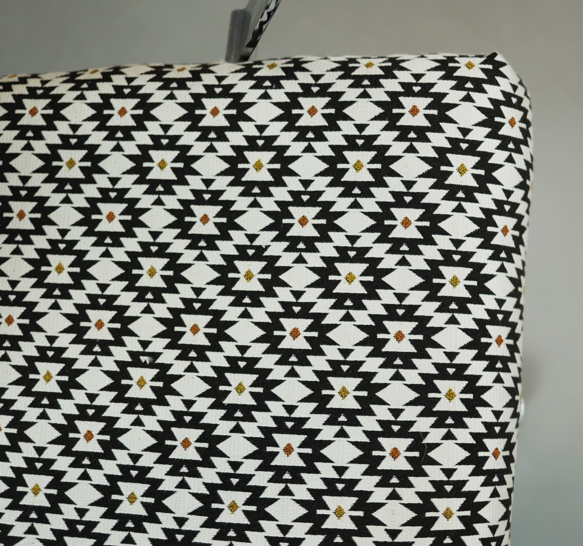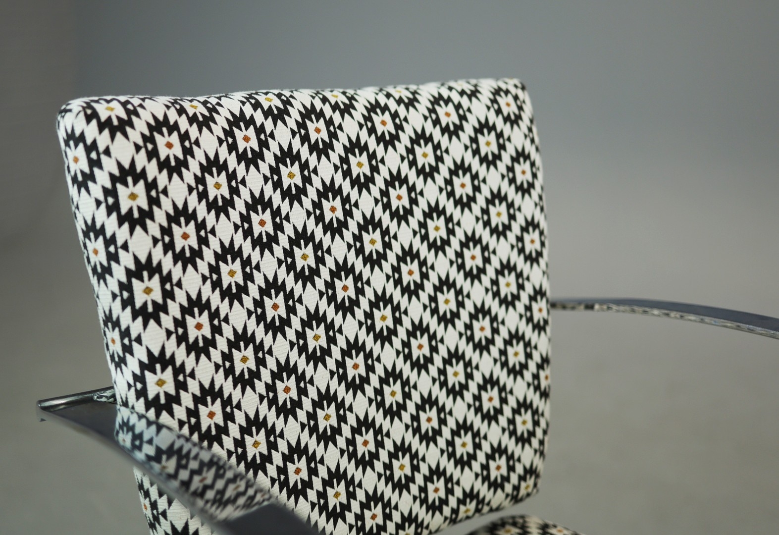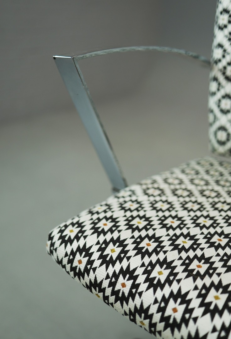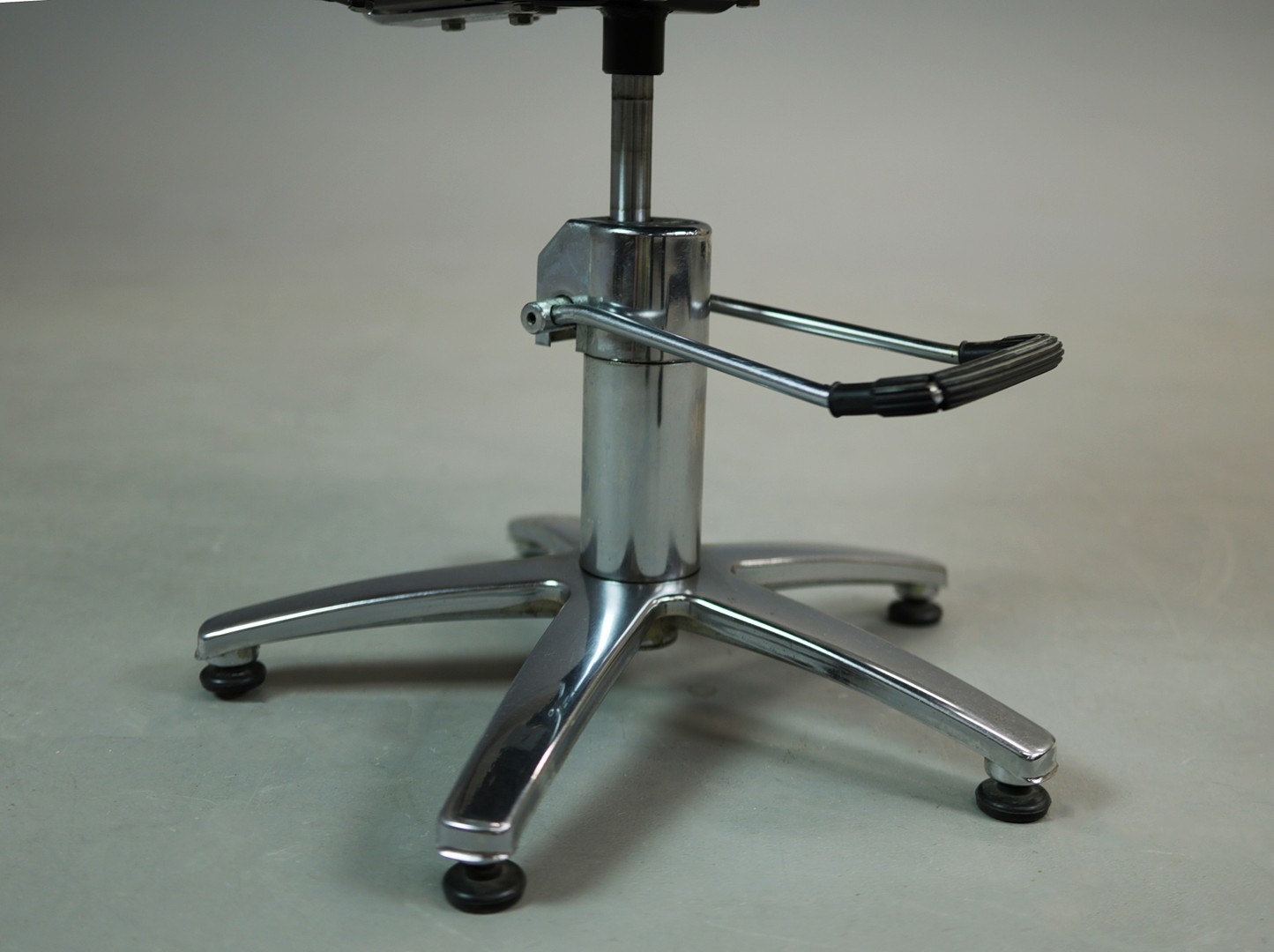 SWIVEL DESK CHAIR. aluminium in patterned fabric with height adjustable seat, 55cm W x 88cm-99cm H.