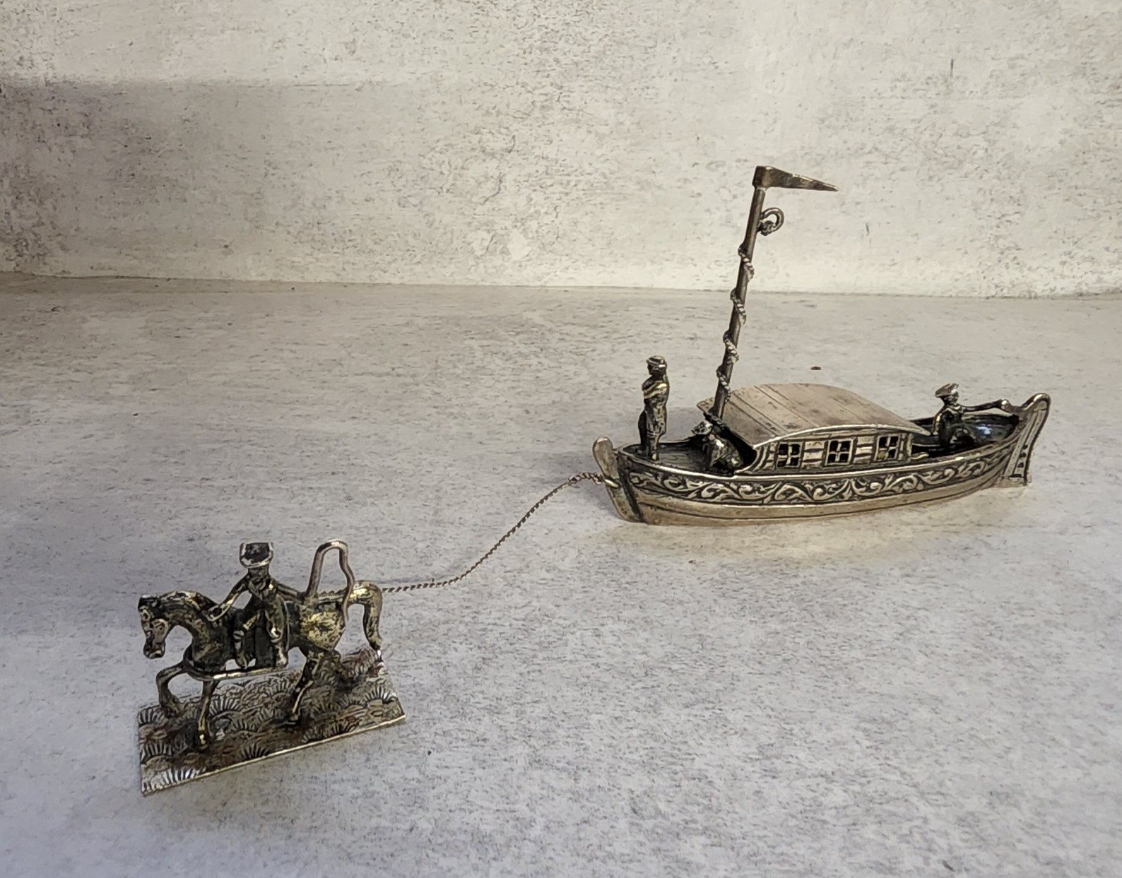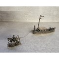 A Dutch silver model of a horse drawn Dutch barge with ride, captain & tiller boy, stamped 68.47g
